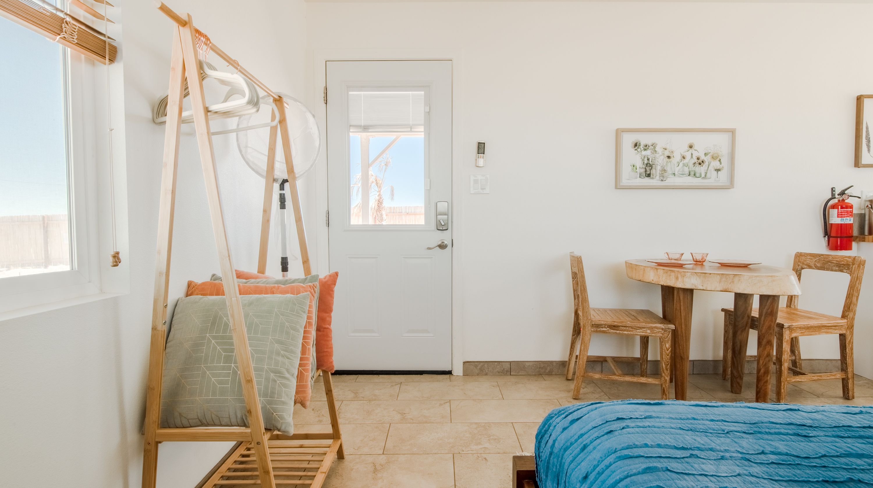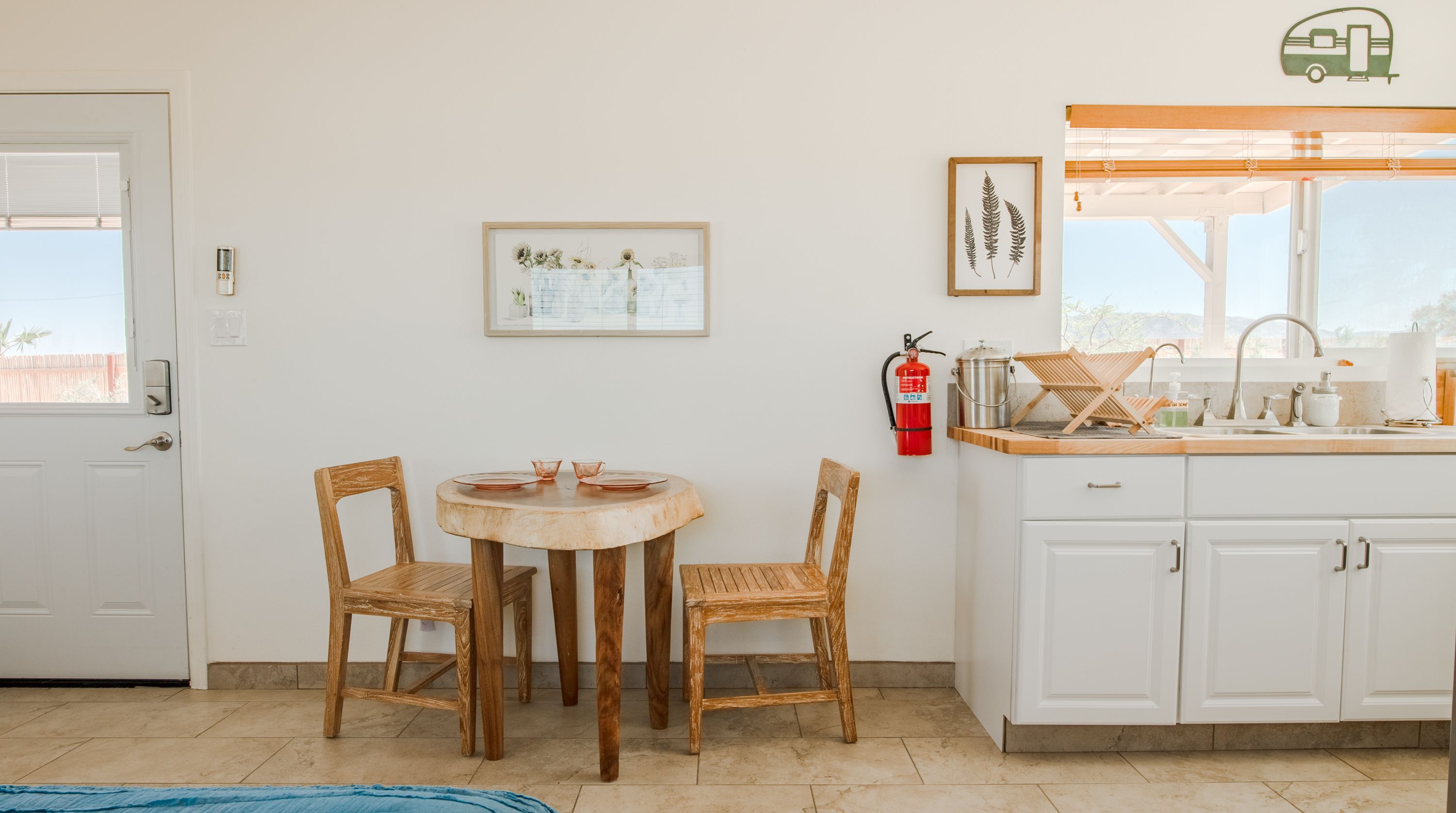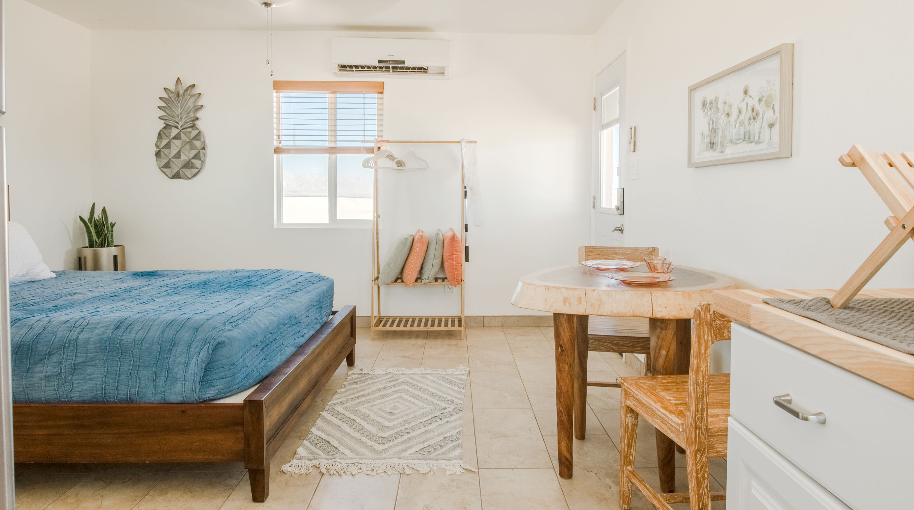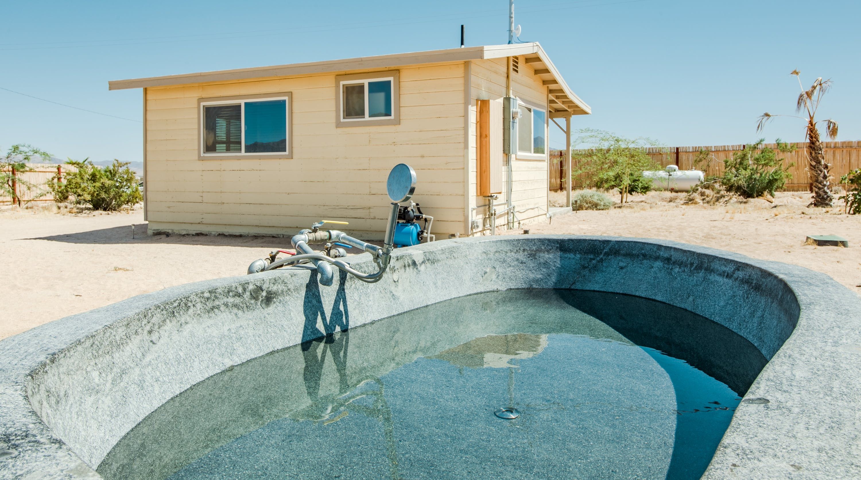Escape to this remote studio sanctuary and reconnect with mother nature. This is more than just an unpretentious cabin in the desert – this is a home that invites you to let go of life's complications and to instead find your roots in nature and embrace the bear necessities – pretty much in keeping with the Joshua Tree area surrounding it. The highlight of this home is, of course, soaking in the granite bathtub with water supplied from the mineral-rich hot spring. Take this moment to absorb the water's healing properties and nourish your body. Staying here is also about spending days and nights on the porch, breathing in the clean air with sunrise stretches, daily meditation and stargazing in the desert evening's clear night skies which – in our opinion – is some of the best stargazing on the planet. Inside the design is simple with hand-dyed indigo bedding and touches of local art – the sleek desert motif is clear, and a perfect complement to adventures and hikes in the natural landscape all around. Take the half-hour drive to Joshua Tree National Park, and don't forget to take your camera with you – we can vouch for the sublime vistas.