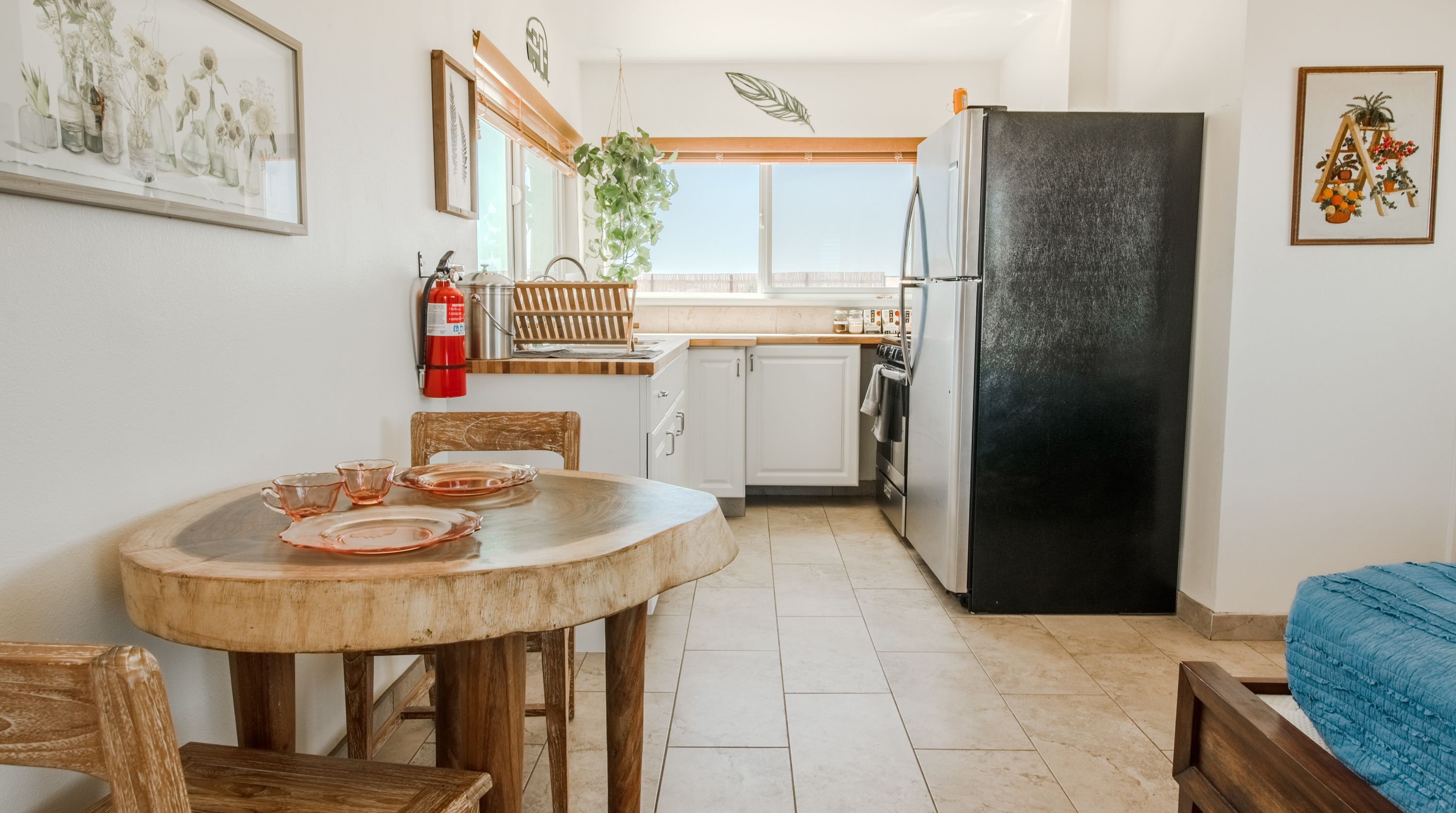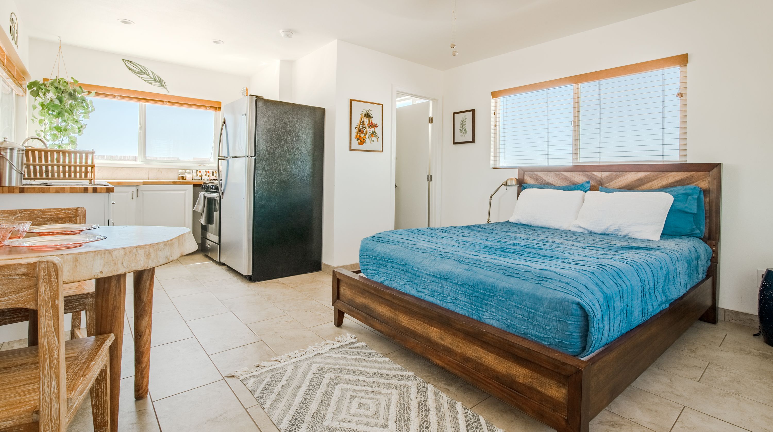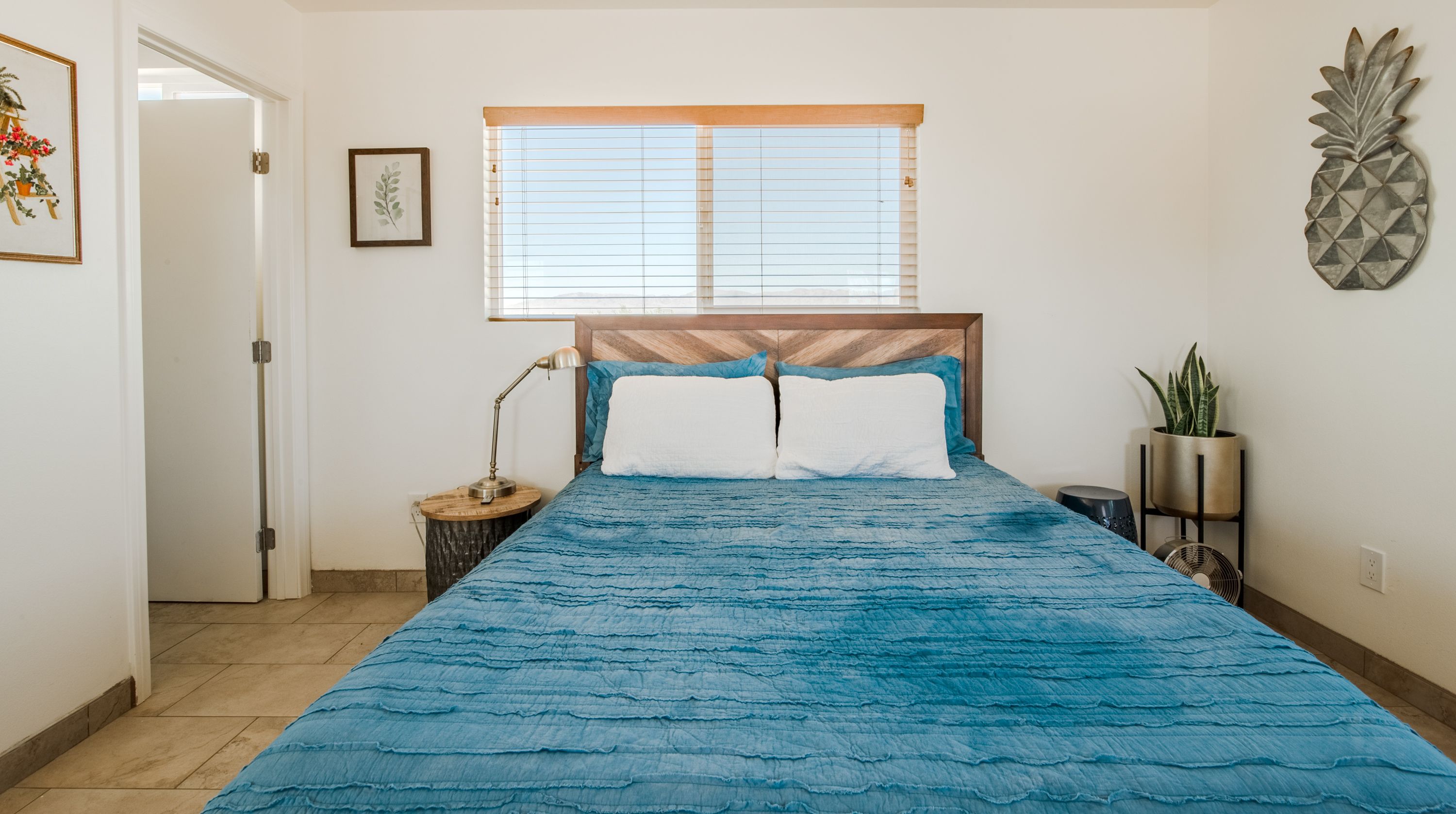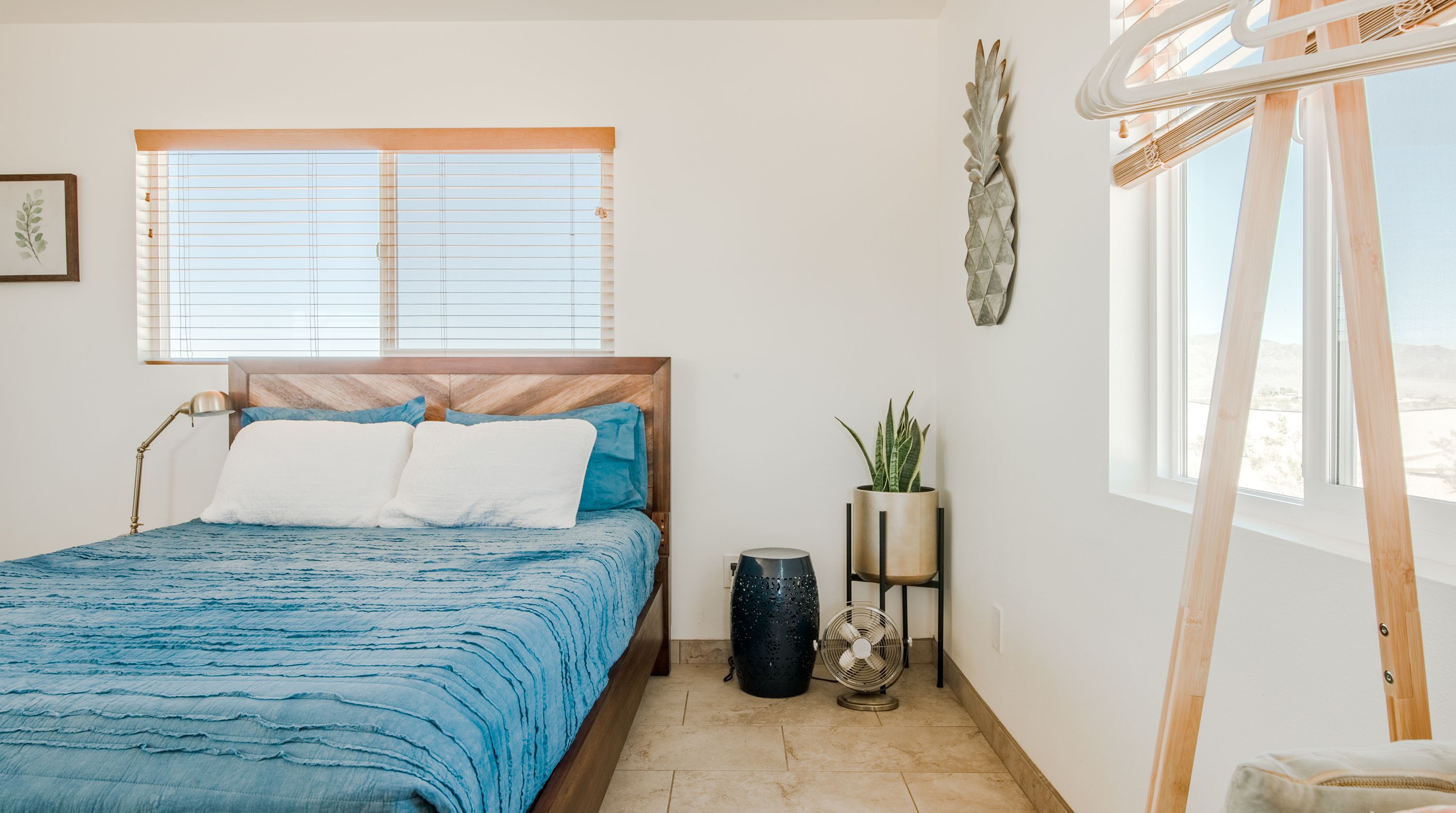 Escape to this remote studio sanctuary and reconnect with mother nature. This is more than just an unpretentious cabin in the desert – this is a home that invites you to let go of life's complications and to instead find your roots in nature and embrace the bear necessities – pretty much in keeping with the Joshua Tree area surrounding it. The highlight of this home is, of course, soaking in the granite bathtub with water supplied from the mineral-rich hot spring. Take this moment to absorb the water's healing properties and nourish your body. Staying here is also about spending days and nights on the porch, breathing in the clean air with sunrise stretches, daily meditation and stargazing in the desert evening's clear night skies which – in our opinion – is some of the best stargazing on the planet. Inside the design is simple with hand-dyed indigo bedding and touches of local art – the sleek desert motif is clear, and a perfect complement to adventures and hikes in the natural landscape all around. Take the half-hour drive to Joshua Tree National Park, and don't forget to take your camera with you – we can vouch for the sublime vistas.