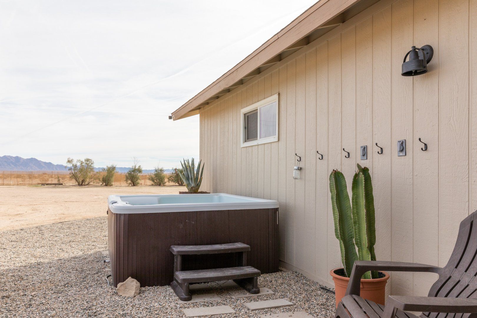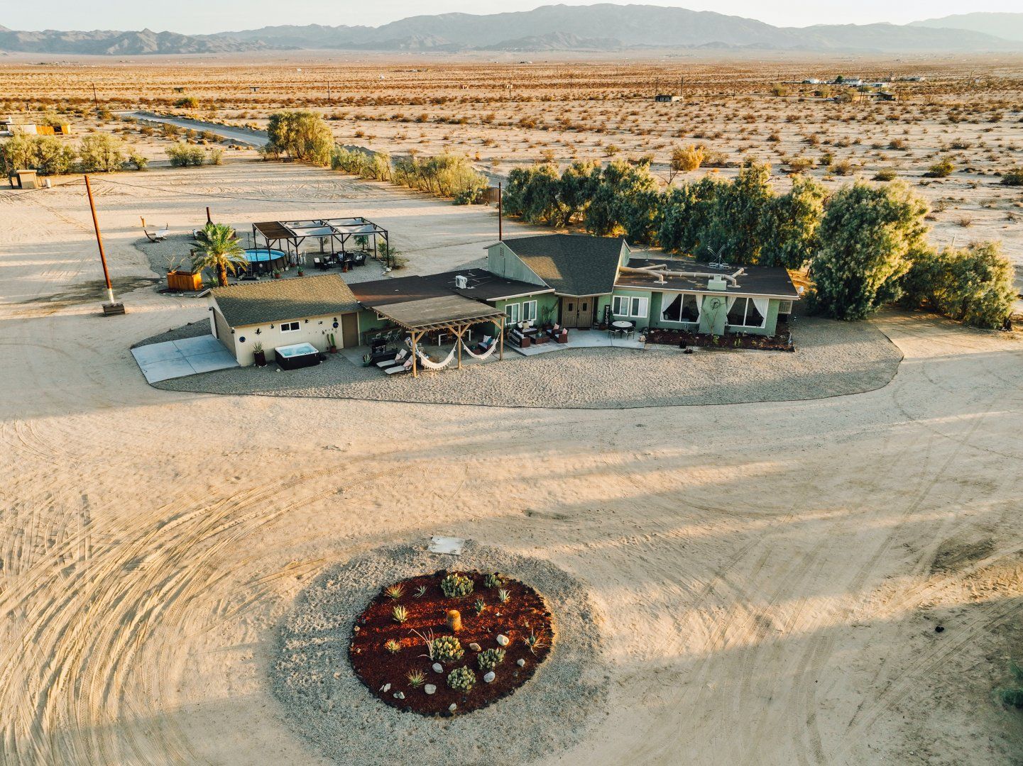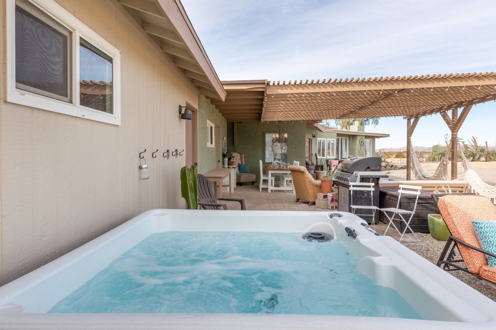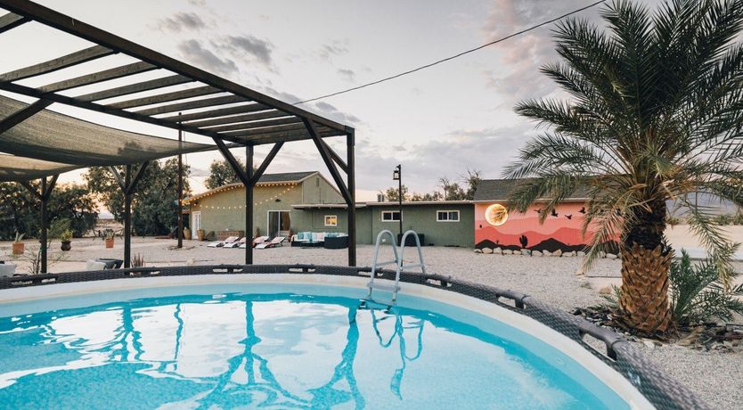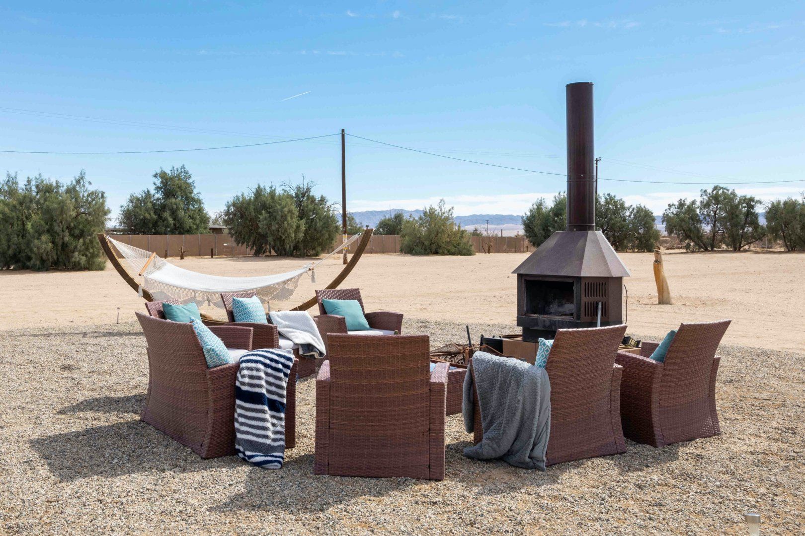 For those in search of a remote gateway – without sacrificing comfort – this home hits the right note. Featuring mountain views, multiple seating areas, a private pool, and a hot tub, you’ll find it easy to embrace the magic of desert living. It’s also just a fifteen-minute drive from Joshua Tree Park, with all the amenities you could need in Twentynine Palms – only a twenty-minute drive away. We suggest stocking up on supplies and making your way back to the fire pit for a night of stargazing.