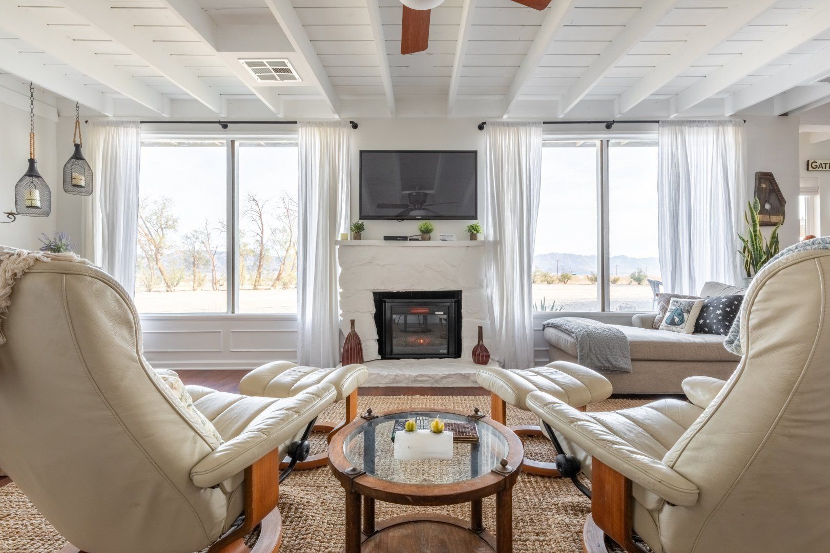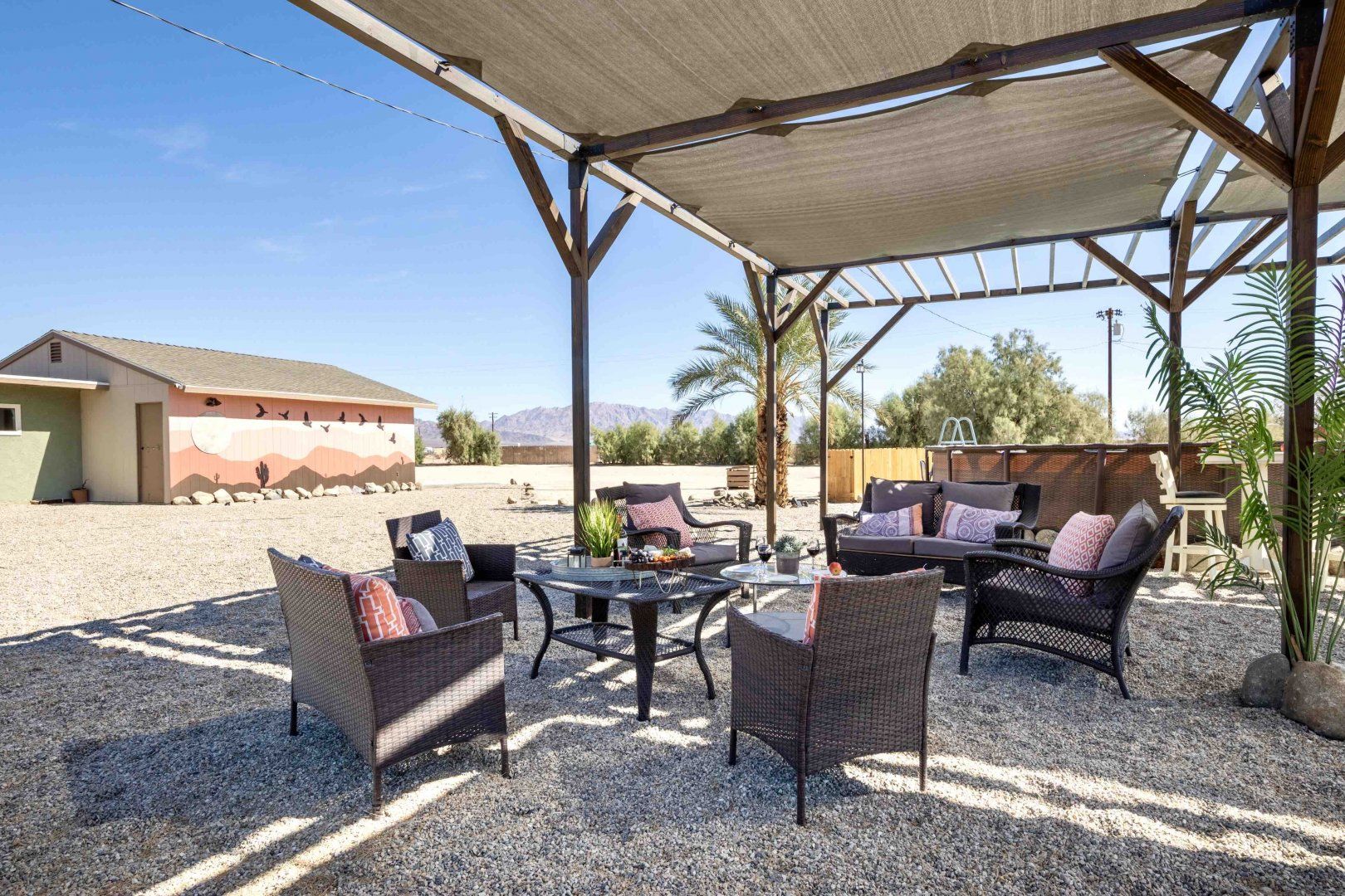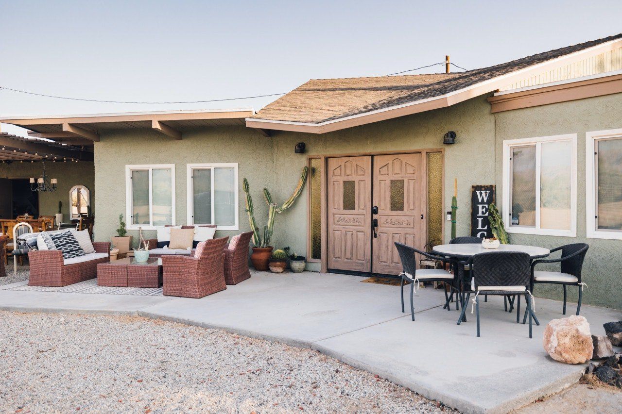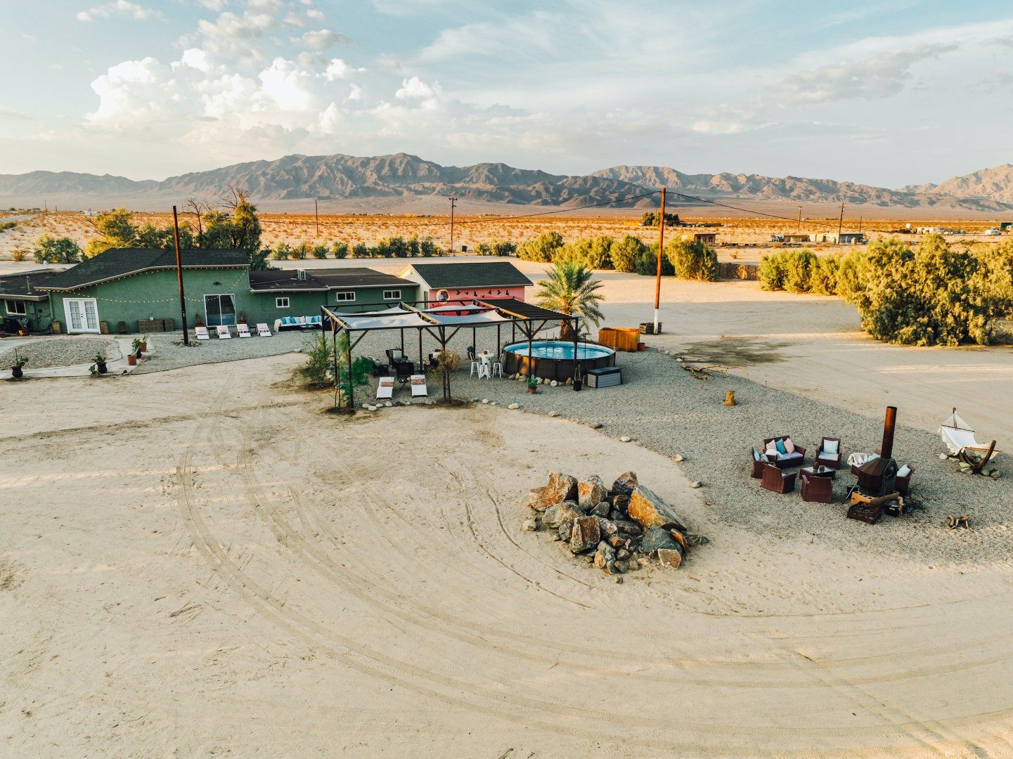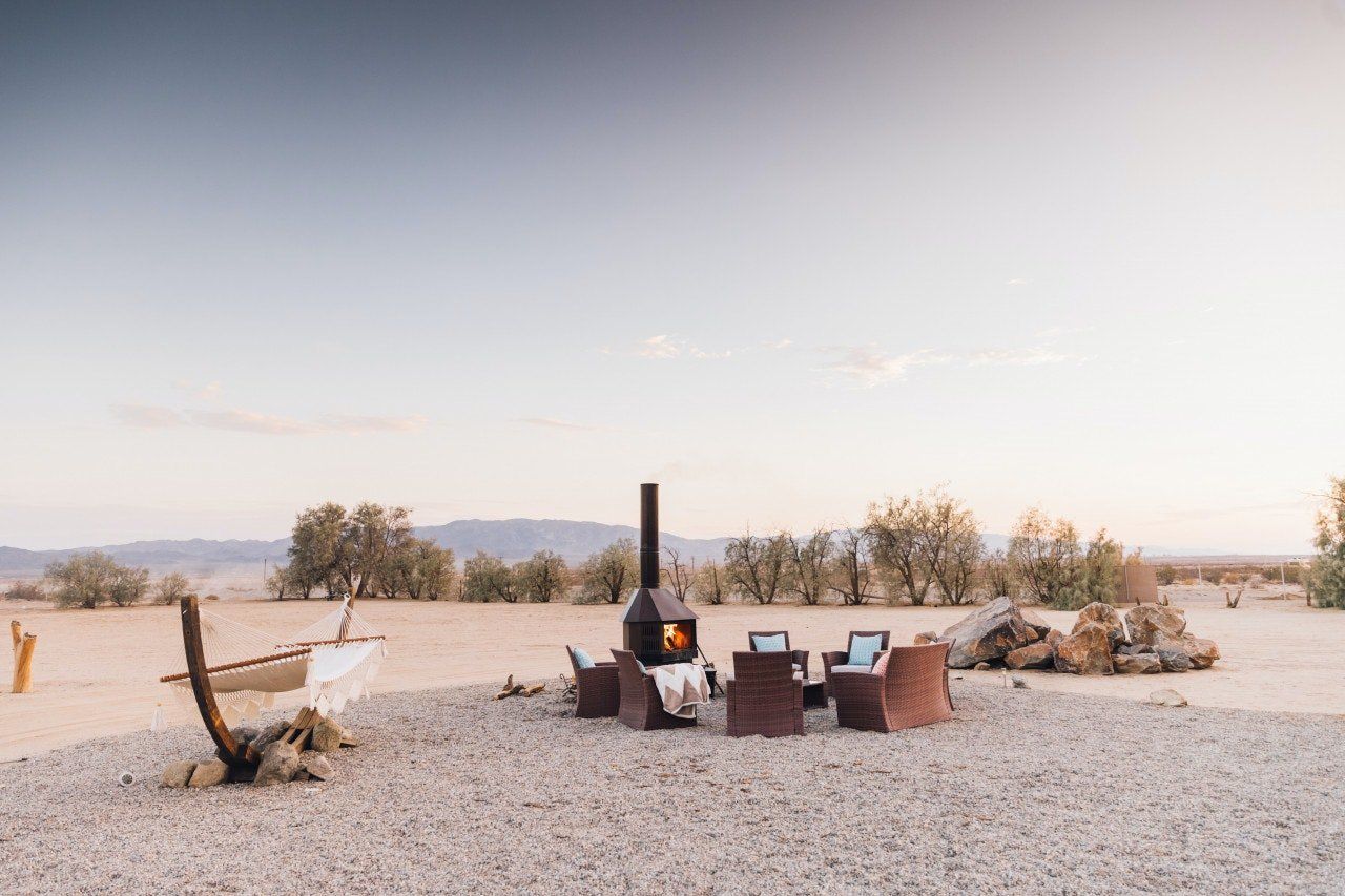 For those in search of a remote gateway – without sacrificing comfort – this home hits the right note. Featuring mountain views, multiple seating areas, a private pool, and a hot tub, you’ll find it easy to embrace the magic of desert living. It’s also just a fifteen-minute drive from Joshua Tree Park, with all the amenities you could need in Twentynine Palms – only a twenty-minute drive away. We suggest stocking up on supplies and making your way back to the fire pit for a night of stargazing.