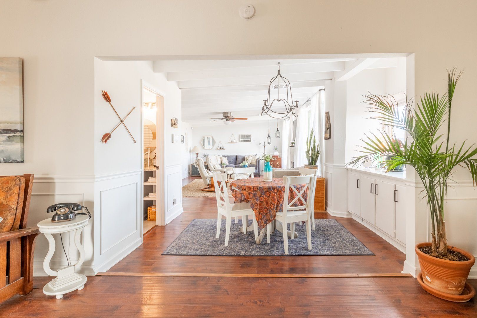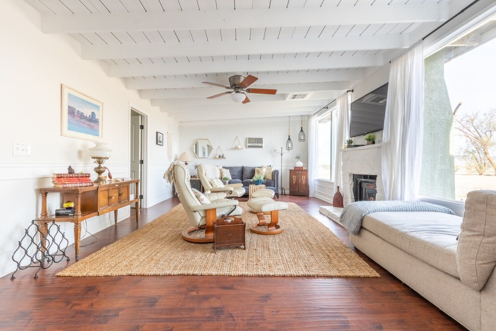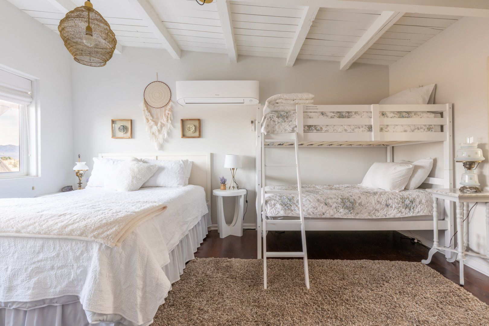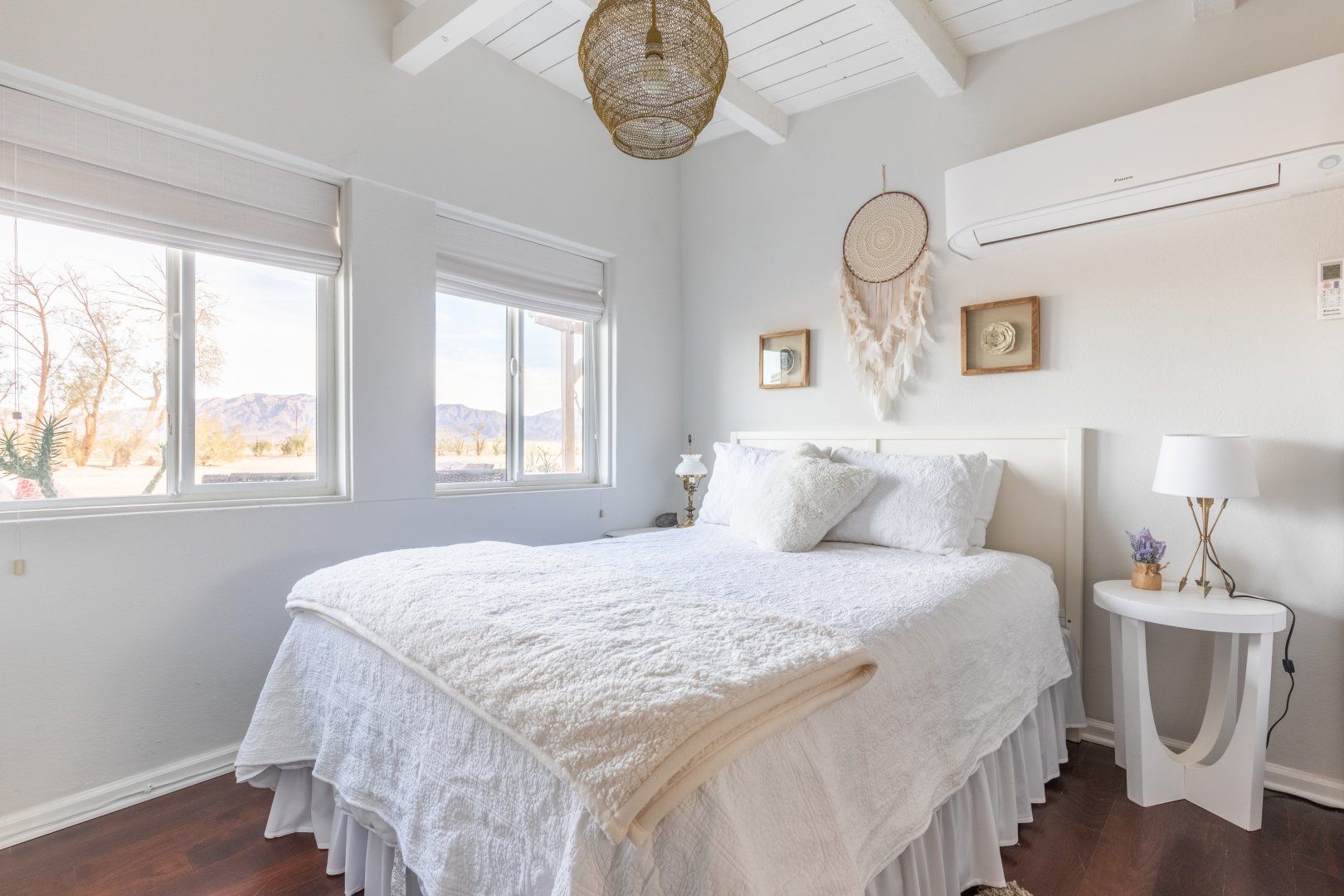 For those in search of a remote gateway – without sacrificing comfort – this home hits the right note. Featuring mountain views, multiple seating areas, a private pool, and a hot tub, you’ll find it easy to embrace the magic of desert living. It’s also just a fifteen-minute drive from Joshua Tree Park, with all the amenities you could need in Twentynine Palms – only a twenty-minute drive away. We suggest stocking up on supplies and making your way back to the fire pit for a night of stargazing.