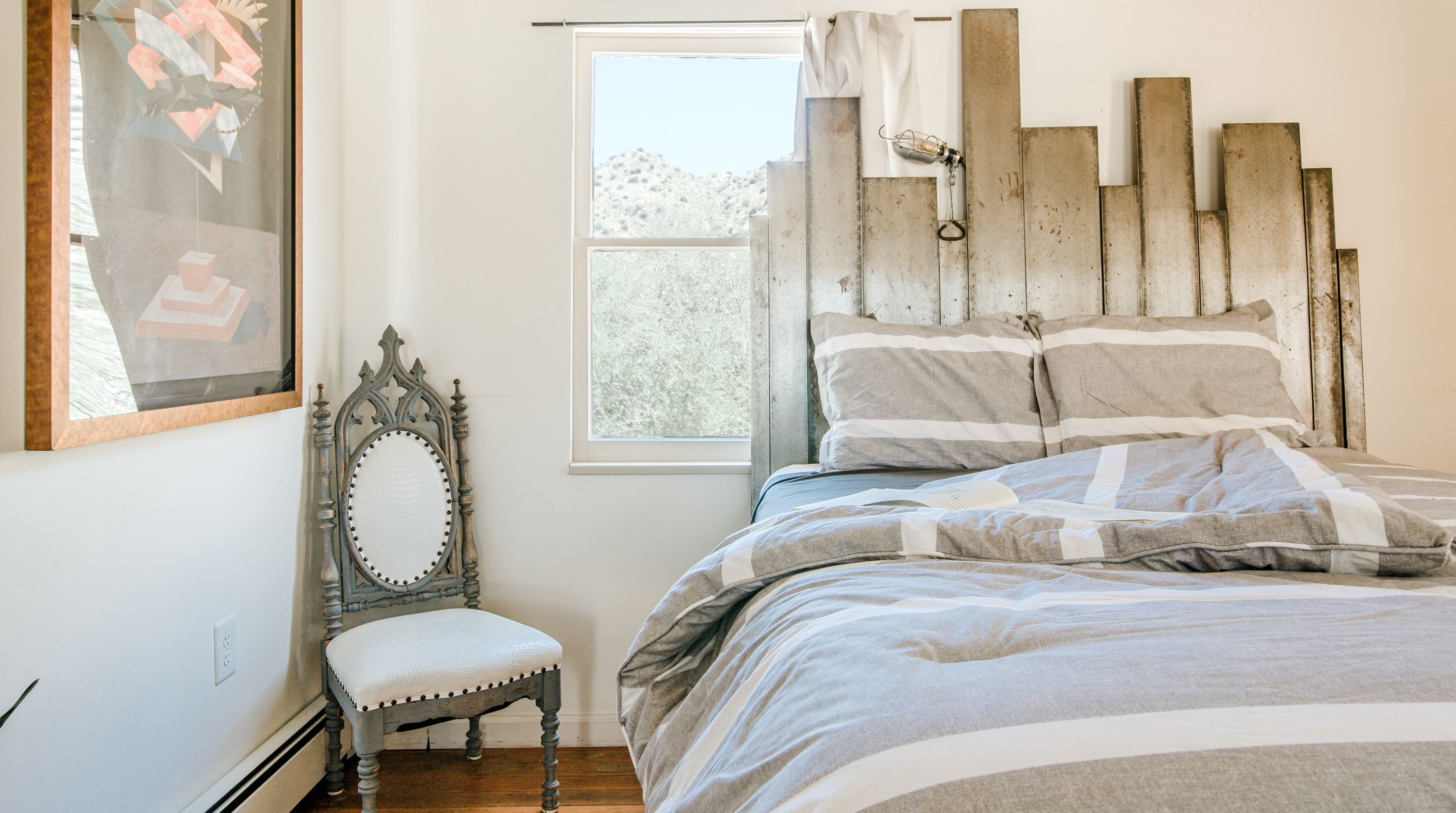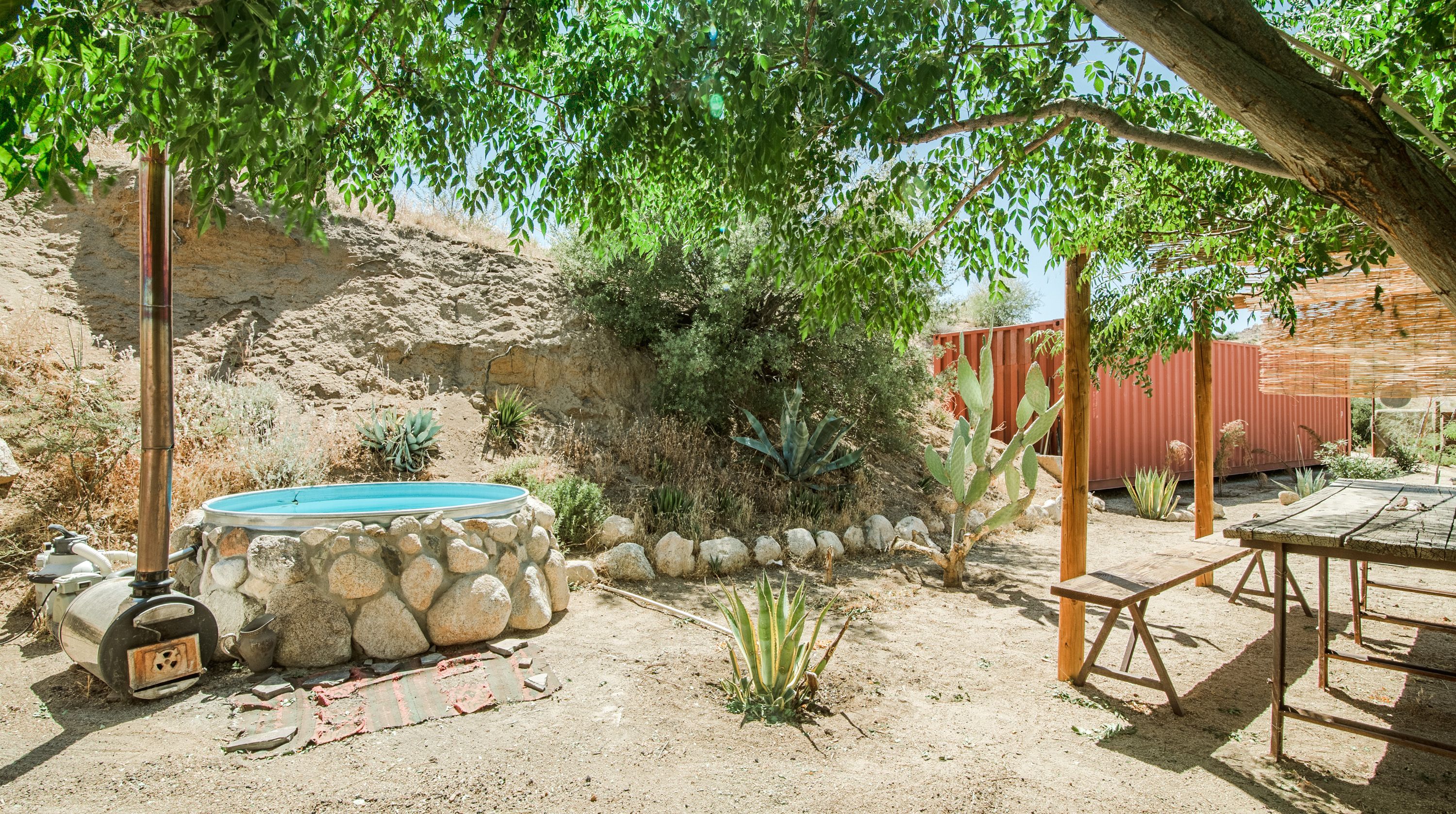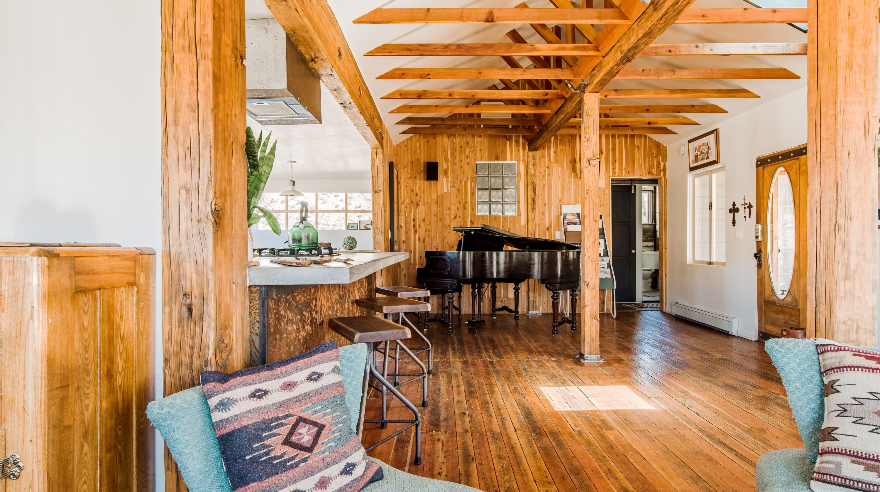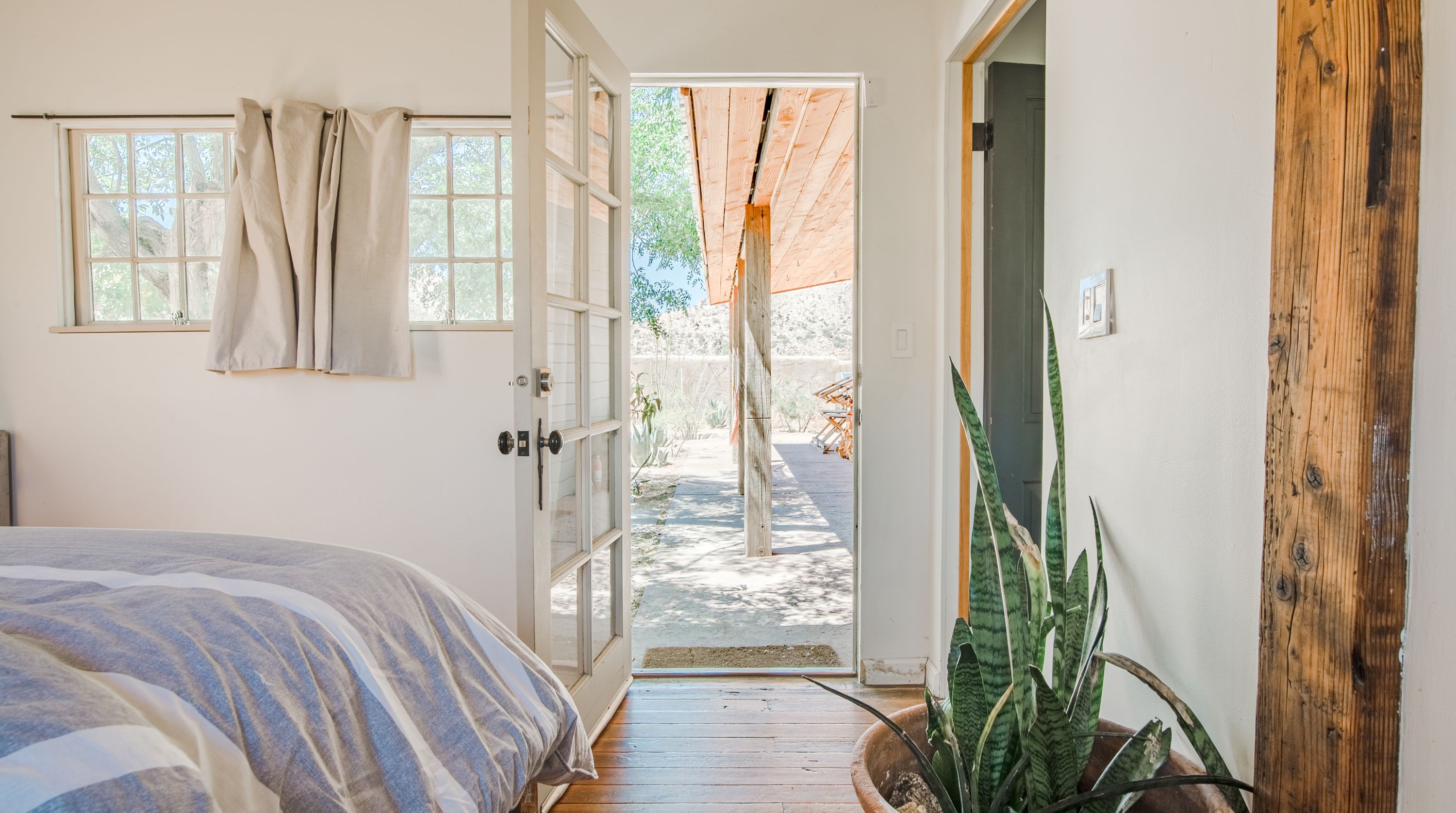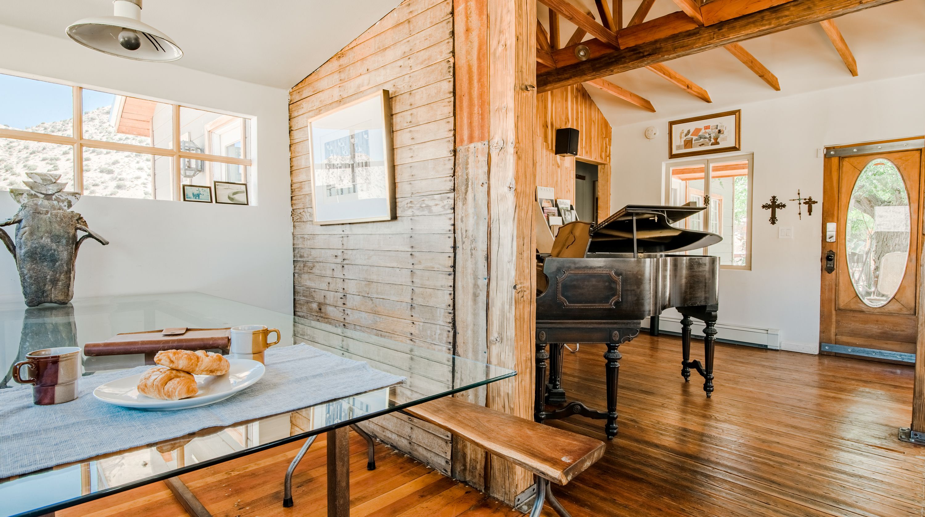 There’s a wood-burning stove to keep you warm on those chill nights, while one of your musically talented friends can play a tune on the grand piano (though there’s also a Bluetooth sound system, for convenience). On the walls, you’ll find original art by the late Gerald Zeldin, and an interior so impressive it was featured in the NY Times fashion section. You can feel the history of this old mining cabin in the wood-beamed ceiling and clapboard (yet modern) bathroom. Picture-frame windows let the sunlight stream into this boho-chic interior and let you gaze out over the endless desert before you.