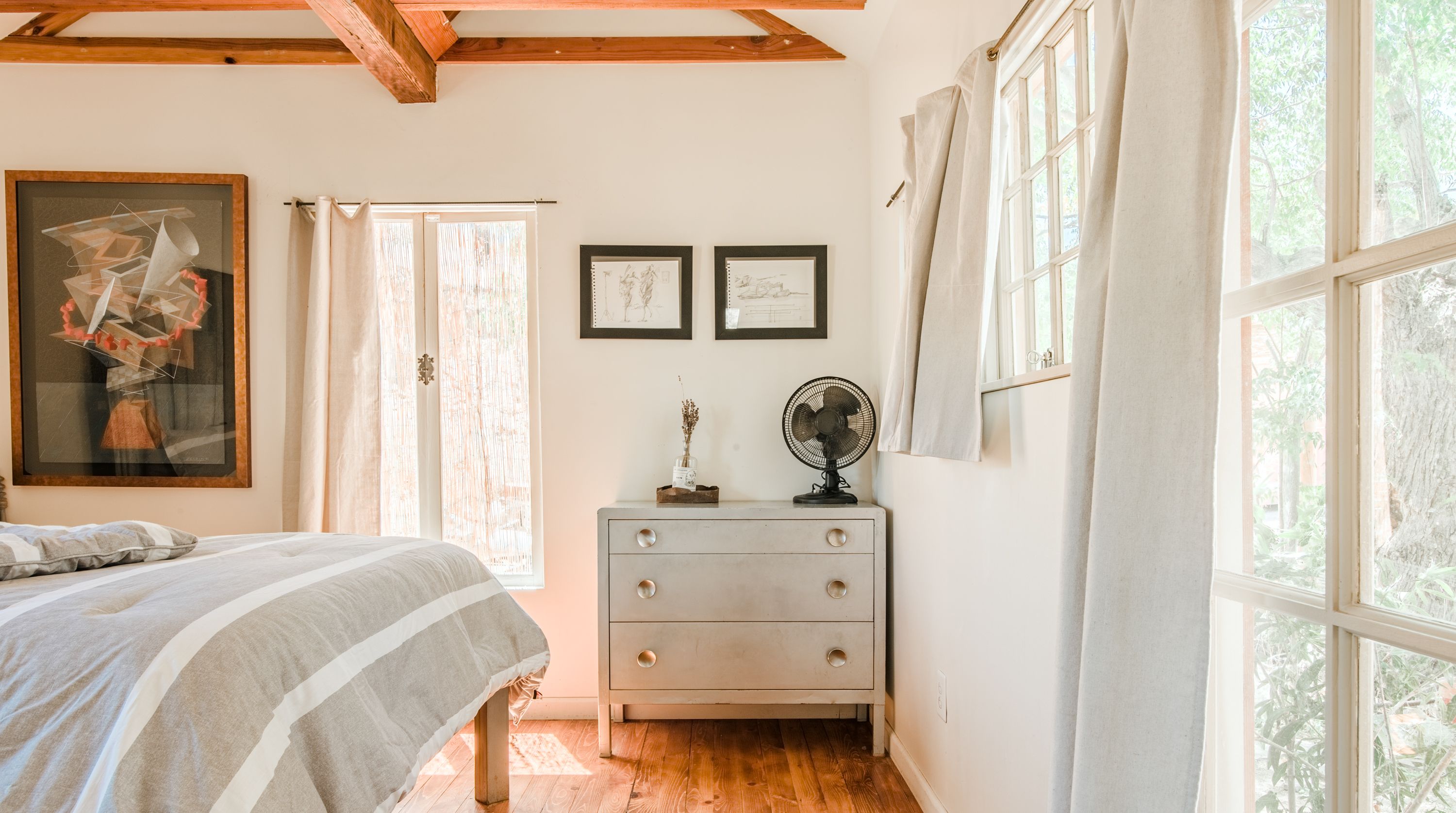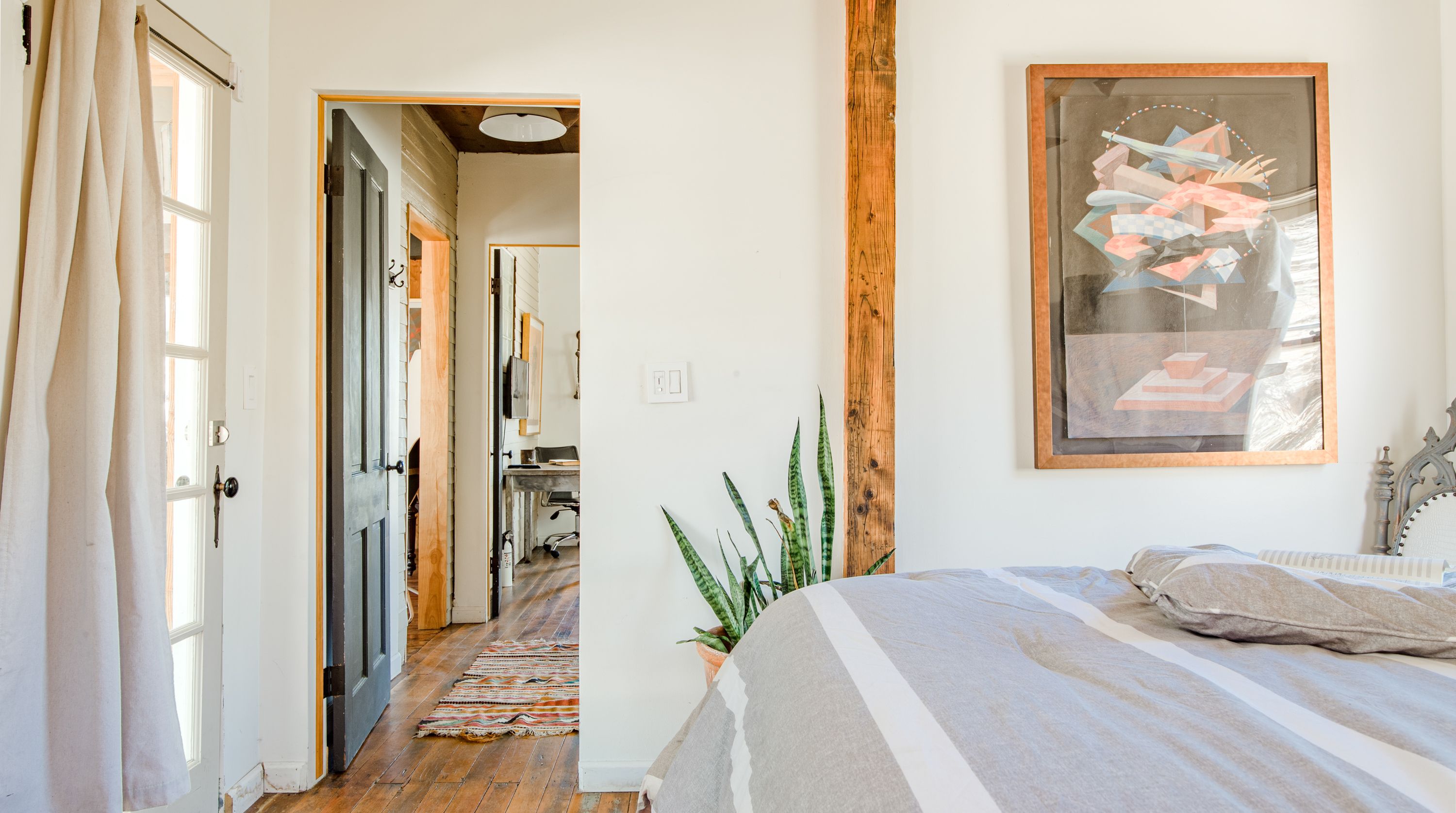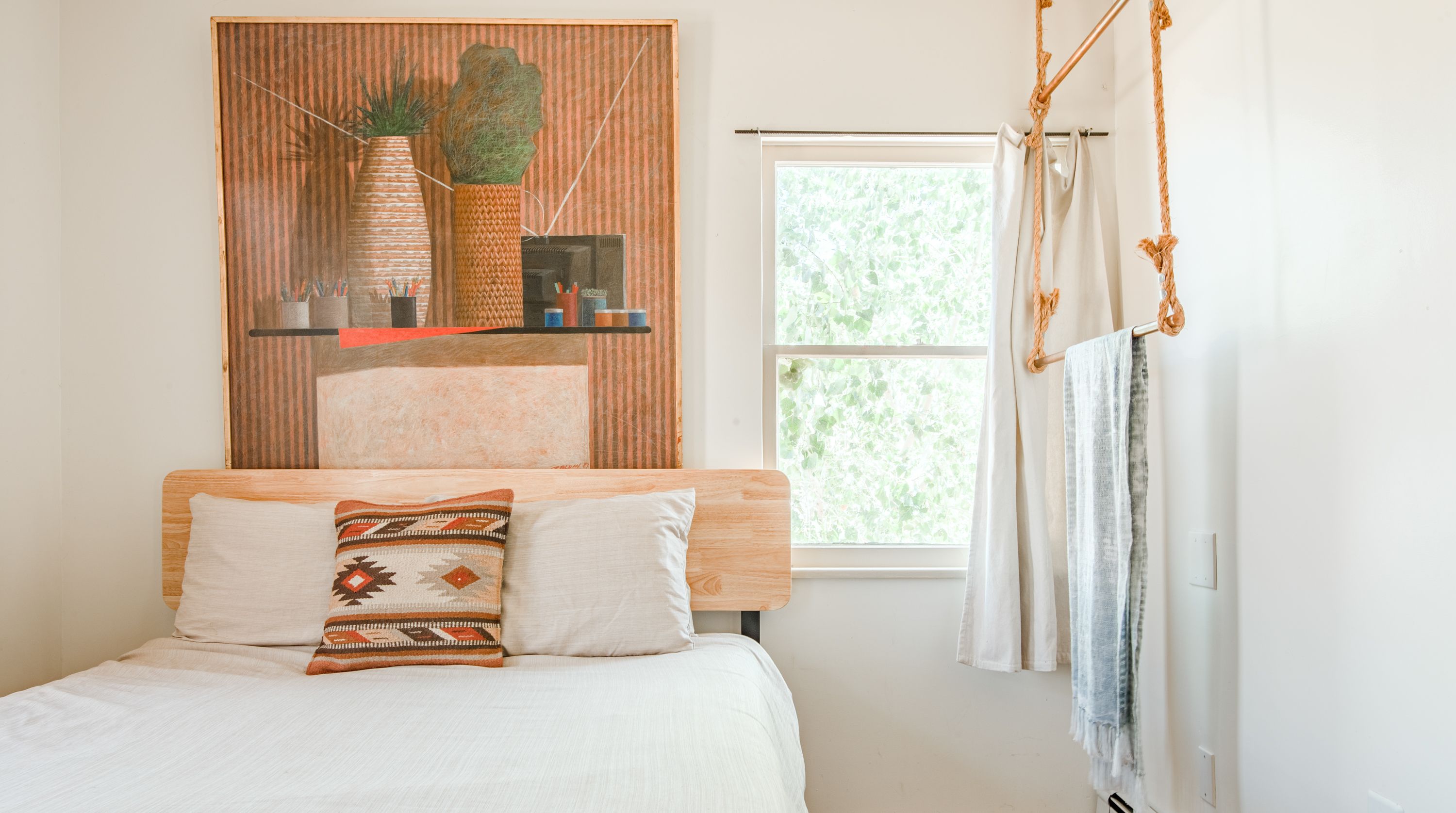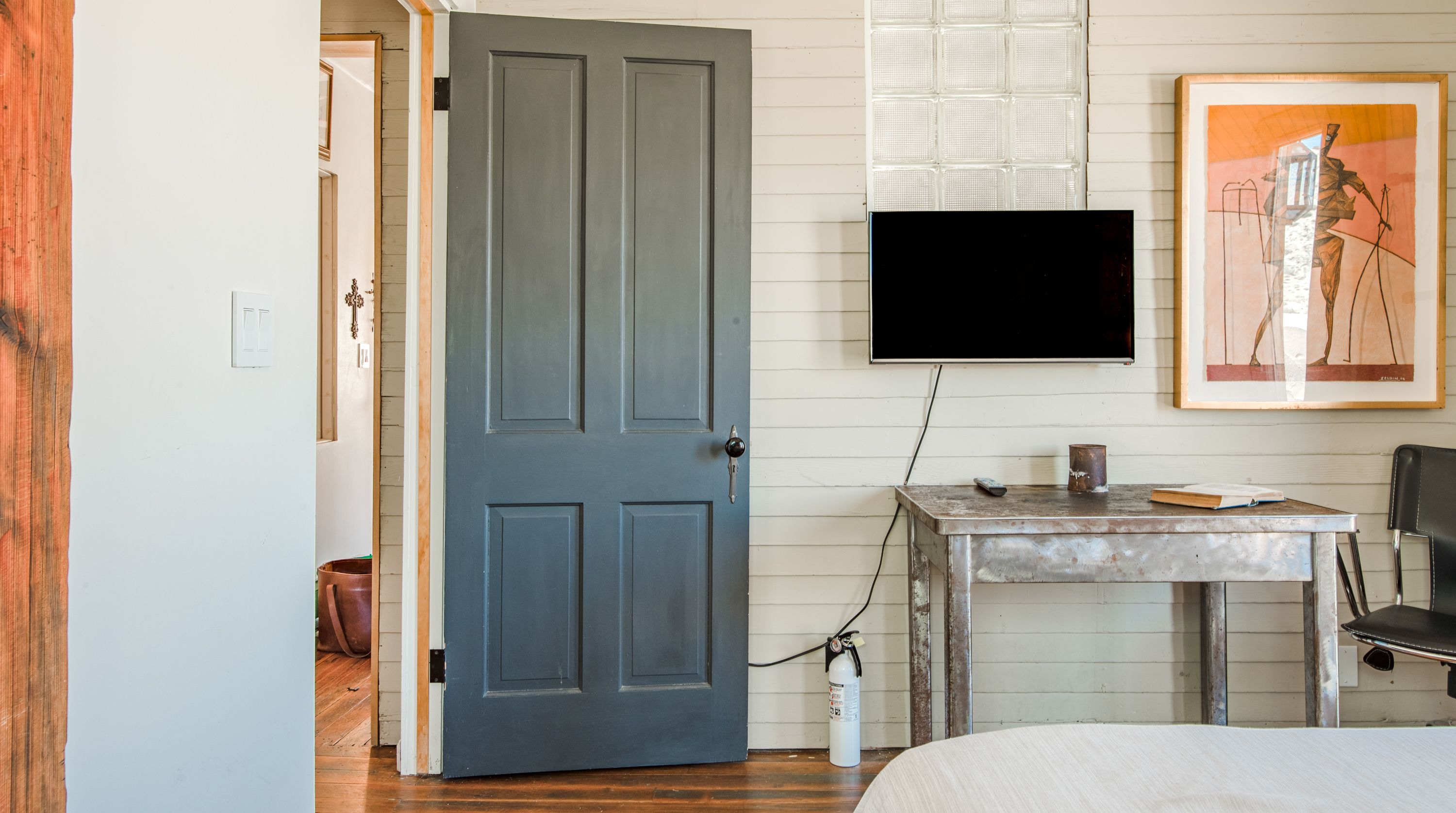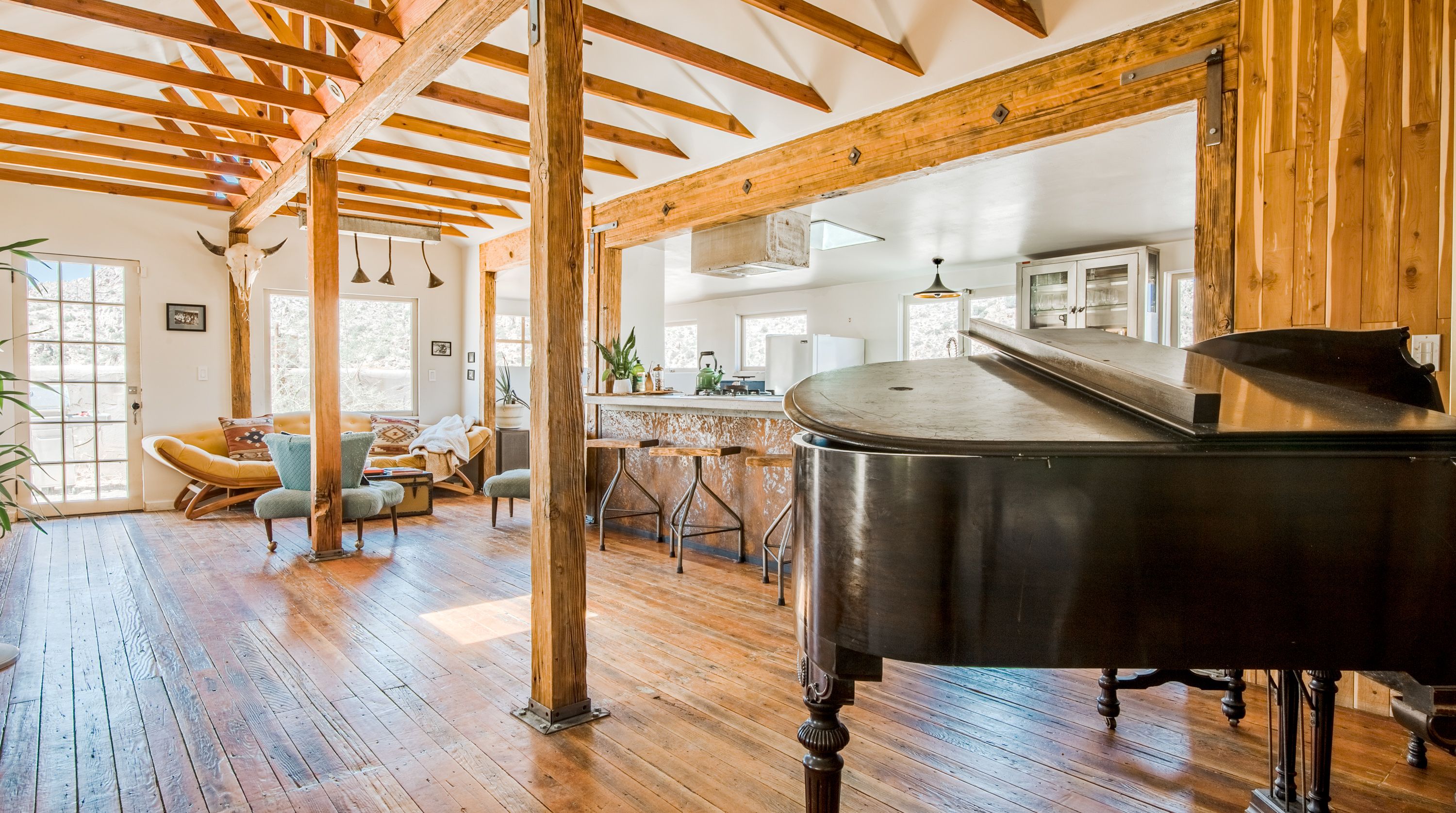 There’s a wood-burning stove to keep you warm on those chill nights, while one of your musically talented friends can play a tune on the grand piano (though there’s also a Bluetooth sound system, for convenience). On the walls, you’ll find original art by the late Gerald Zeldin, and an interior so impressive it was featured in the NY Times fashion section. You can feel the history of this old mining cabin in the wood-beamed ceiling and clapboard (yet modern) bathroom. Picture-frame windows let the sunlight stream into this boho-chic interior and let you gaze out over the endless desert before you.