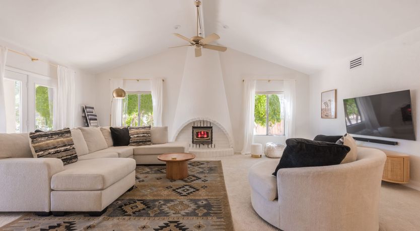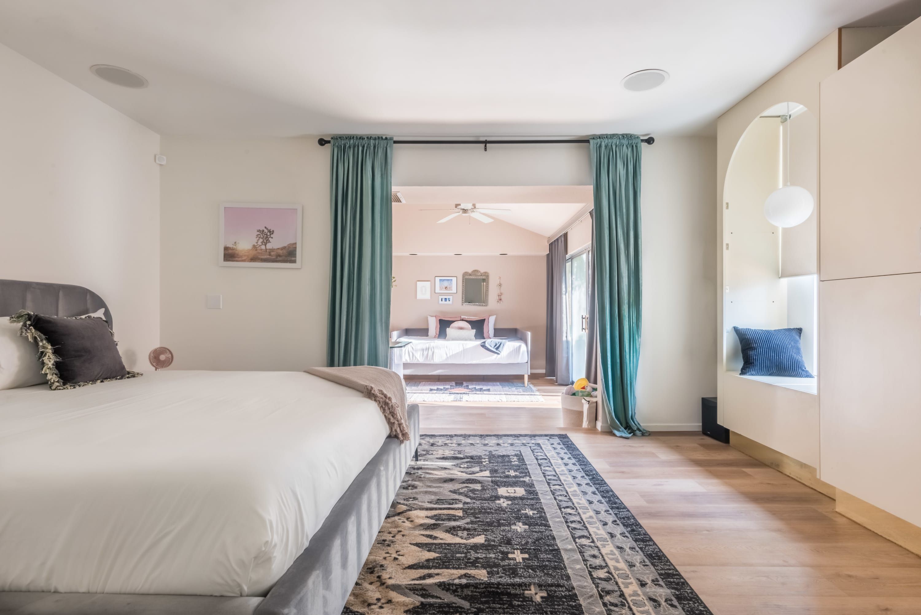 The mood of this home in Yucca Valley? Desert chic with a touch of rock 'n' roll. Located in the heart of Joshua Tree, the impressive expanse of barren land and dry-climate flora is on its doorstep.