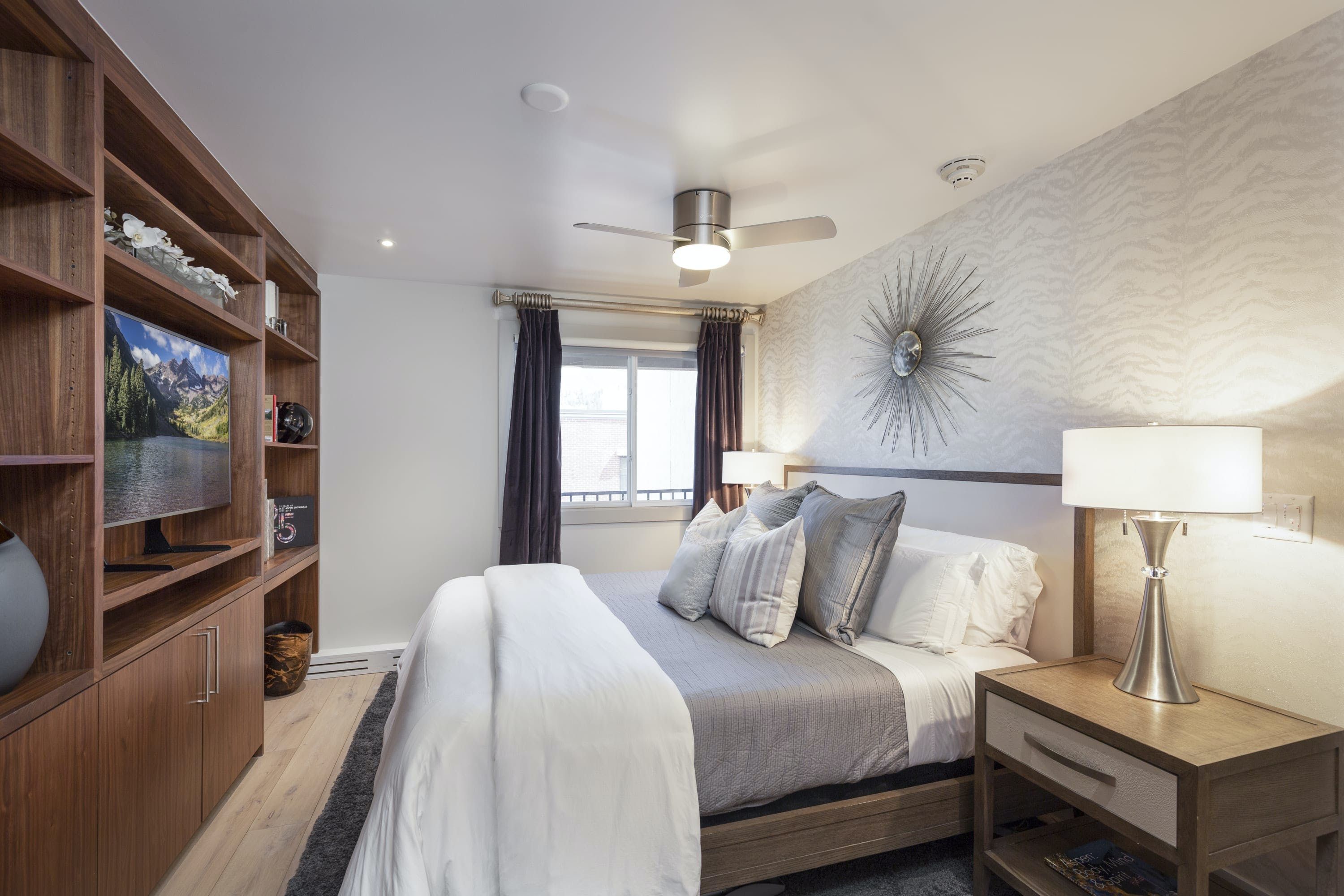 This cosy condo has everything you need to enjoy a stress-free mountain getaway. Enjoy a coffee or evening drinks on the private balcony, accompanied by mountain views, or unwind by the fire in the plush living space. The sleek kitchen is fully-equipped for at-home meals – that's if you're not tempted by the barbecue. Meanwhile, the shared hot tub is the perfect place to relax after a day on the slopes. Ideally located on Main Street in Aspen, the Rio Grande Trail starts from just behind this apartment building, and it's also just a short walk to boutiques, restaurants, and the world-famous ski resort.