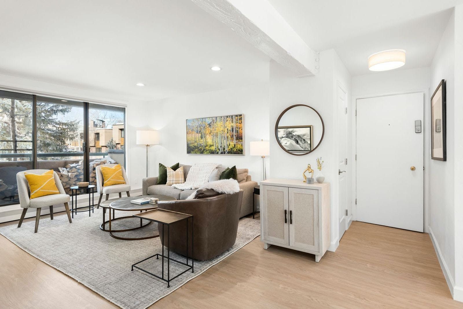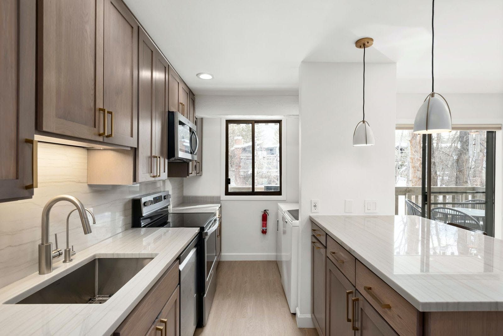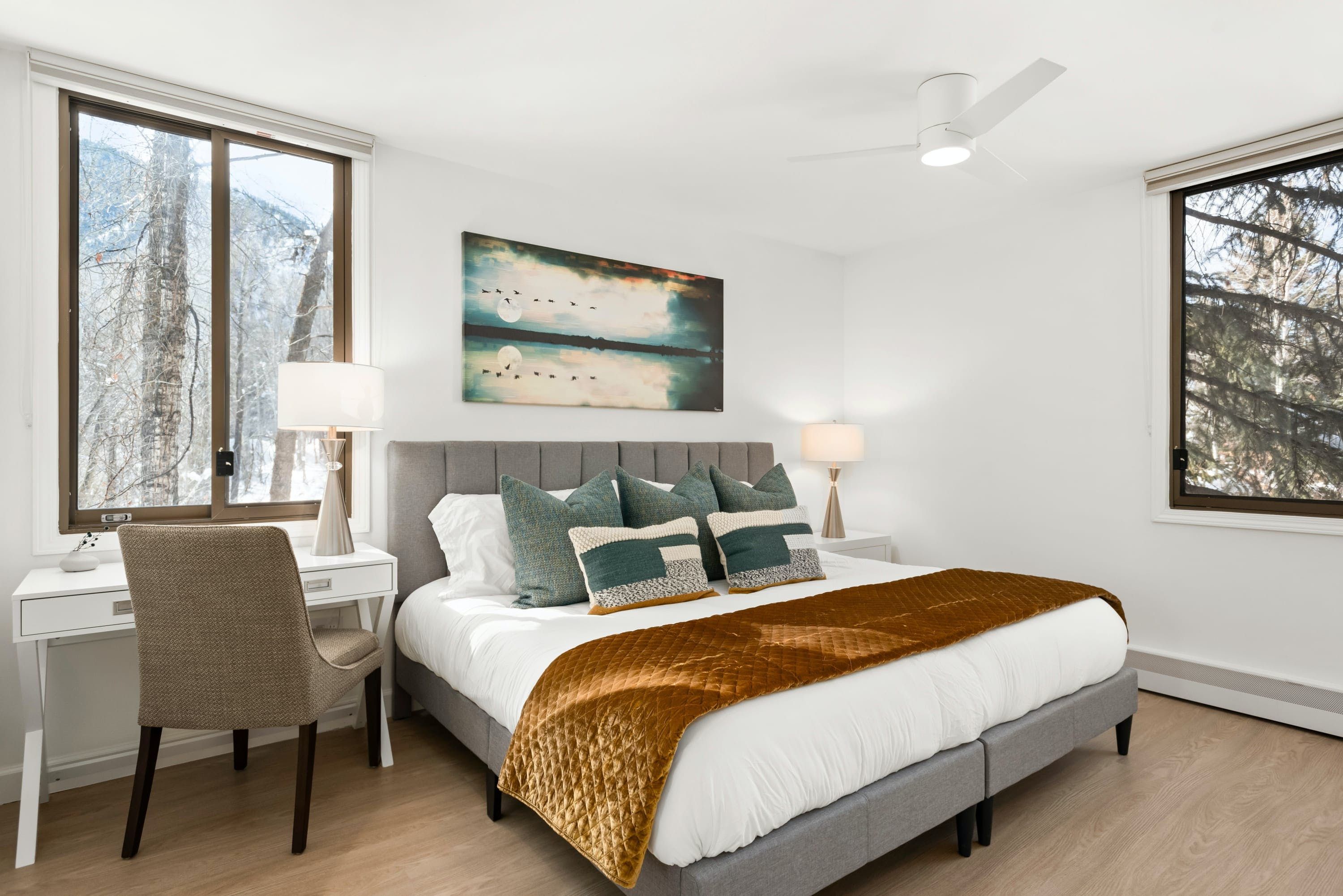 Whatever the season, Aspen has something for everyone – be it picturesque hiking trails or snow-covered ski runs. You'll find this contemporary condo just a stone's throw from downtown's restaurants, shops, and the gondola. It's the perfect location to explore on foot, but in between adventures, make yourself cosy back home. The balcony overlooks Roaring Fork River and is a great spot for barbecues and cups of cocoa. You can sprawl out in the living area in front of the fire, cook up a storm in the kitchen, or head down to the shared pool and hot tub for a dip. We think it's an ideal Aspen retreat.