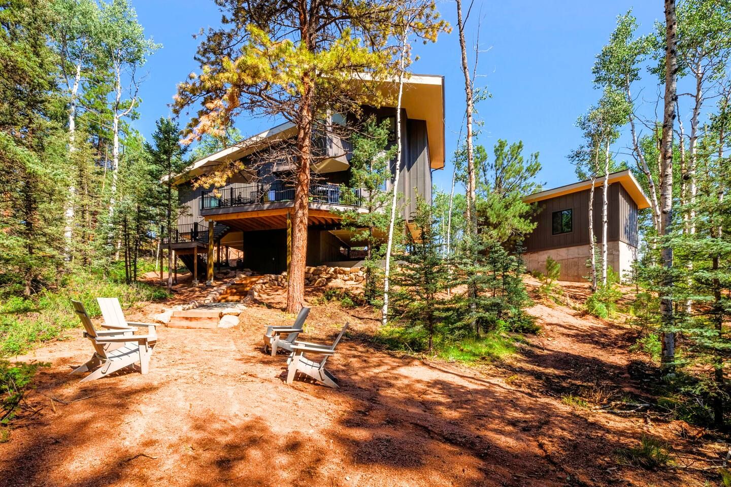 Nature lovers will find perfect happiness in this mountain retreat. Nestled in the Colorado Mountains, you can soak up the magic of the outdoors while relaxing on the deck. There are beautiful views across the surrounding woodland and plenty of chill-out spots both outside and in. The rooms are family-friendly and the living room has a fire – perfect for cosy movie nights. You’ll also be perfectly placed for adventures in nearby Woodland Park and Cripple Creek, while the Broadmoor and Cheyenne Mountain resorts are also within easy driving distance.