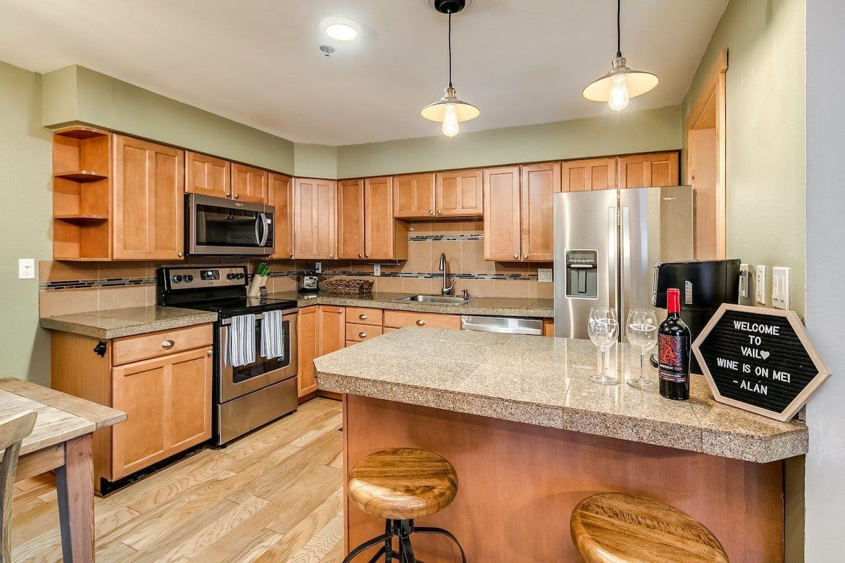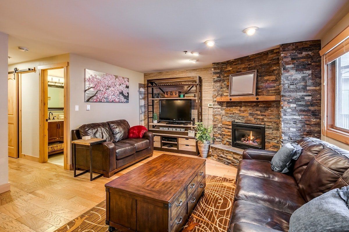 In East Vail, against a backdrop of pines and firs, this home has all the rustic lodge vibes you want, along with all the modern conveniences you need. A top floor condo, facing the mountain and making the most of the views, it's comfortable and homely. Depending on the time of year, you can bring your bikes and hit the trails, or pack your skis and walk just a few steps to the free ski shuttle each morning. Back at home, light the barbecue on the front balcony and eat outside in the fresh mountain air, or cook inside and cosy up in front of the fire. The heart of Vail, and its ski lifts, shops, and restaurants are just a short drive away, and if you're into fishing, don't miss the chance to walk down to Gore Creek.