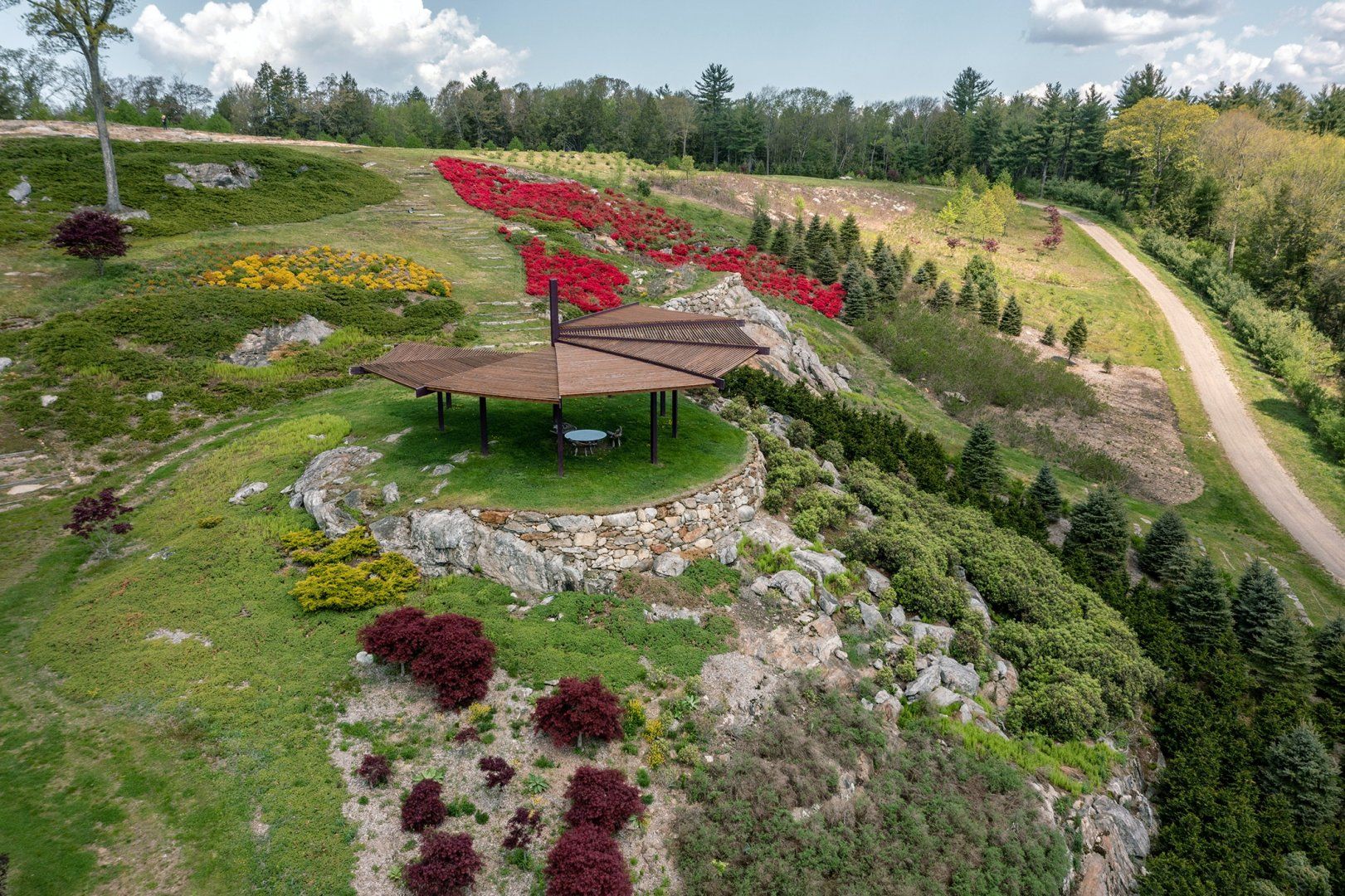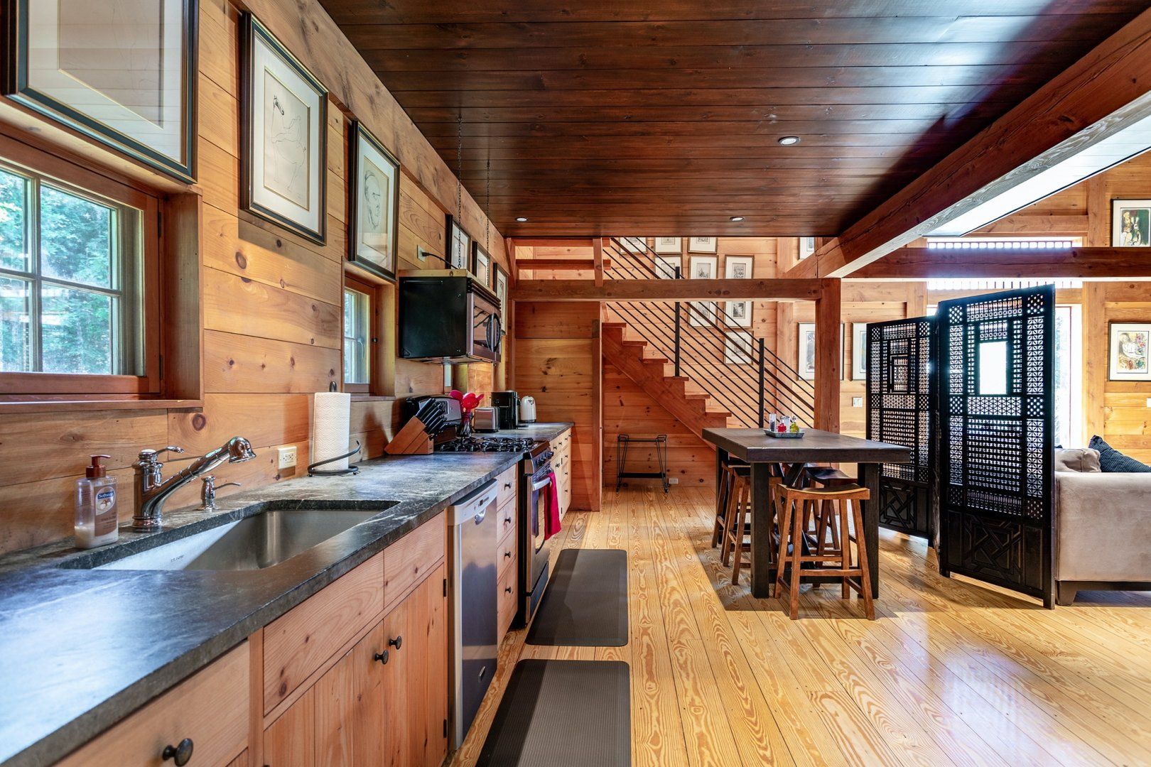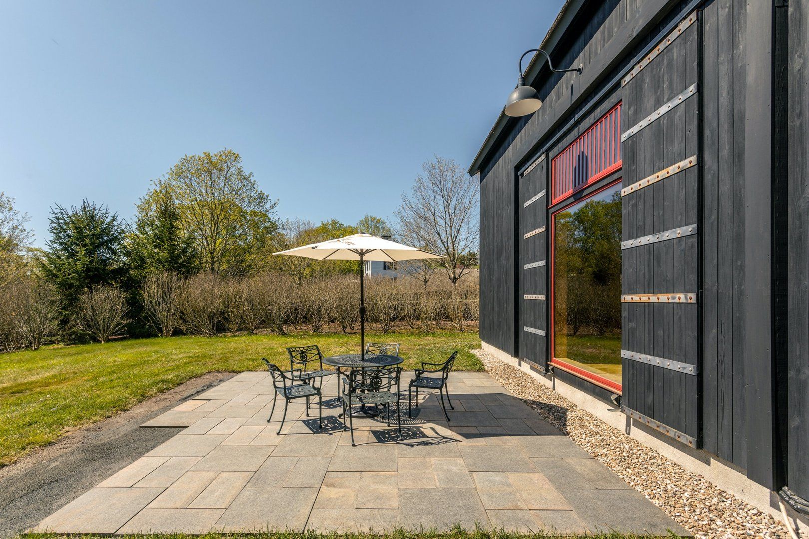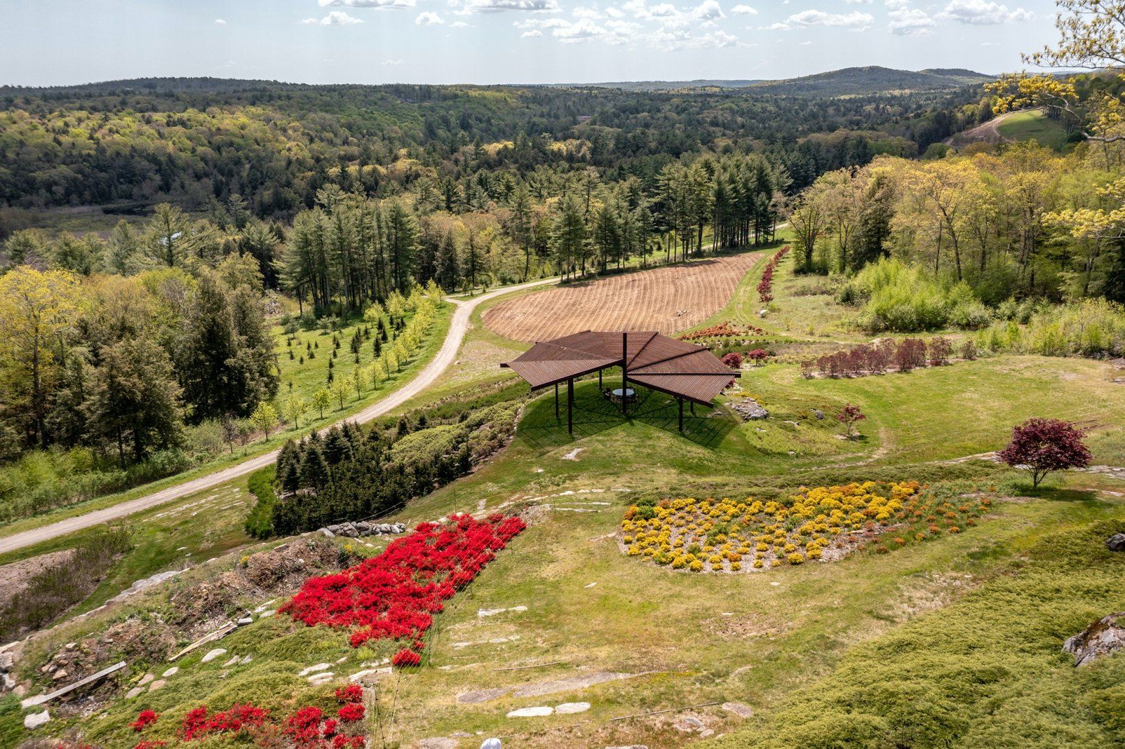 On sunny days, set out and explore your surroundings. Designed by a landscape architect, there is a beautiful sight at every turn. Head down to the circular wooden canopy for a picnic, or walk along the stream until you reach the lovely covered bridge. There is a private pond for swimming and kayaking, which is the perfect place to cool off after a walk through woodland and meadows. When you arrive back home, dine al fresco at the outdoor table, surrounded by picture-perfect scenery. The quaint town of Litchfield is an eleven minute drive away, where you’ll find grocery stores, antiques shops, and galleries.