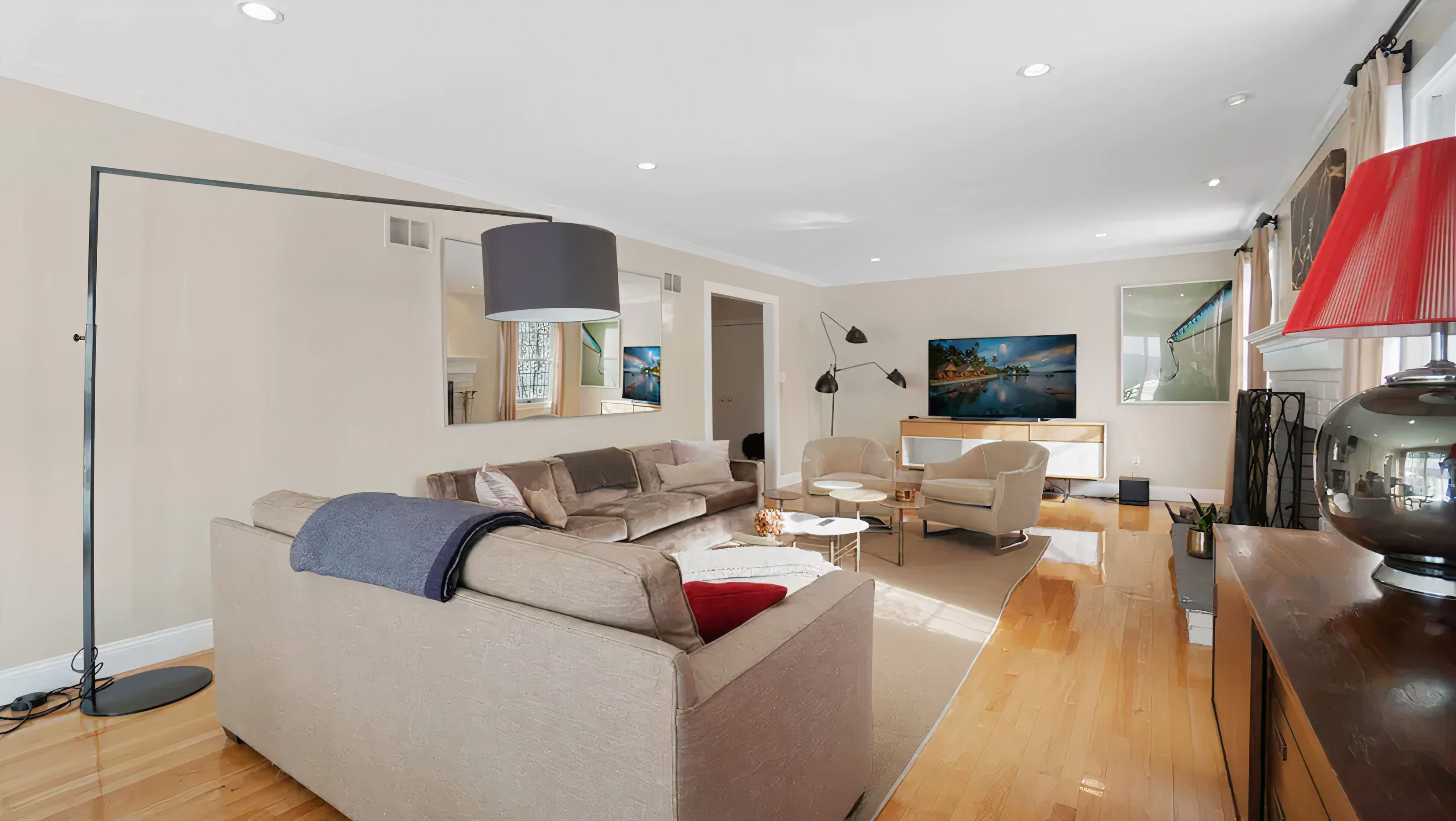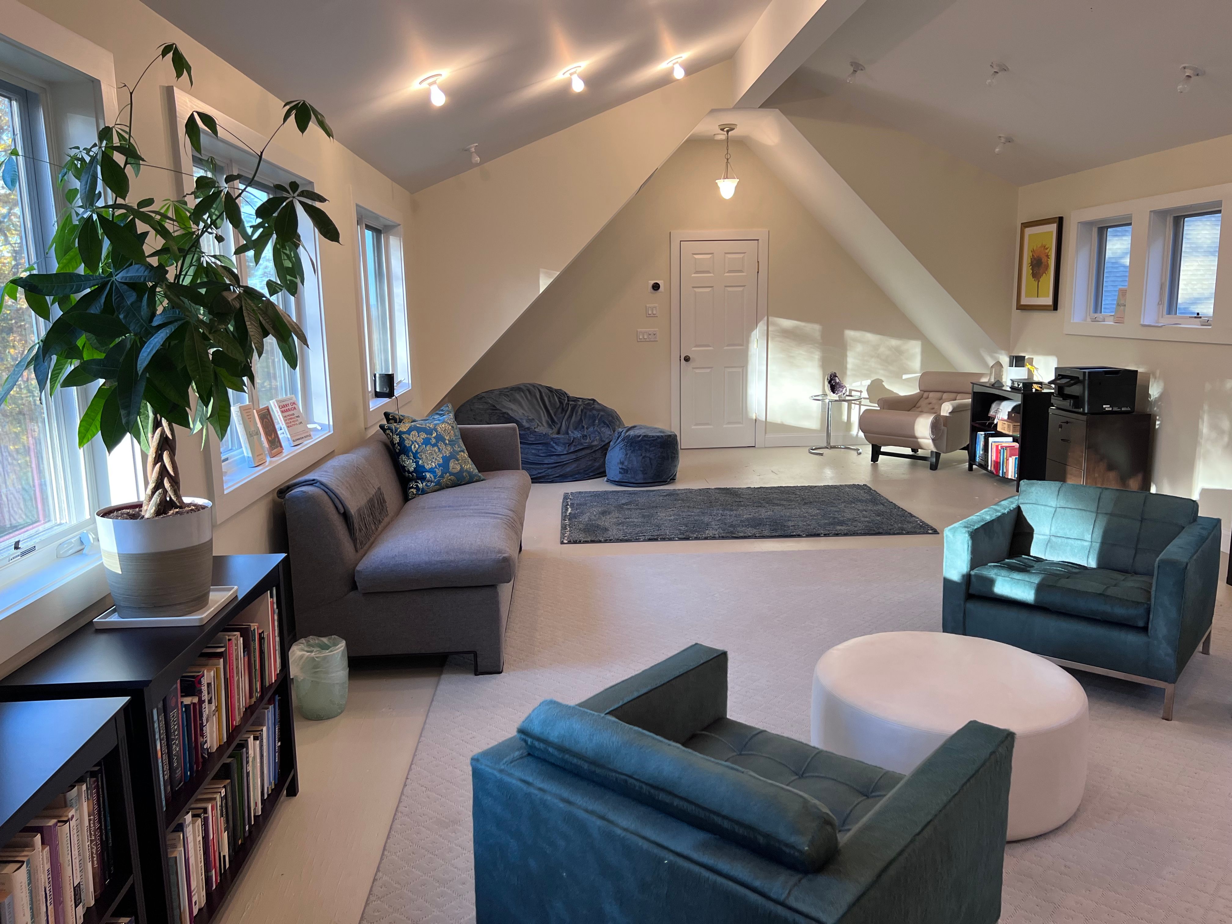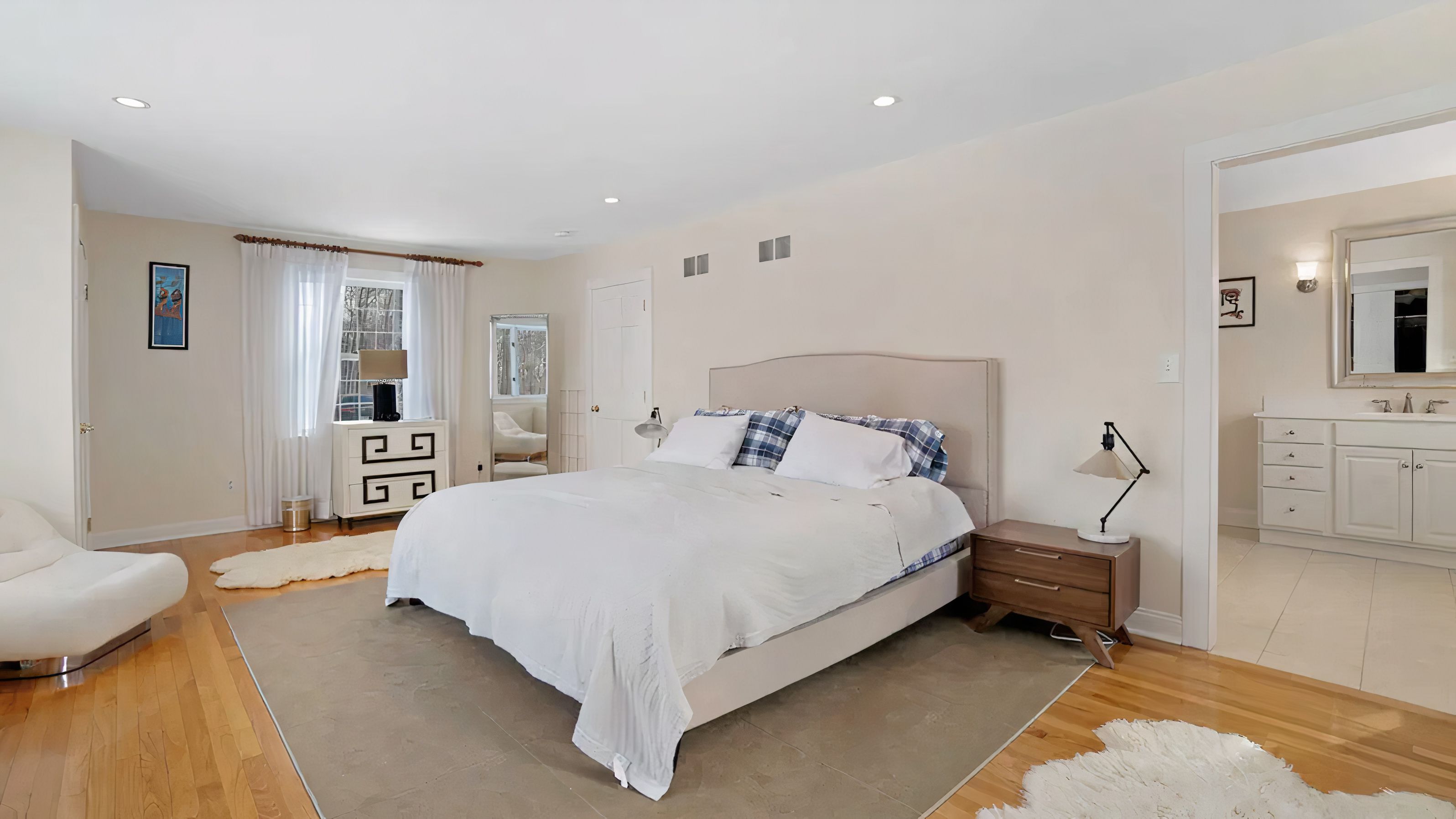 This country home is located on 6 acres of private land, so there’s plenty of outdoor space to enjoy here. We love the scenic views from the terrace, where you’ll have a front row seat to watch the sun set behind the surrounding hills and a fire pit to keep you warm on chilly evenings. Inside boasts an open-plan living/dining area with a fireplace – perfect for cosy nights in – and a huge home office, which can double up as a second lounge if you don’t need to work while you’re away. When it comes to exploring the area, you’ll find walking trails nearby – including one that takes you to picturesque Lake Quassapaug – and a trio of beaches within driving distance.