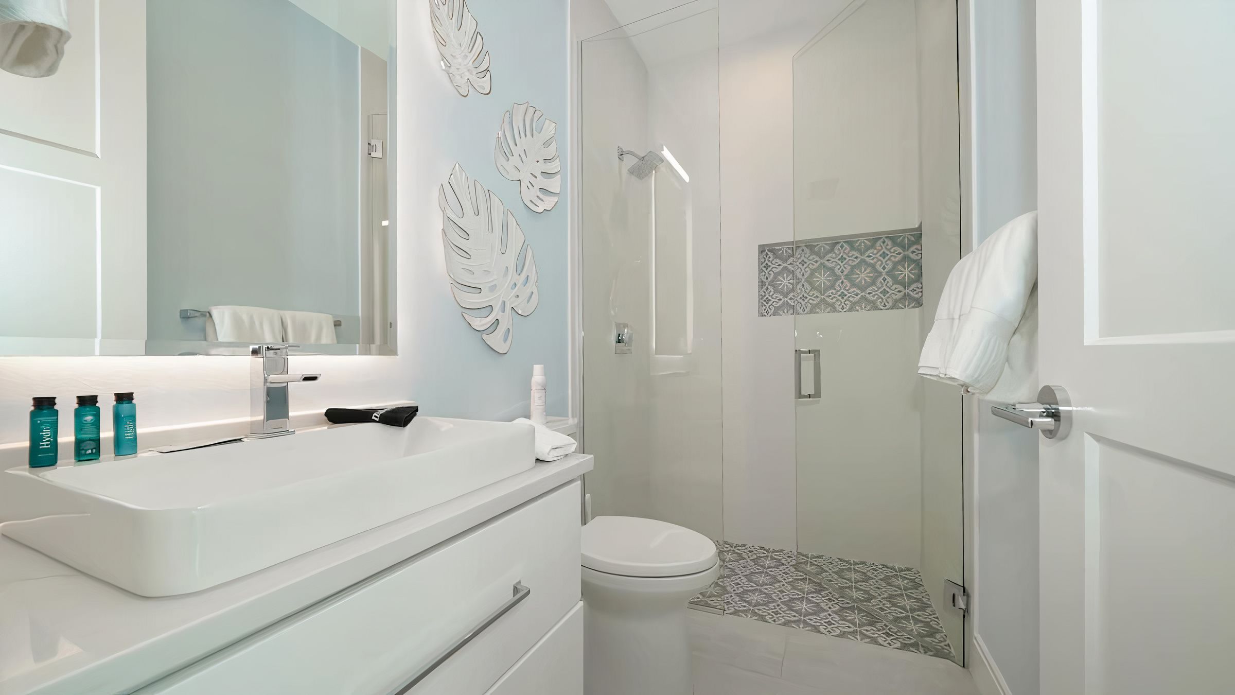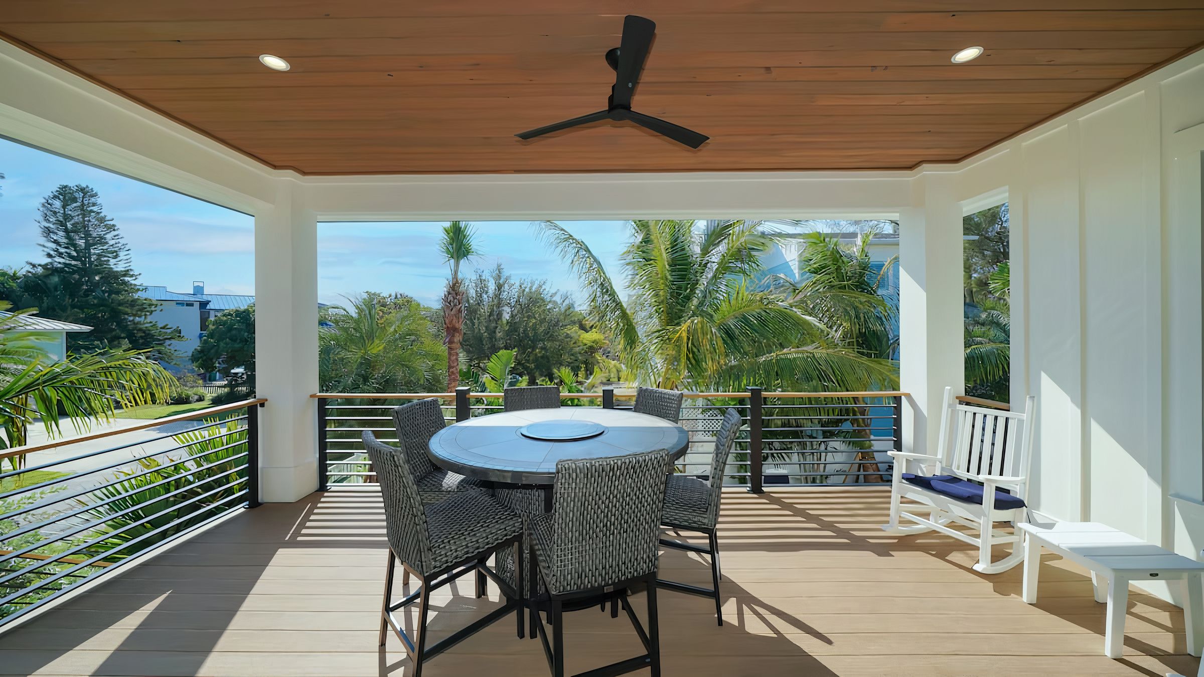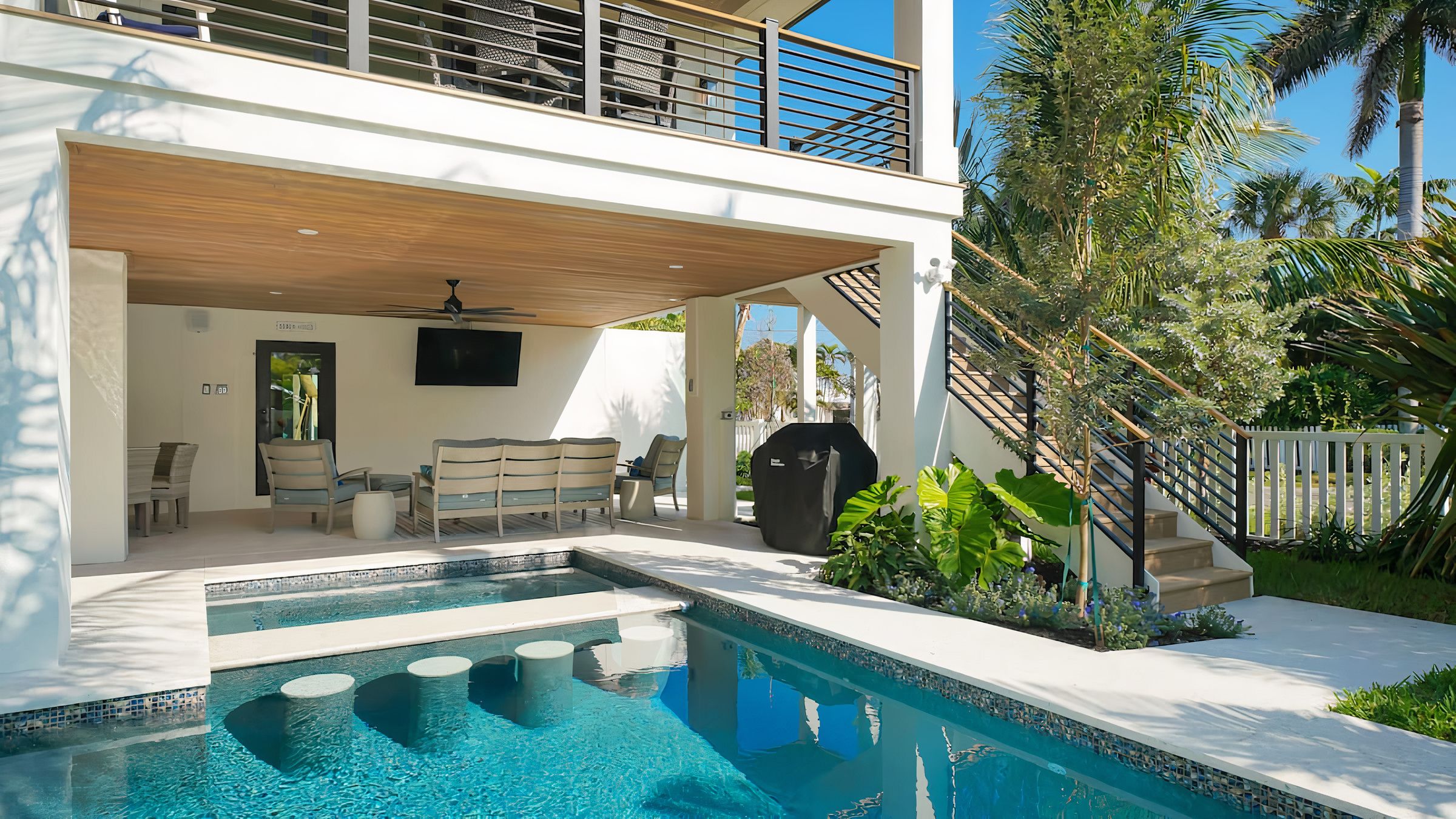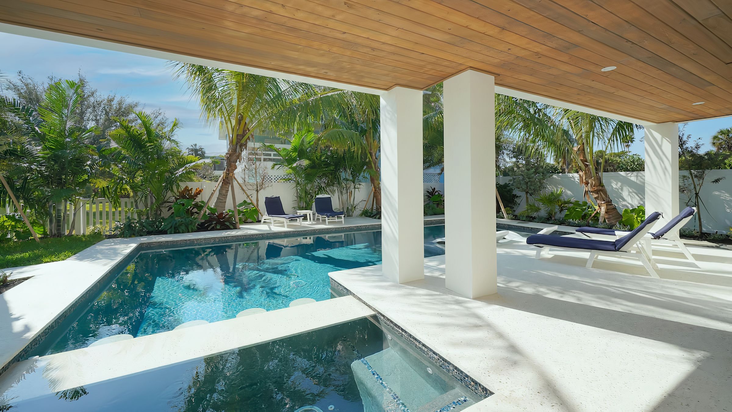 Cook Floribbean cuisine in the impressive chef’s kitchen and dish up in the dining room or serve outside on the shaded terrace. Once the plates are cleared and another ice-cold beverage is poured, find a spot to work on your tan. Pick out a lounger or float in the shimmering pool.