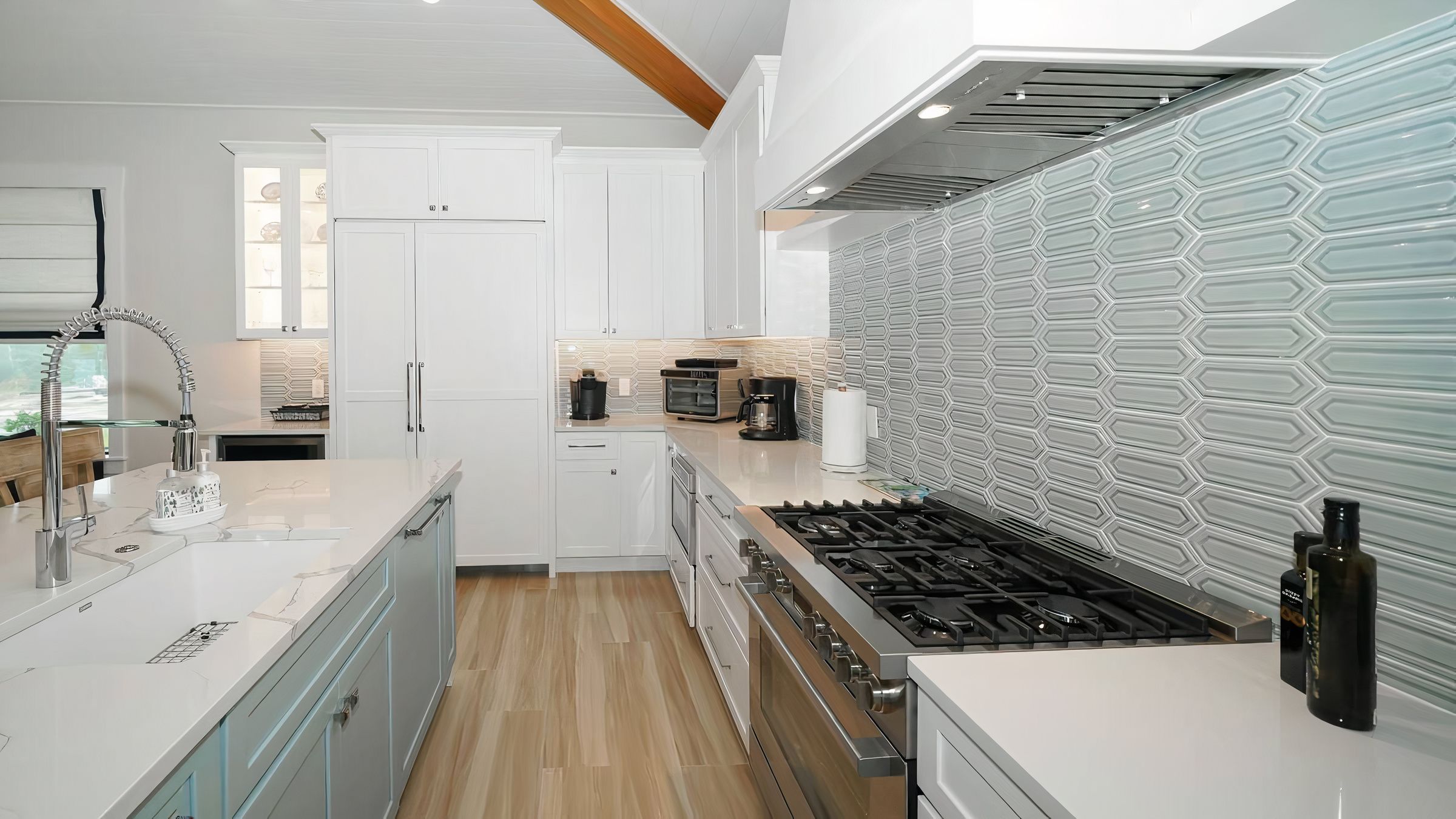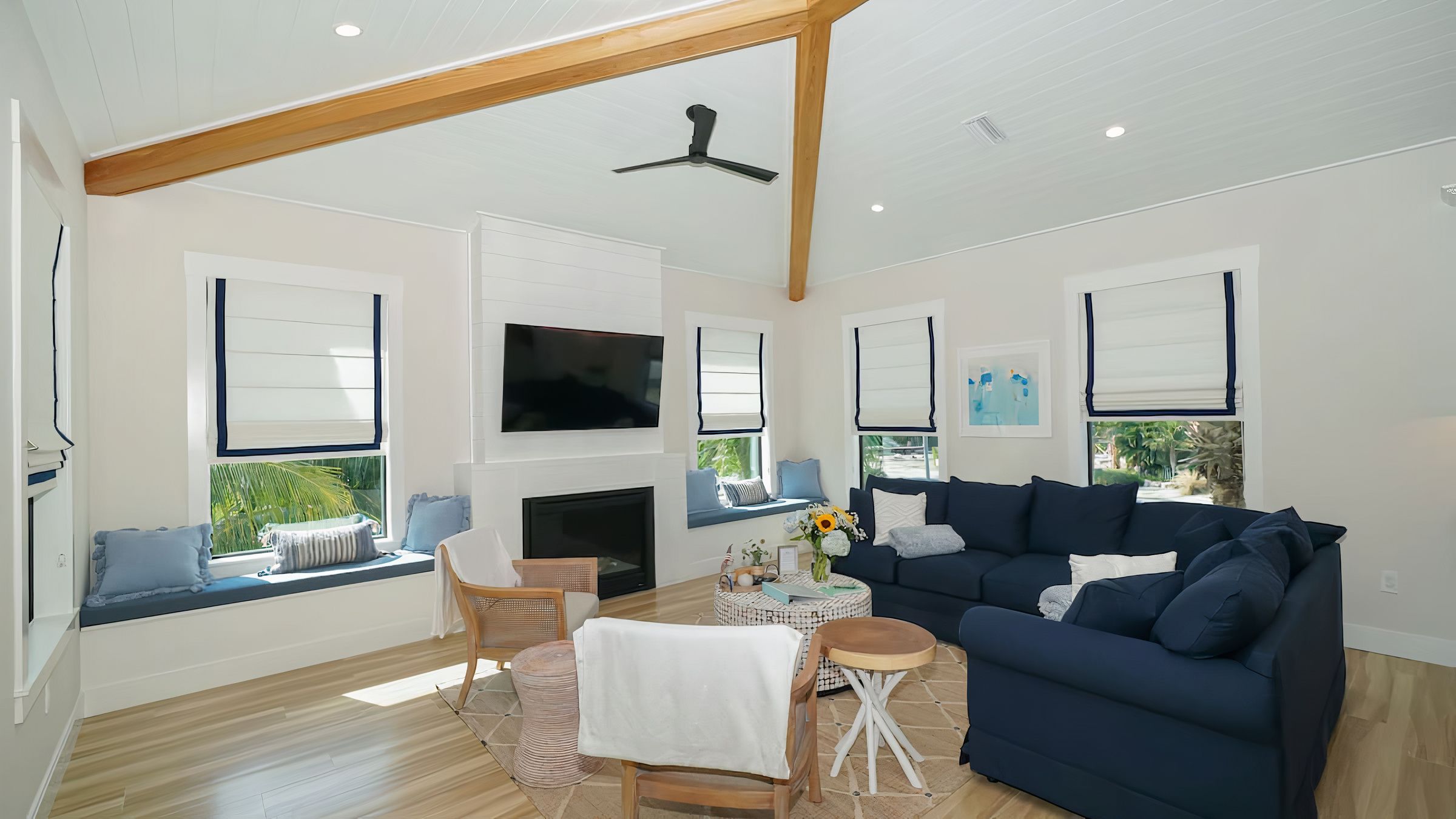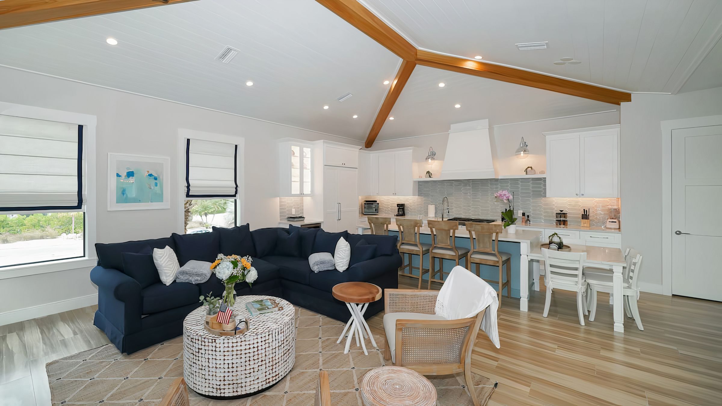 Tucked among swaying palms on Florida’s stunning Anna Maria Island, this home is an ideal getaway for families or friends wanting to while away the hours in the sunshine. Inside, clean lines, neutral tones and lofty vaulted ceilings combine to create a space that’s inviting, bright and breezy.