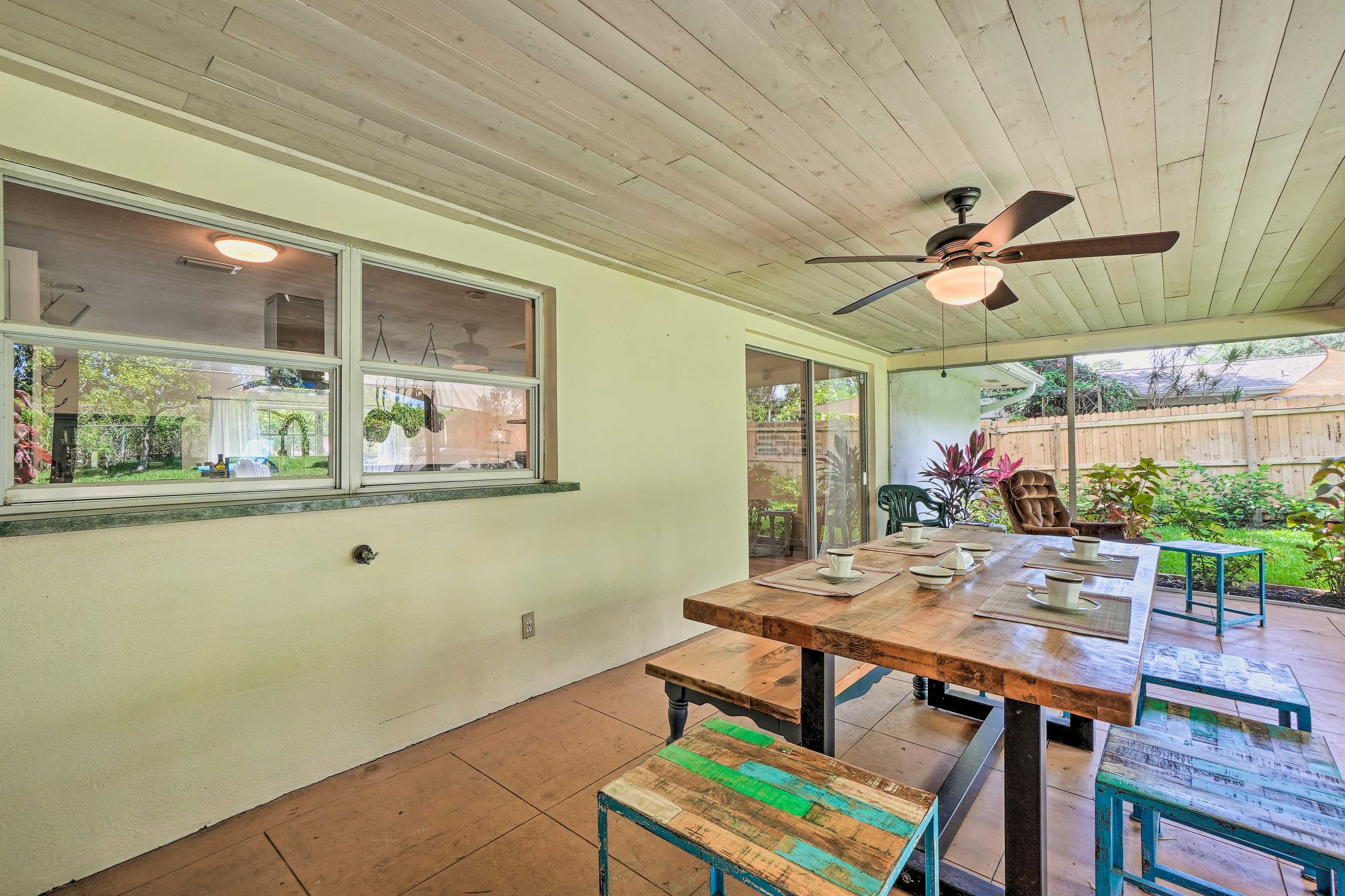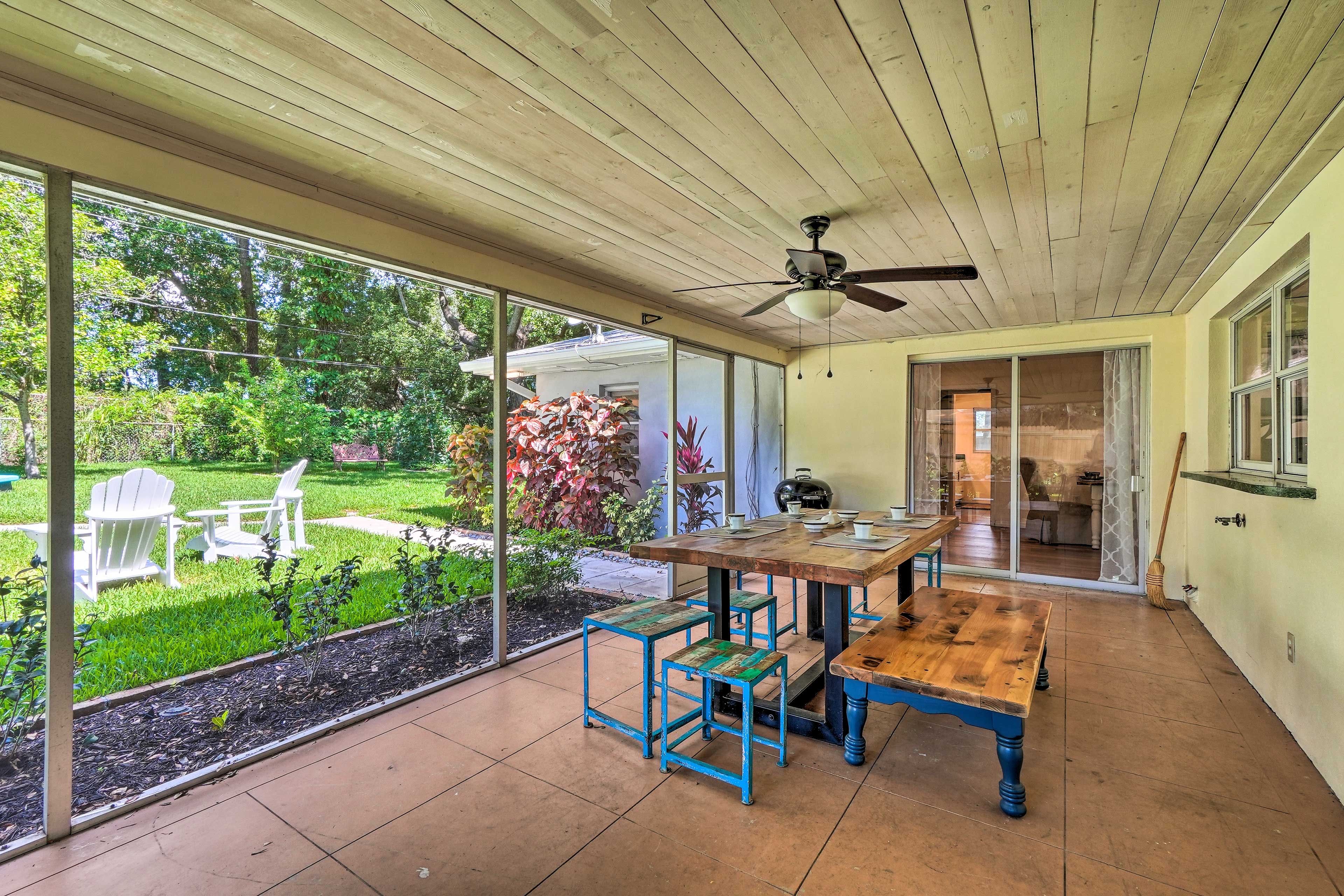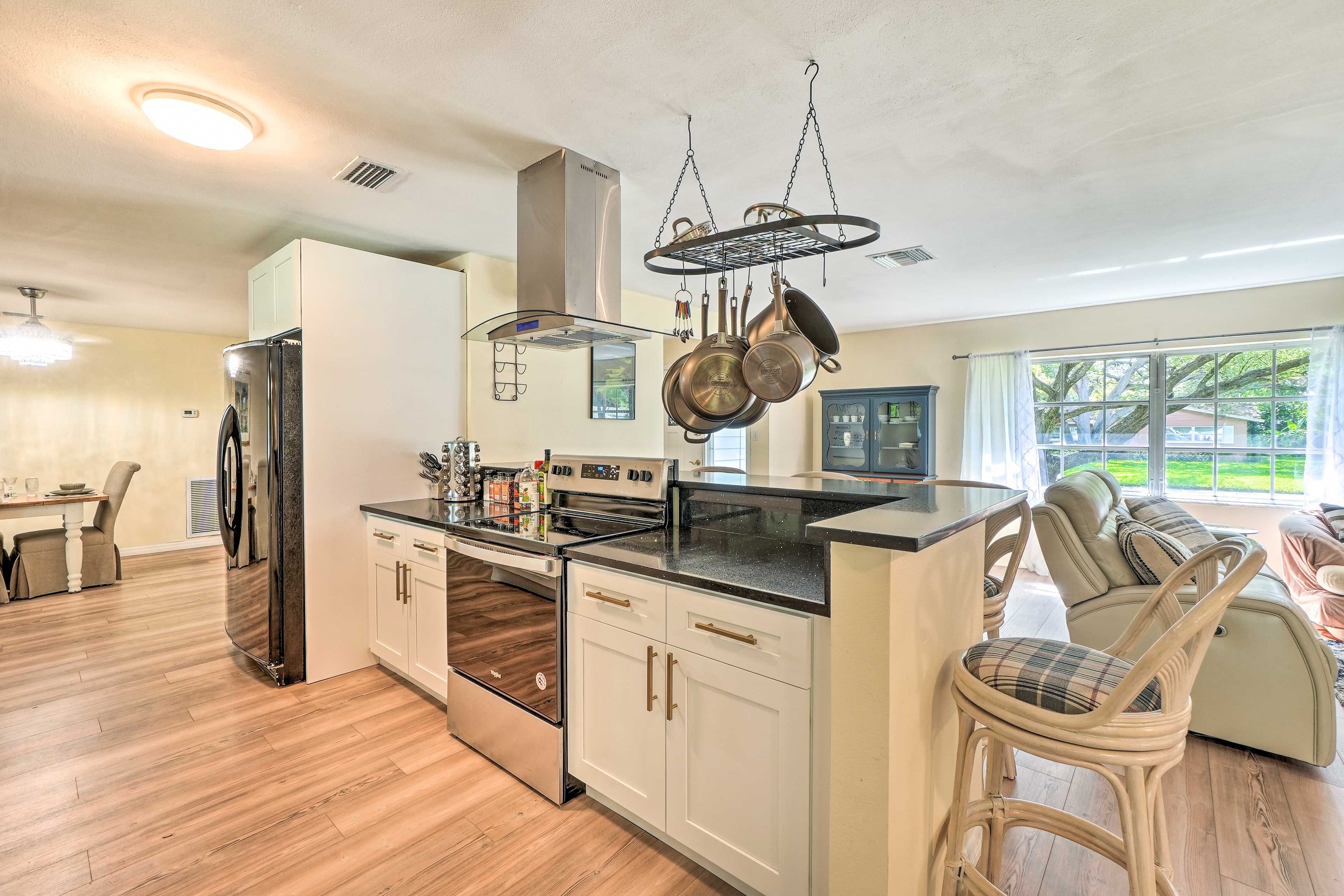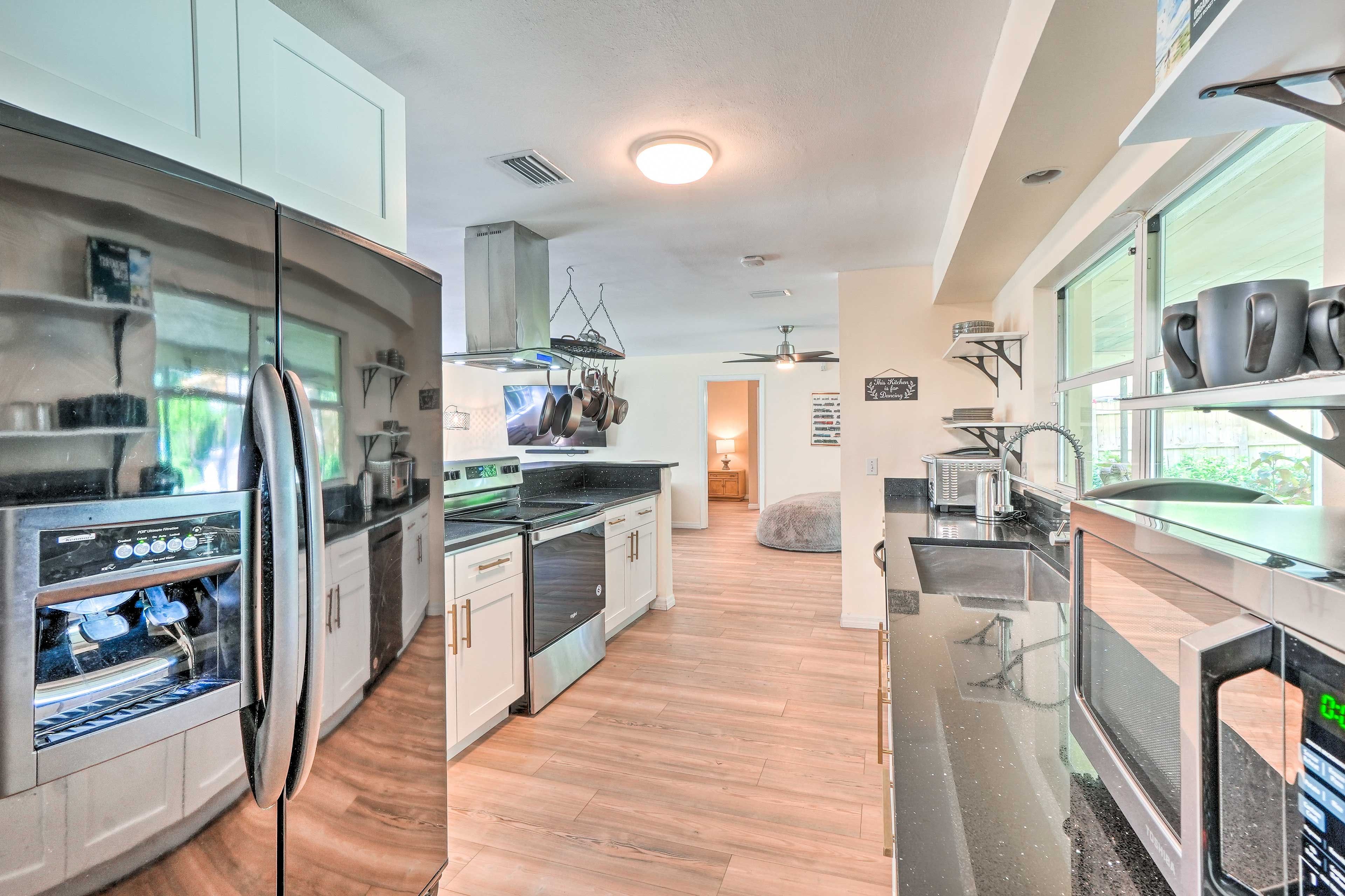 Arrive to be greeted by the cheerful exterior, set against the lush greenery of the garden. Inside, you’ll immediately feel the home’s warm embrace, with the bright living room, contemporary furnishings and plenty of room to lounge about and relax. You’ll be able to kick back and snuggle up for an evening of movies, courtesy of the streaming services available here, and there’s also a modern, well-equipped kitchen for putting together delicious family feasts. You can share these at the indoor dining table or outside in the private garden, where a comfy seating area awaits. Step out here to savour the balmy Florida air in the evening, along with some cool drinks and excellent company. Little ones will love the outdoor play area too.