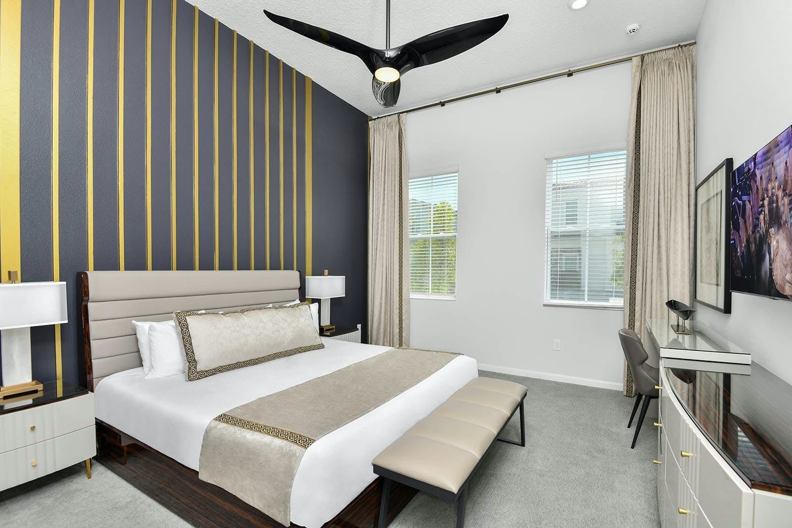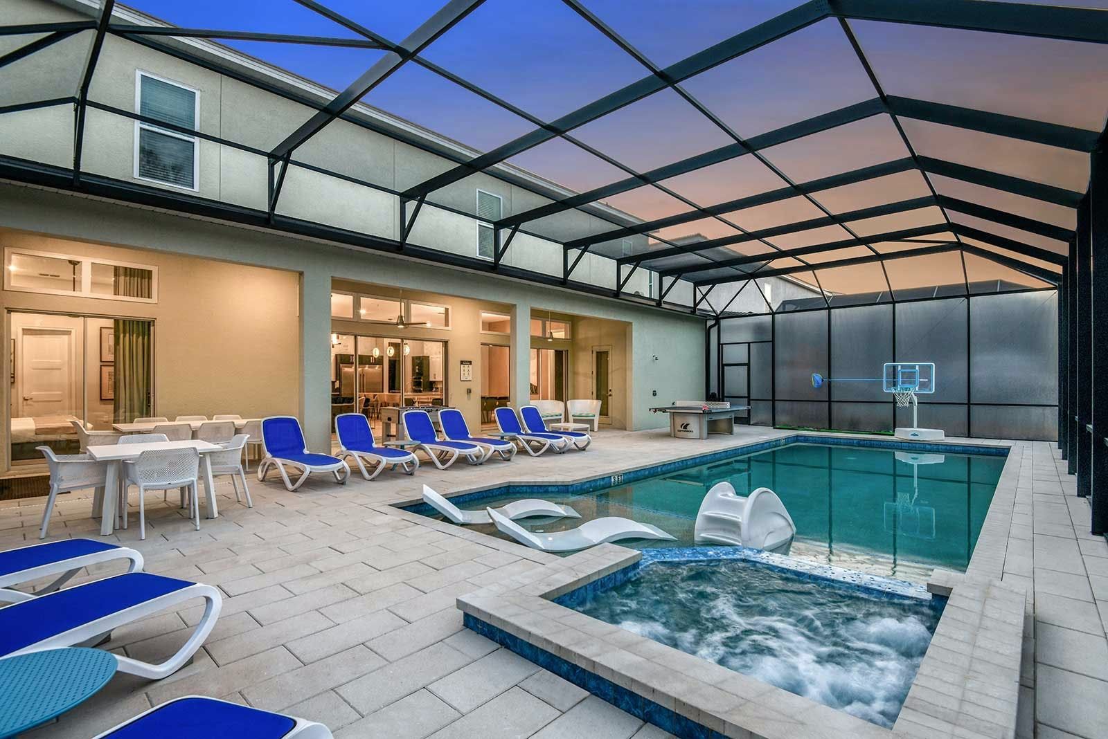 Just a short drive from Disney, this home places you in a magical part of Florida. Days can be spent exploring the local attraction parks or Downtown Orlando and Kissimmee. There’s plenty to keep the whole group entertained back at home with a private pool, Jacuzzi, sports simulator room, a cinema and a games room. Exercise enthusiasts will appreciate the fitness room, while everyone can enjoy access to the resort facilities – including the communal pool, tennis court and restaurant.