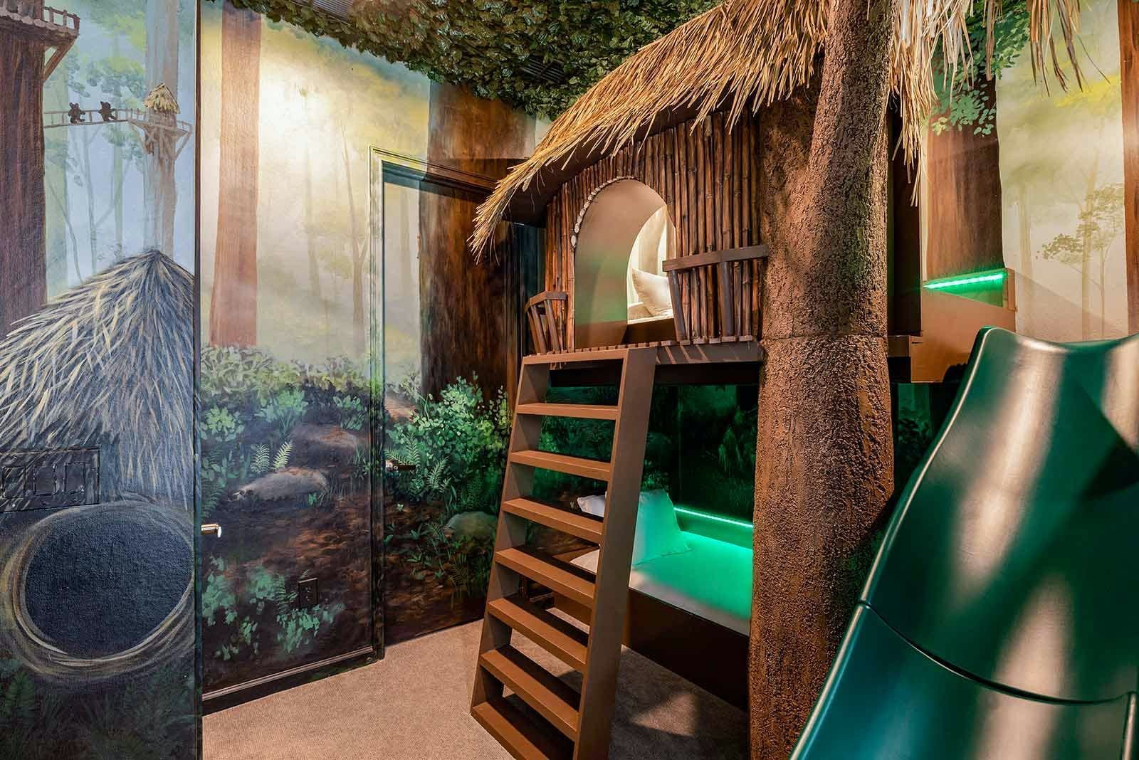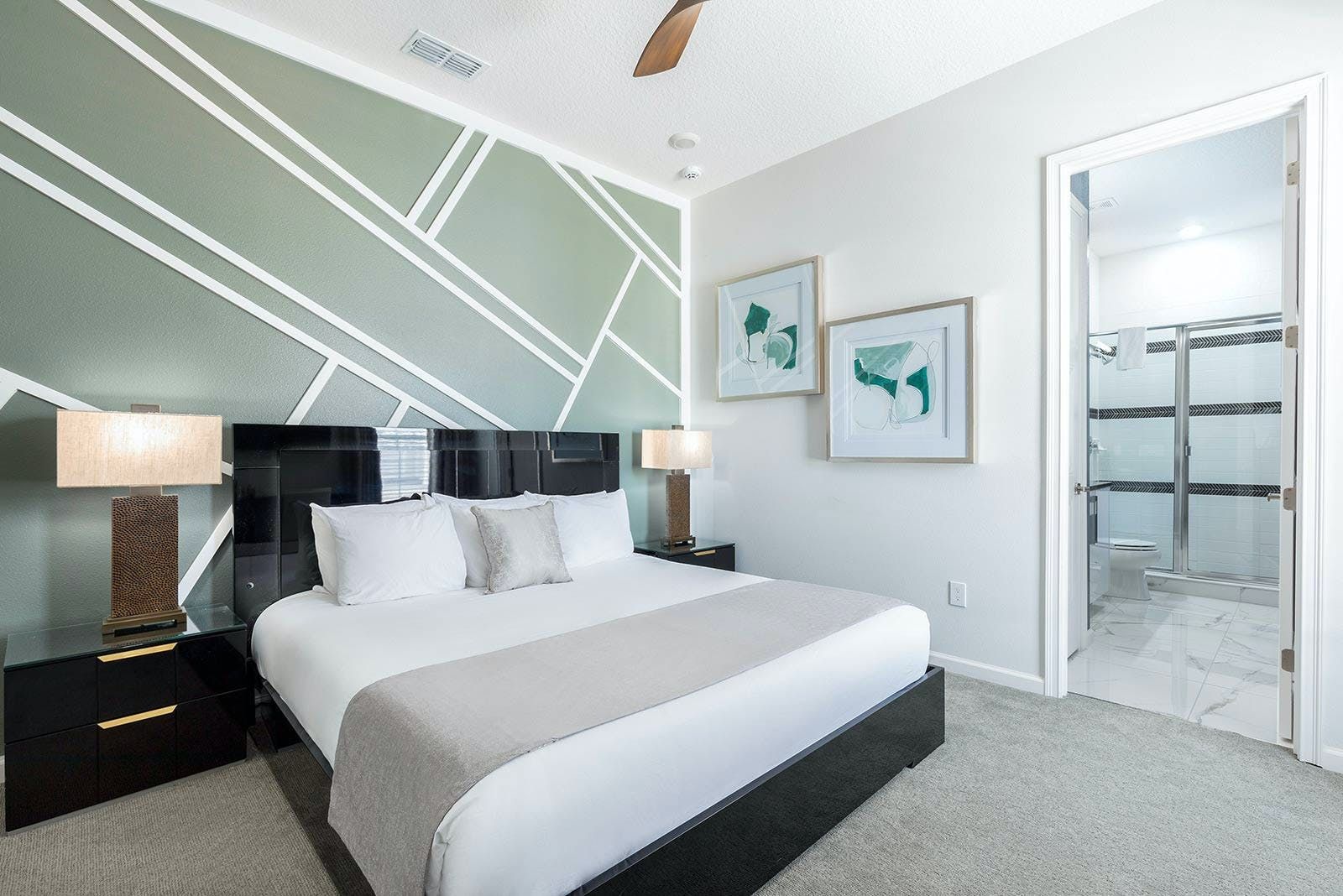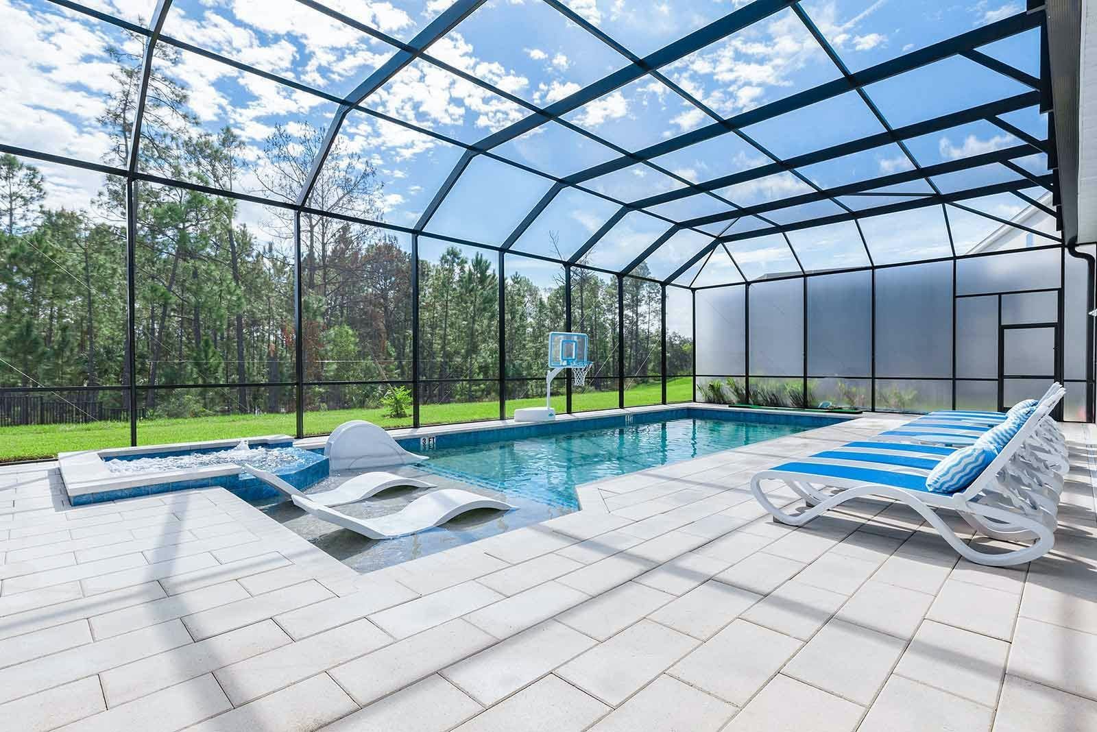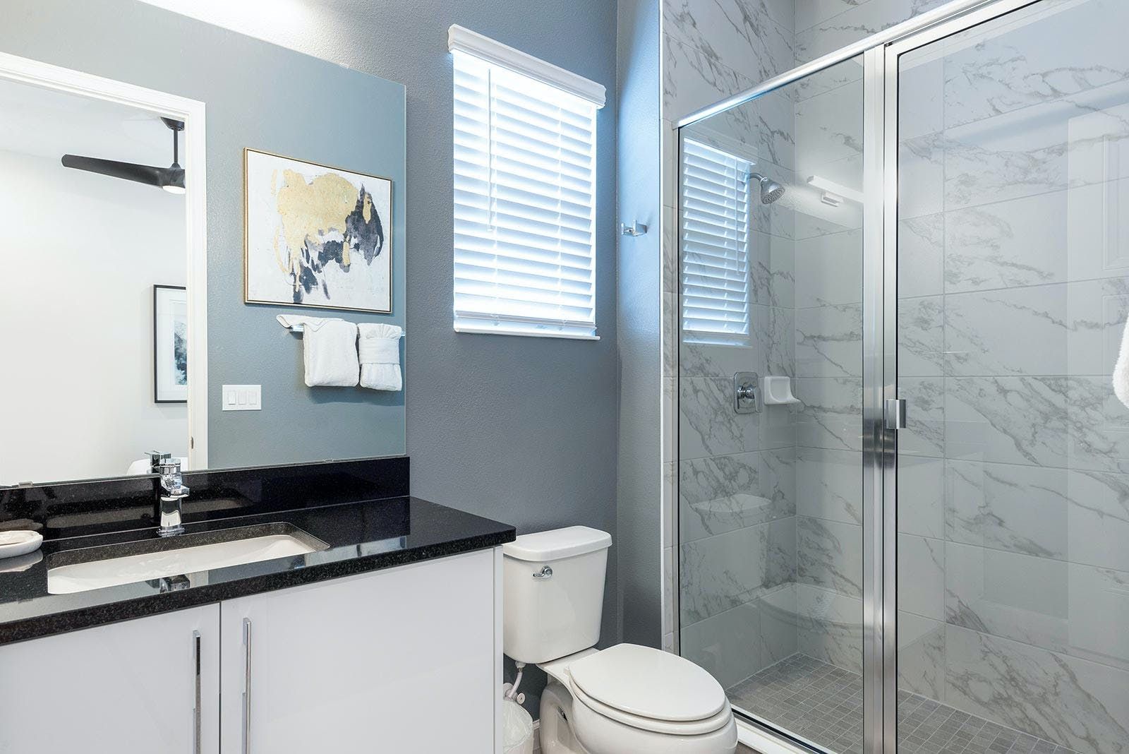 This luxurious 7,200-square-foot mansion features sleek modern décor and a fully equipped chef's kitchen with stone countertops, stainless steel appliances, custom deep-blue cabinetry, and oak floors. The mansion also boasts a built-in bowling alley, a VR room with three epic machines, a private movie theater with 15 reclining seats, and a game loft with pool table and other games. Outdoors, guests can enjoy the fabulous pool and spa, outdoor kitchen, ping-pong, foosball, pool basketball, and mini pool slide. The mansion has nine beautiful bedrooms with en suite baths including two master king-size bedrooms on the first floor and six more gorgeously appointed bedrooms on the second floor. Two themed kids' bedrooms are designed as playrooms filled with wonder and special surprises. Guests will have access to all of the resort's amenities: tennis courts, lazy river, fitness center, etc., as well as nearby attractions like Disney Parks and World-Class Shopping & Dining.