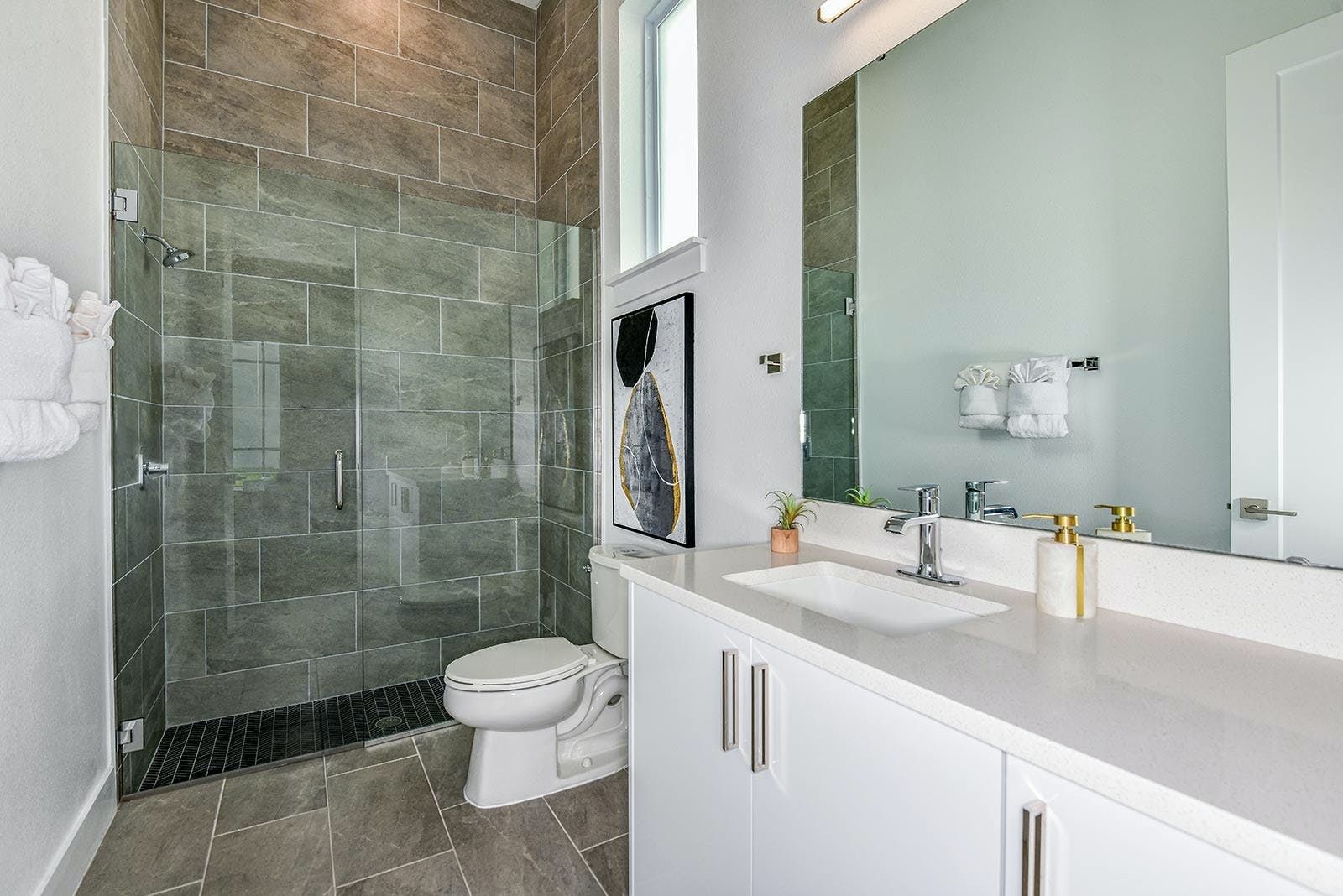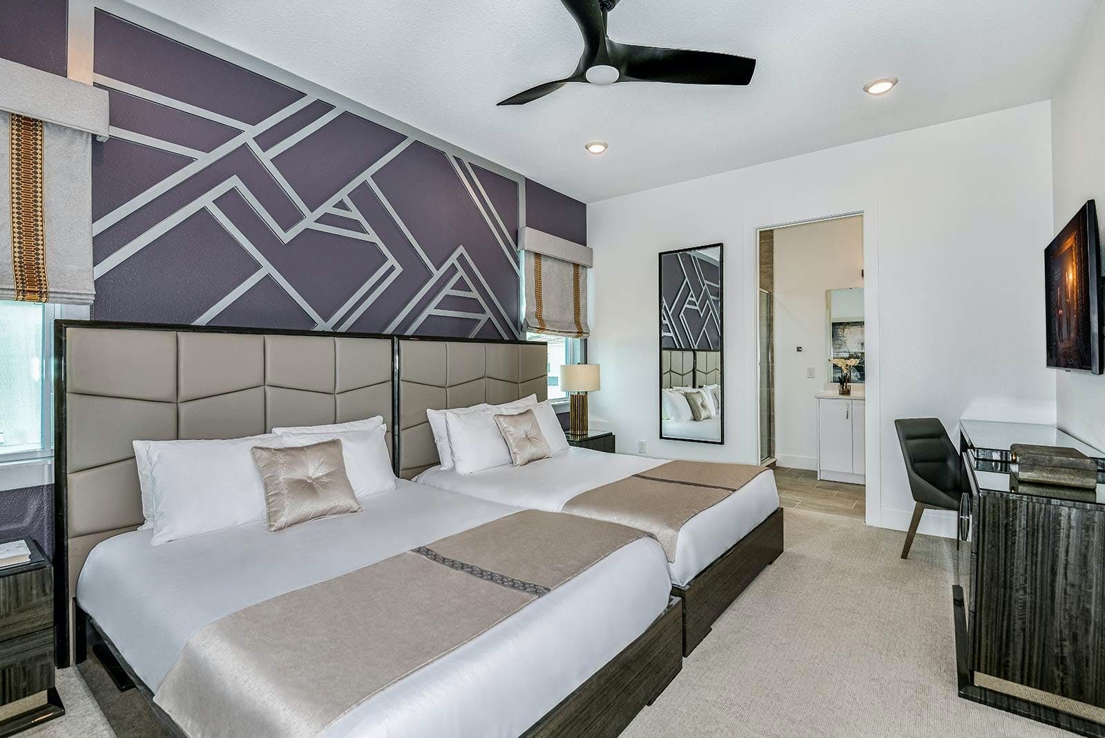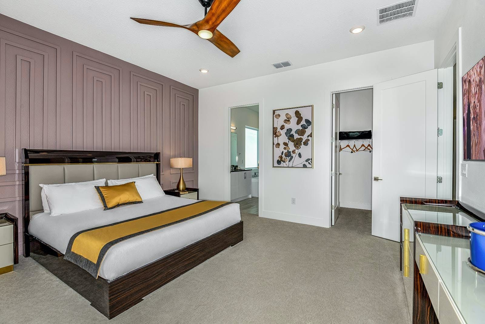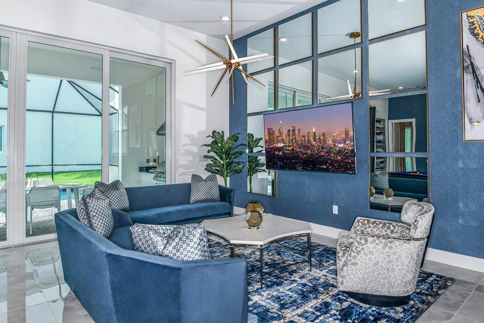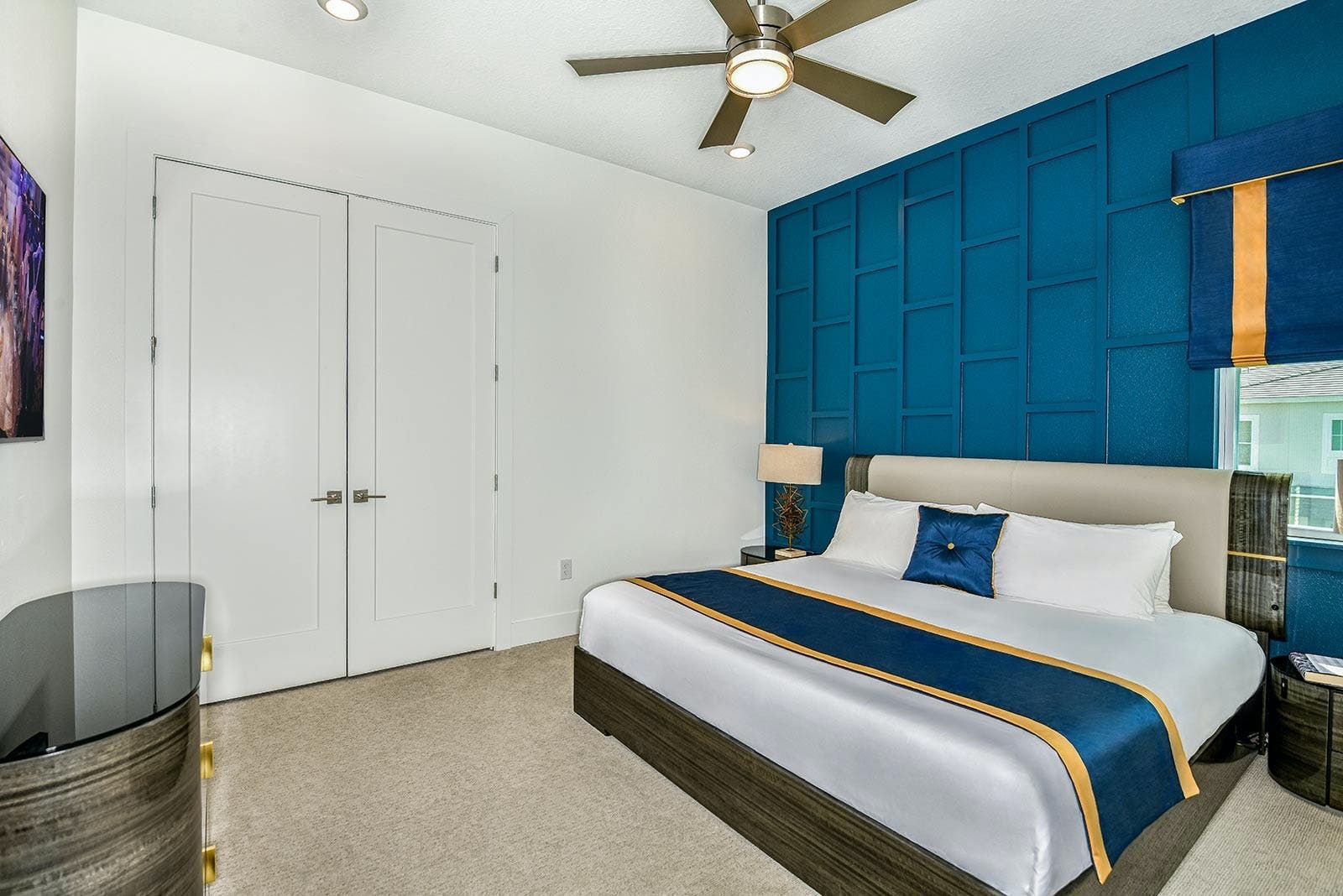 This home is located in a brand new resort area. This luxury home boasts 7 bedrooms, 7.5 bathrooms, and exclusive amenities such as a private entrance, scenic views, and a covered playground. The grand foyer leads to a spacious great room with polished yet inviting Transitional-style design featuring chic and comfy furnishings perfect for lounging and socializing as well as a pool table for games. The fully equipped chef's kitchen with modern stainless appliances, crisp white cabinetry, and sleek black accents opens up to the elegant dining area. The outdoor area has a sparkling private swimming pool with spillover spa, foosball table on the patio, covered outdoor kitchen with built-in BBQ and dining area. The villa also includes a game loft/office space with shuffleboard, air hockey, and desk-and-chair office setup, as well as a private cinema complete with plush seating and surround sound. Five additional bedrooms cater to grownup tastes with high-end furnishings and en suite bathrooms while the ultimate "ta-da" moment will come from the themed bedroom that sleeps up to six lucky kids in an intergalactic forest home featuring wall art of grasslands and savannahs, cozy treehouse dwellings (aka bunk beds), walk-in closet that doubles as a secret game room! The villa is located just minutes away from Orlando's famous attractions and dining destinations such as Disney Parks, Universal Parks, SeaWorld, World-Class Shopping & Dining.