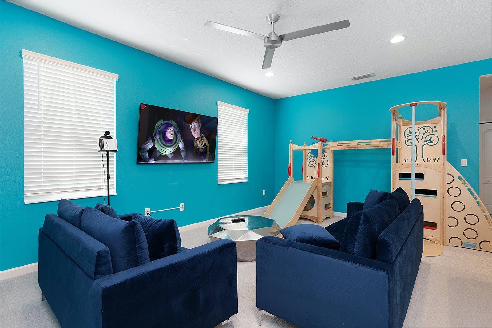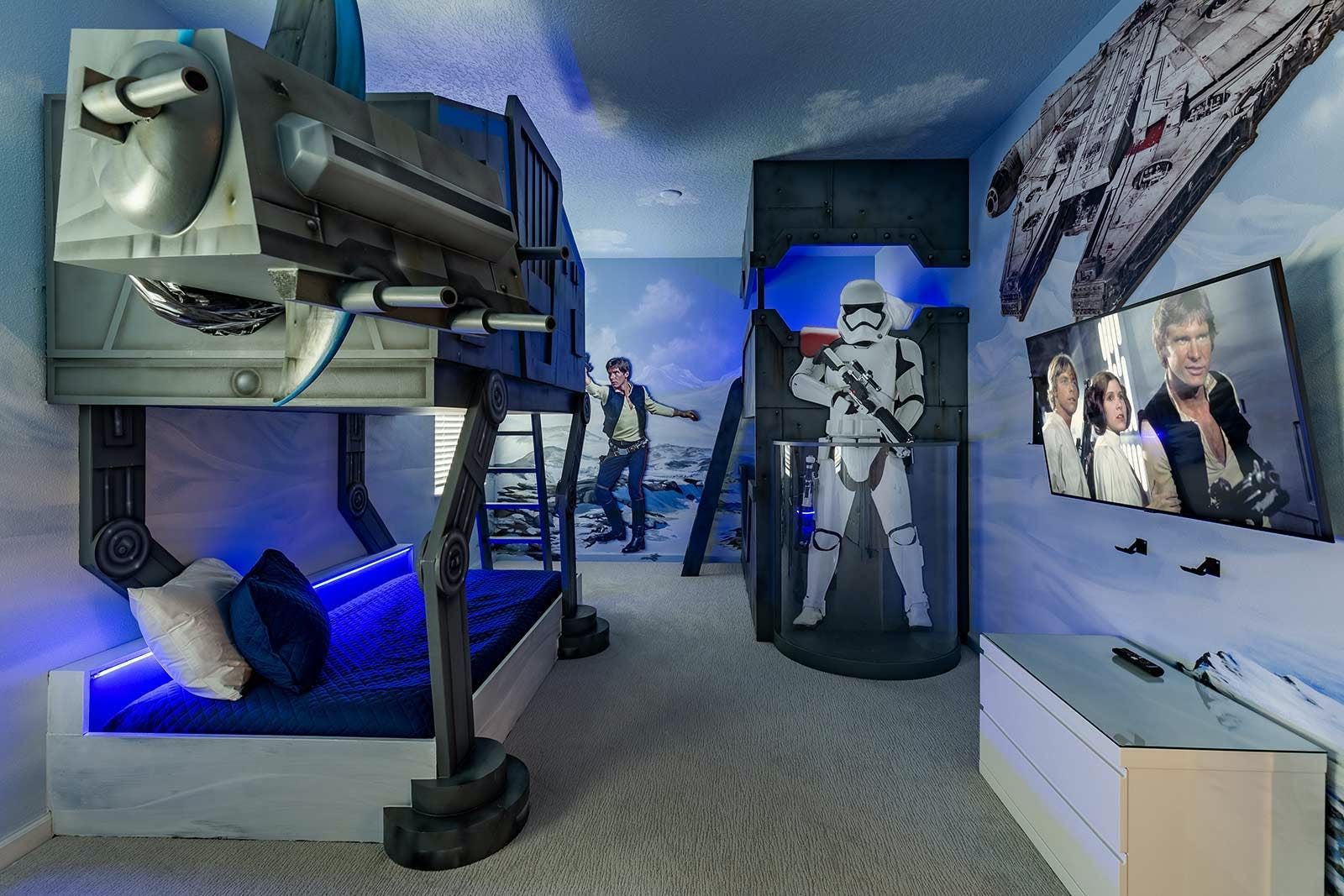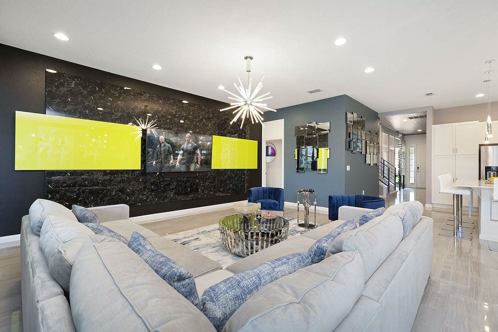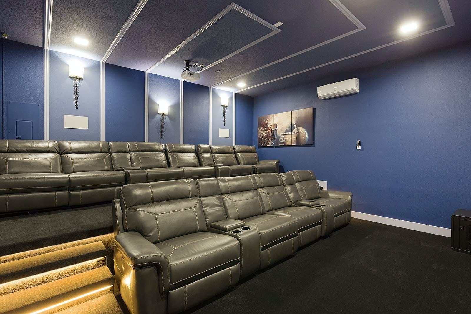 This enchanting a resort villa in Orlando features an array of amenities to keep the entire family entertained. Children will love the themed bedrooms—the Lego room with its colorful wall art and over-the-top bunk beds, and the Galactica room with outer space décor. The arcade is fully decked out with games like Pac-man Basketball and Batman, while the upstairs loft offers more options like air hockey and pool. A private home theater boasts 10 leather recliners and a giant projector. Outside, guests can enjoy a screened-in pool and spillover spa surrounded by outdoor games, loungers, and a 12-seat patio table for al fresco dining. The villa also features high-end dining tables, a sleek kitchen with a breakfast bar, and plush living room seating. The upscale king and full-sized bedrooms all feature private en-suite bathrooms with deluxe mattresses and hotel-quality linens. a resort community offers additional amenities such as an oversized pool, lazy river, tennis courts, fitness center, and more. Just miles from Disney and other popular attractions, this villa promises convenience, comfort, and memories that will last a lifetime!