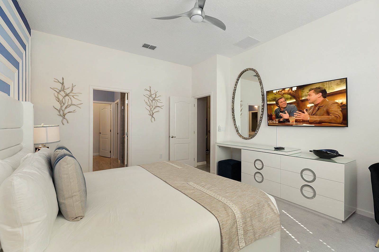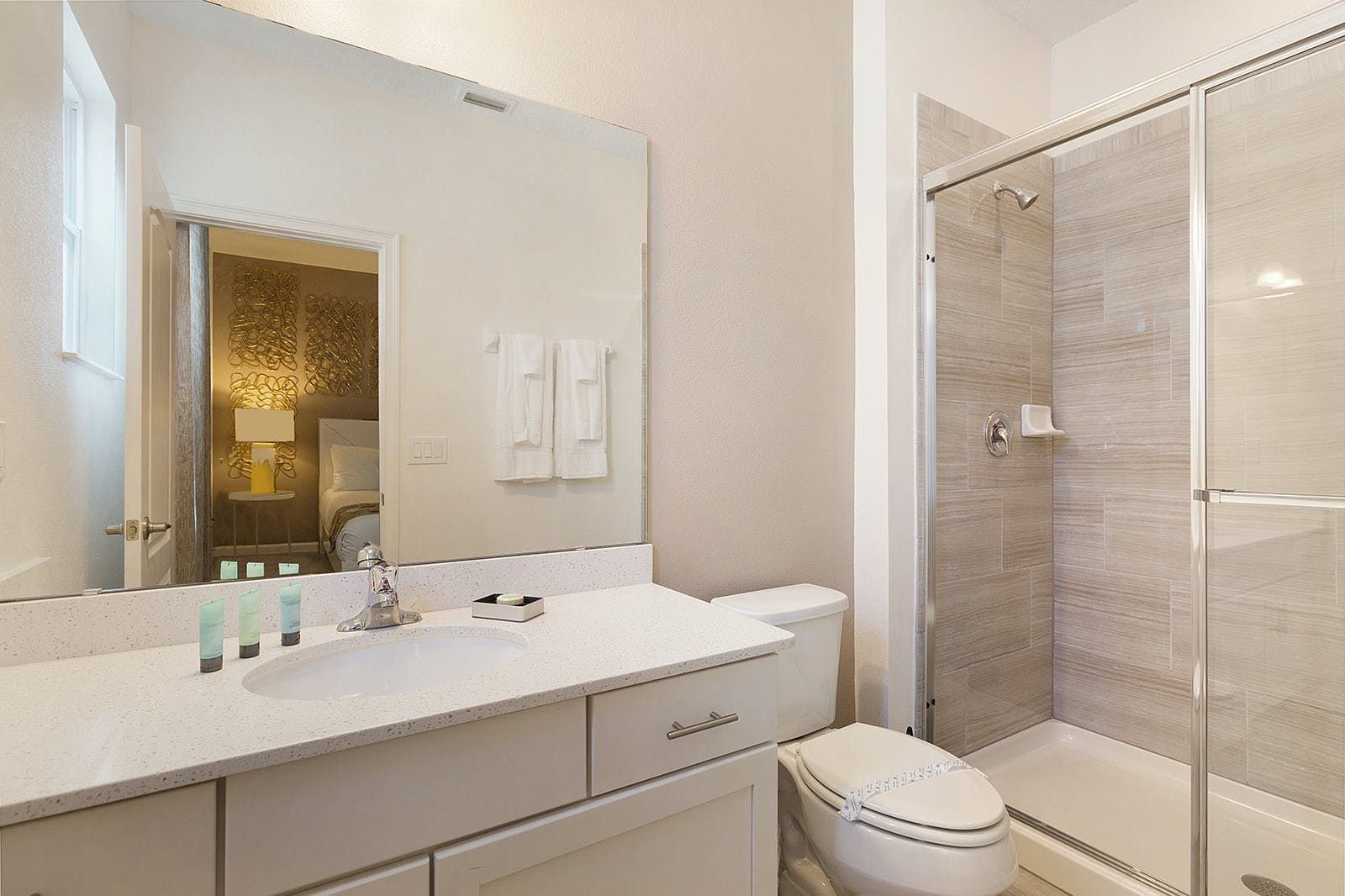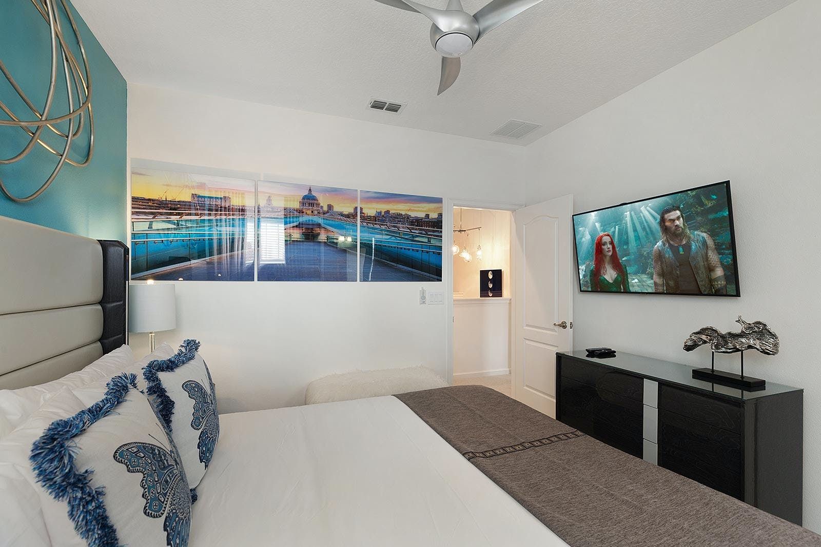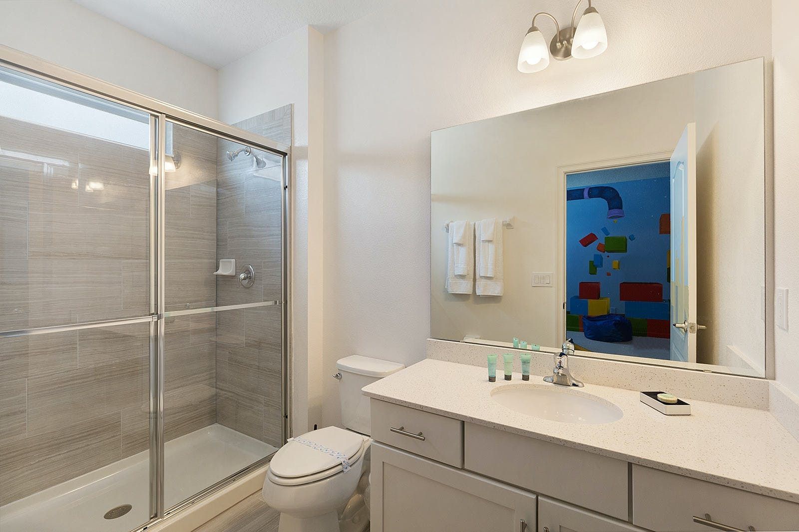 This enchanting a resort villa in Orlando features an array of amenities to keep the entire family entertained. Children will love the themed bedrooms—the Lego room with its colorful wall art and over-the-top bunk beds, and the Galactica room with outer space décor. The arcade is fully decked out with games like Pac-man Basketball and Batman, while the upstairs loft offers more options like air hockey and pool. A private home theater boasts 10 leather recliners and a giant projector. Outside, guests can enjoy a screened-in pool and spillover spa surrounded by outdoor games, loungers, and a 12-seat patio table for al fresco dining. The villa also features high-end dining tables, a sleek kitchen with a breakfast bar, and plush living room seating. The upscale king and full-sized bedrooms all feature private en-suite bathrooms with deluxe mattresses and hotel-quality linens. a resort community offers additional amenities such as an oversized pool, lazy river, tennis courts, fitness center, and more. Just miles from Disney and other popular attractions, this villa promises convenience, comfort, and memories that will last a lifetime!