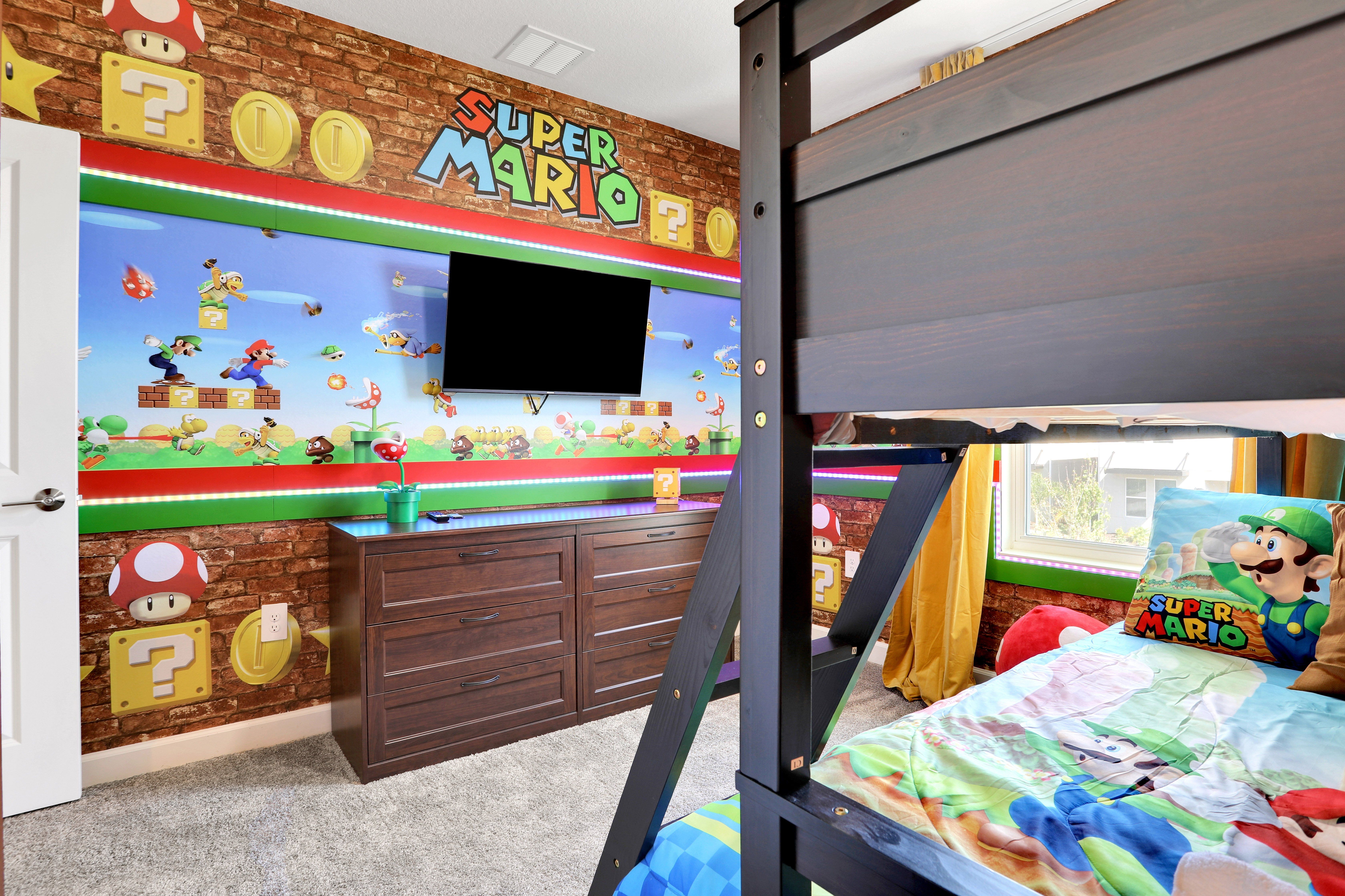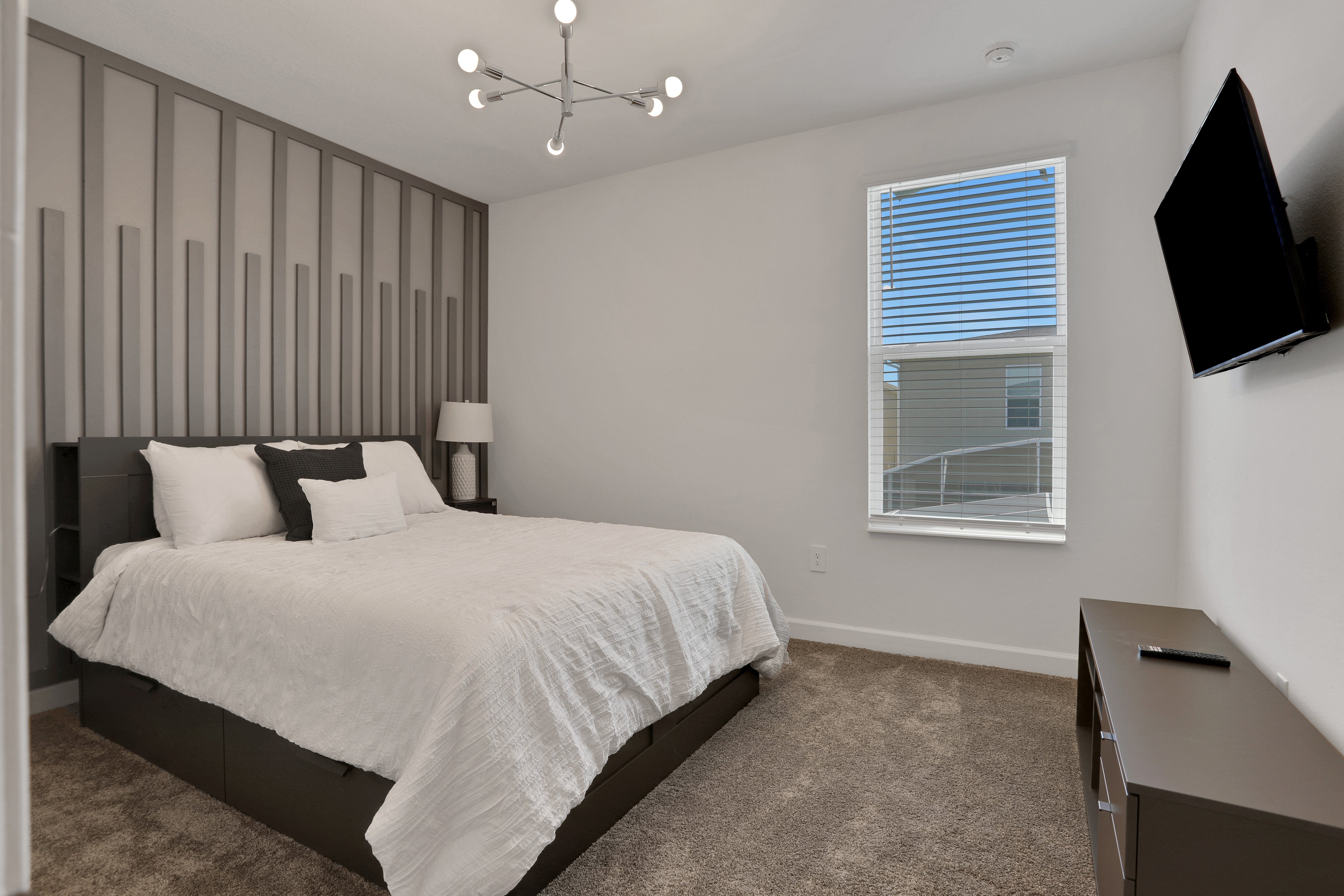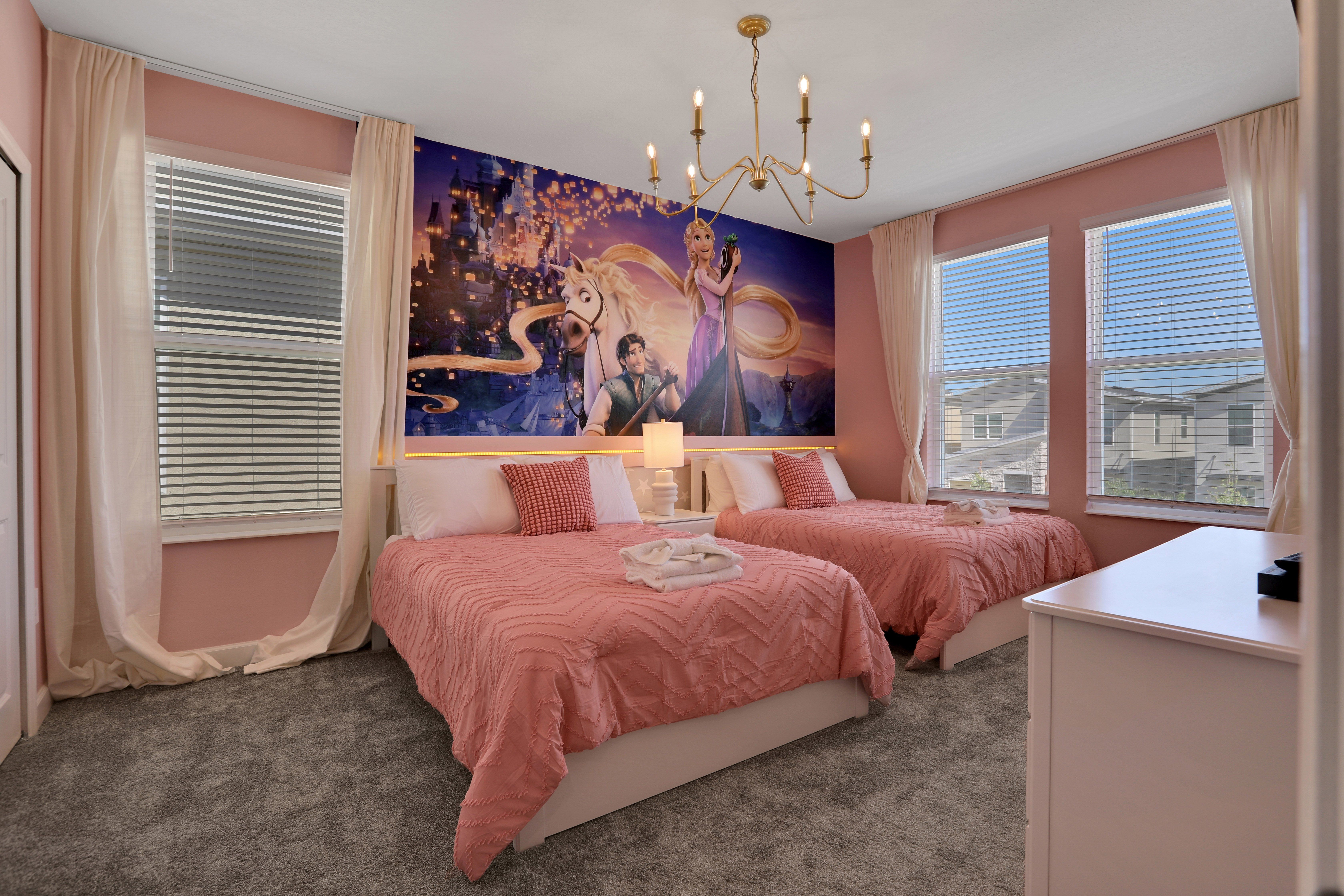 This Orlando home has been designed with both entertainment and relaxation in mind. Boasting a screened-in private pool, hot tub, and open-plan TV lounge, there’s plenty to keep you busy here. The covered lanai is perfect for alfresco dinners and when it’s time for bed, kids will love the character-themed bedrooms. Located in a resort community, you’ll also have access to the on-site water park, golf course, and clubhouse. And if you’re visiting Florida for the theme parks, Walt Disney World is just a twenty-minute drive away, and Universal Studios can be reached in forty minutes.