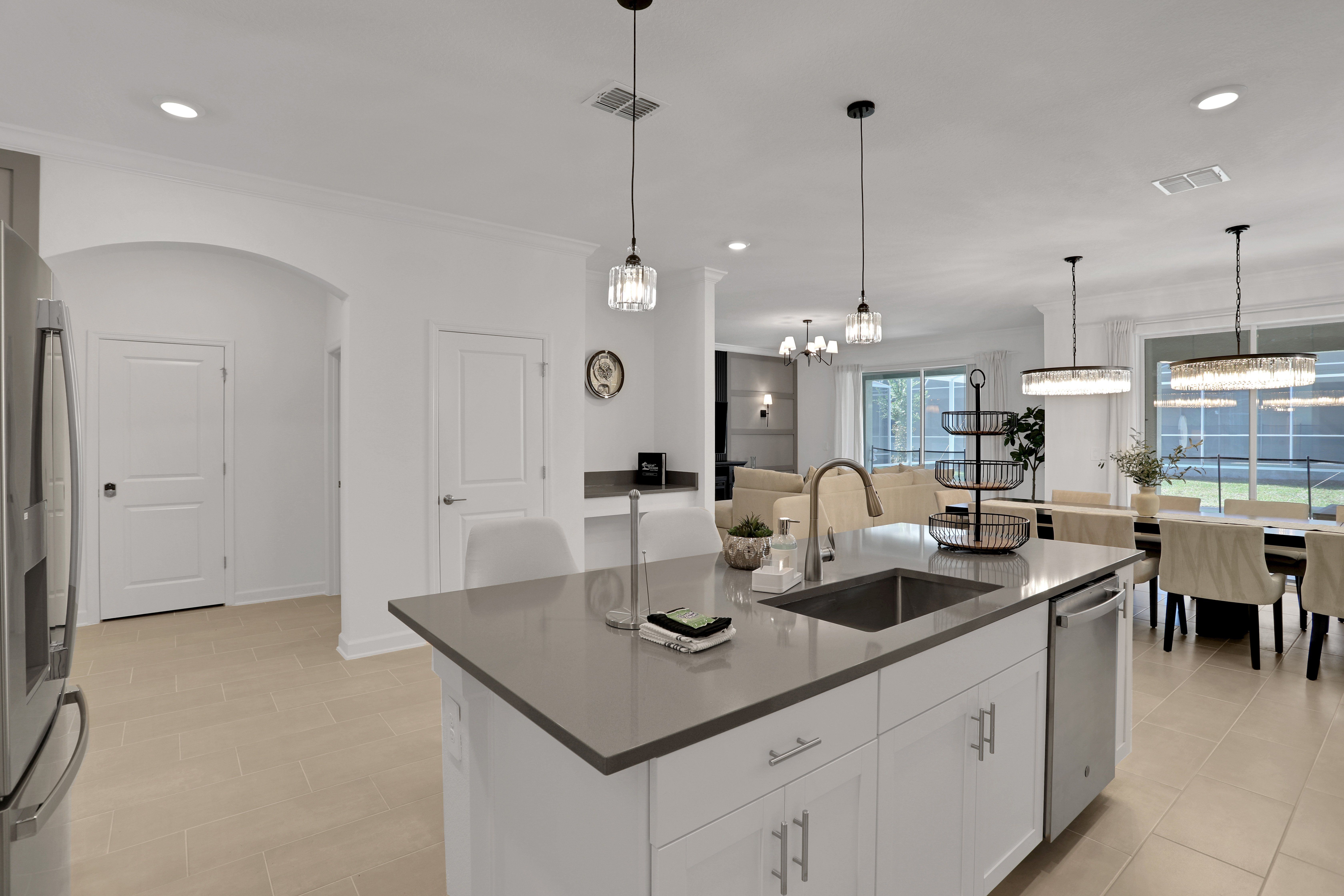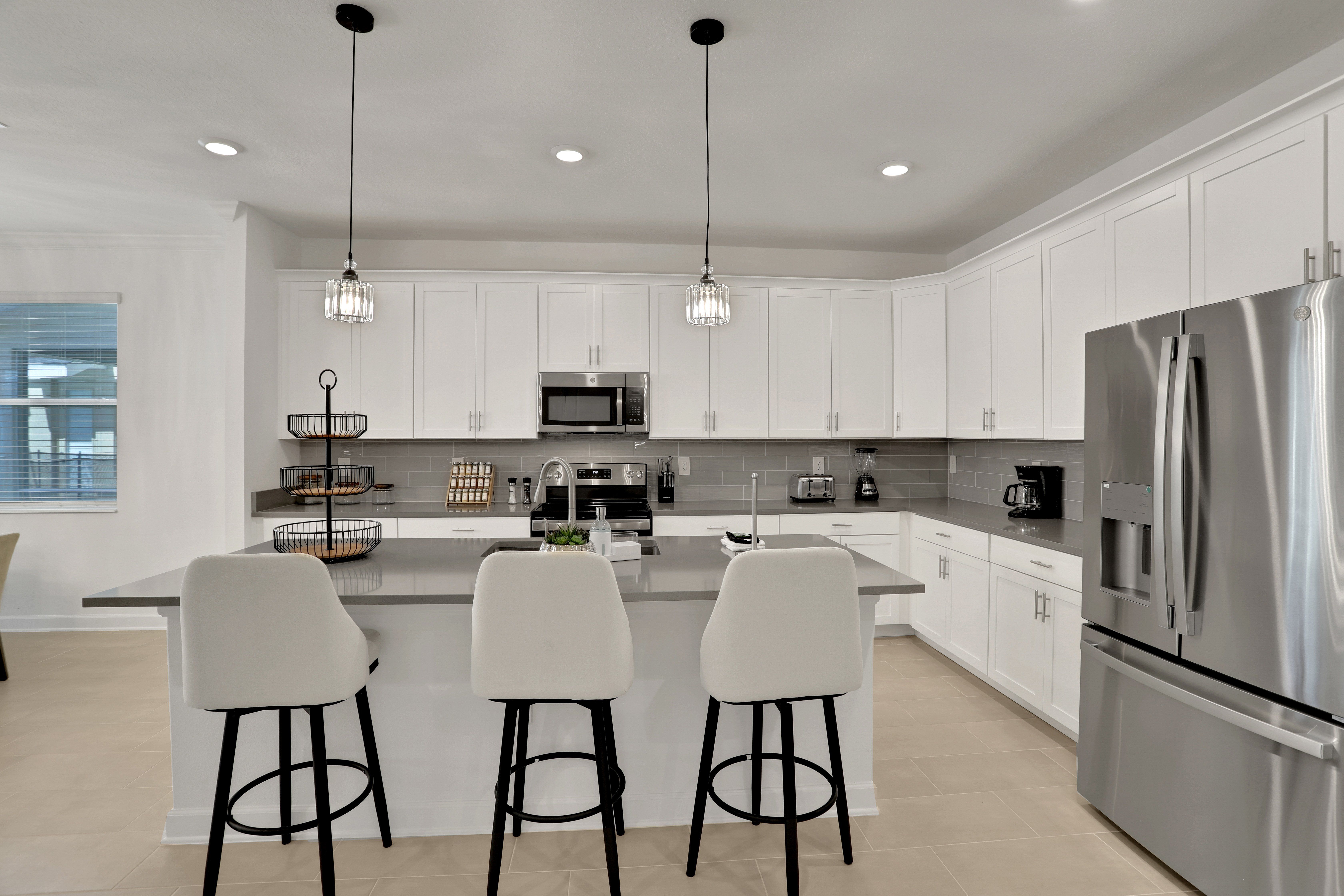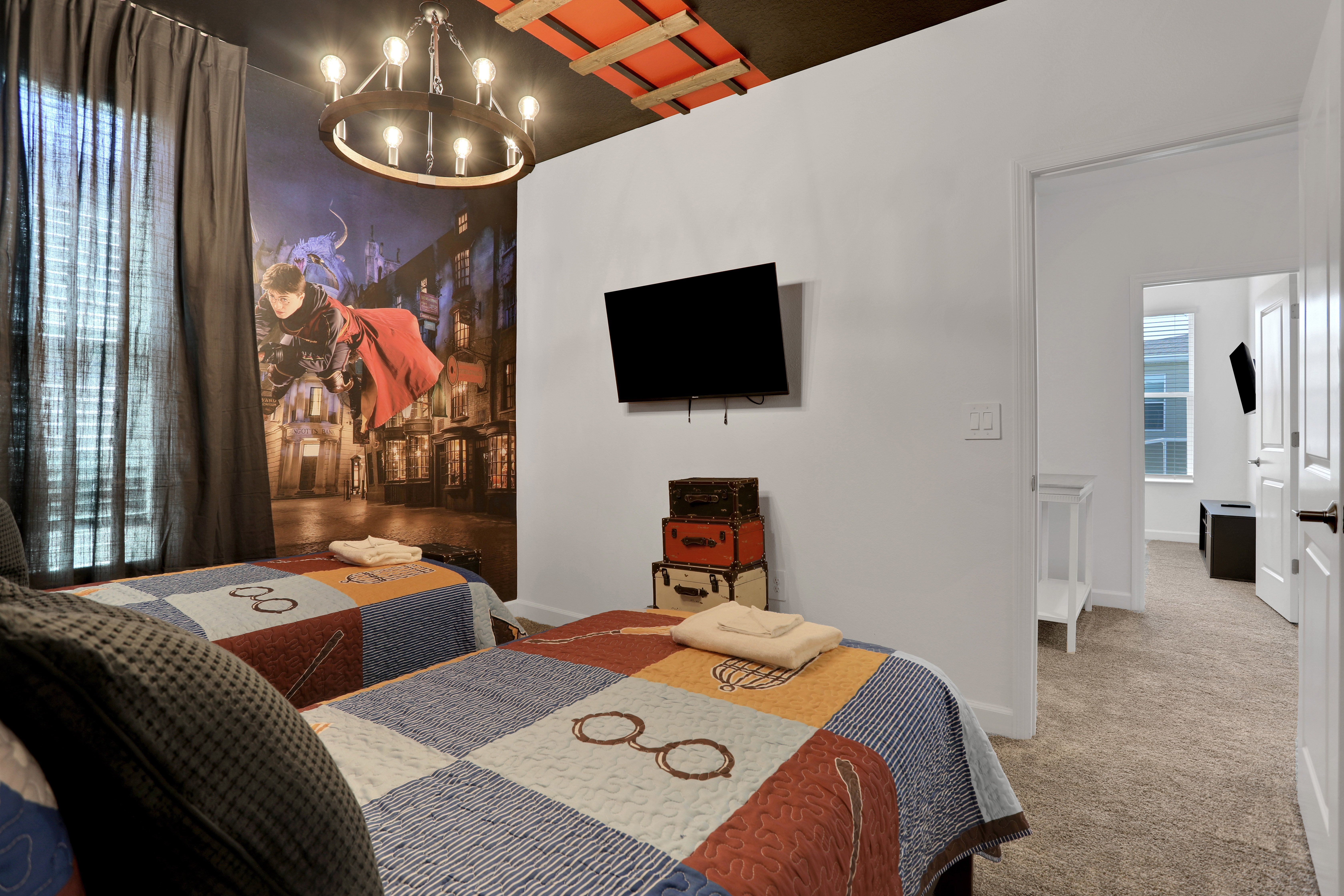 This Orlando home has been designed with both entertainment and relaxation in mind. Boasting a screened-in private pool, hot tub, and open-plan TV lounge, there’s plenty to keep you busy here. The covered lanai is perfect for alfresco dinners and when it’s time for bed, kids will love the character-themed bedrooms. Located in a resort community, you’ll also have access to the on-site water park, golf course, and clubhouse. And if you’re visiting Florida for the theme parks, Walt Disney World is just a twenty-minute drive away, and Universal Studios can be reached in forty minutes.
