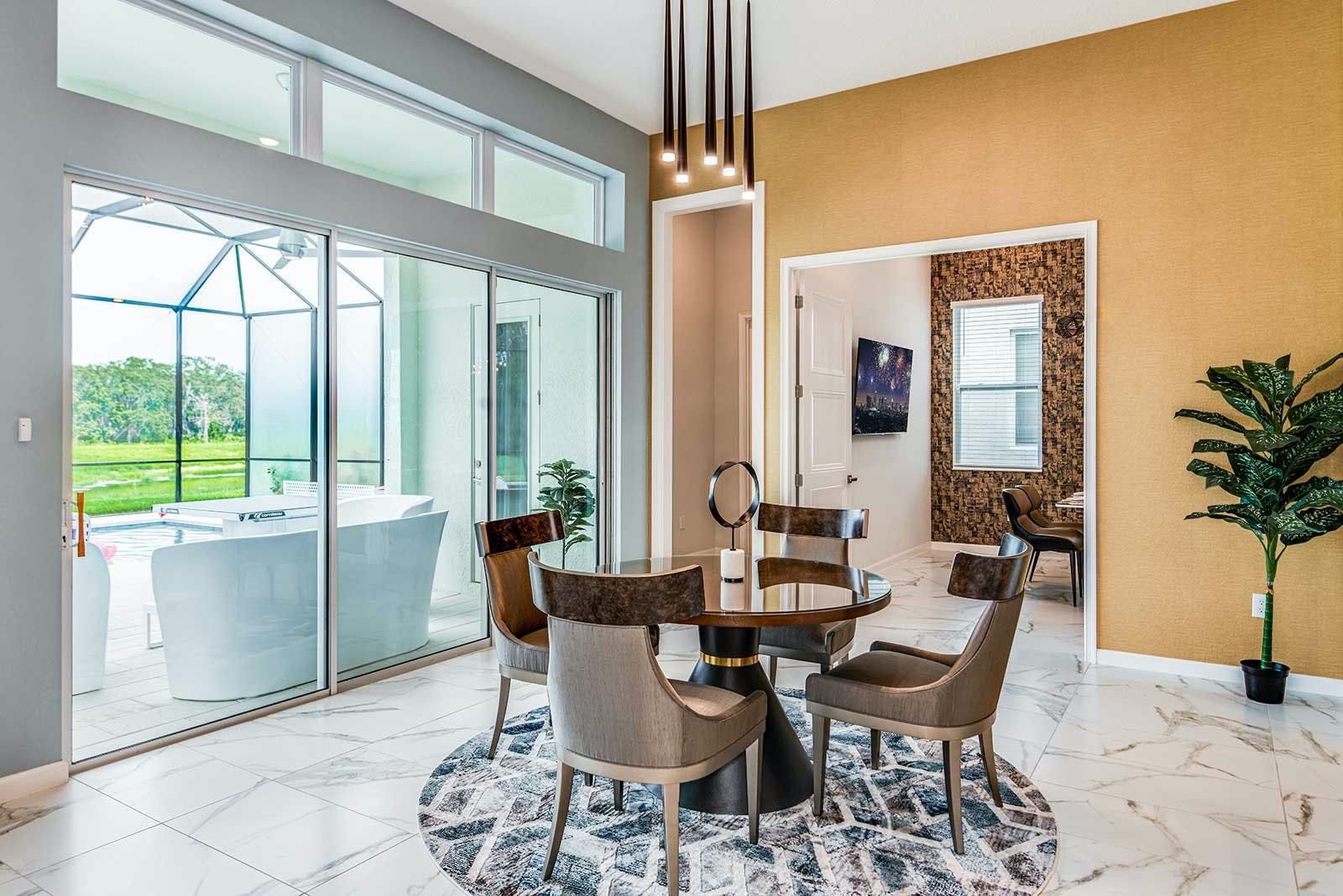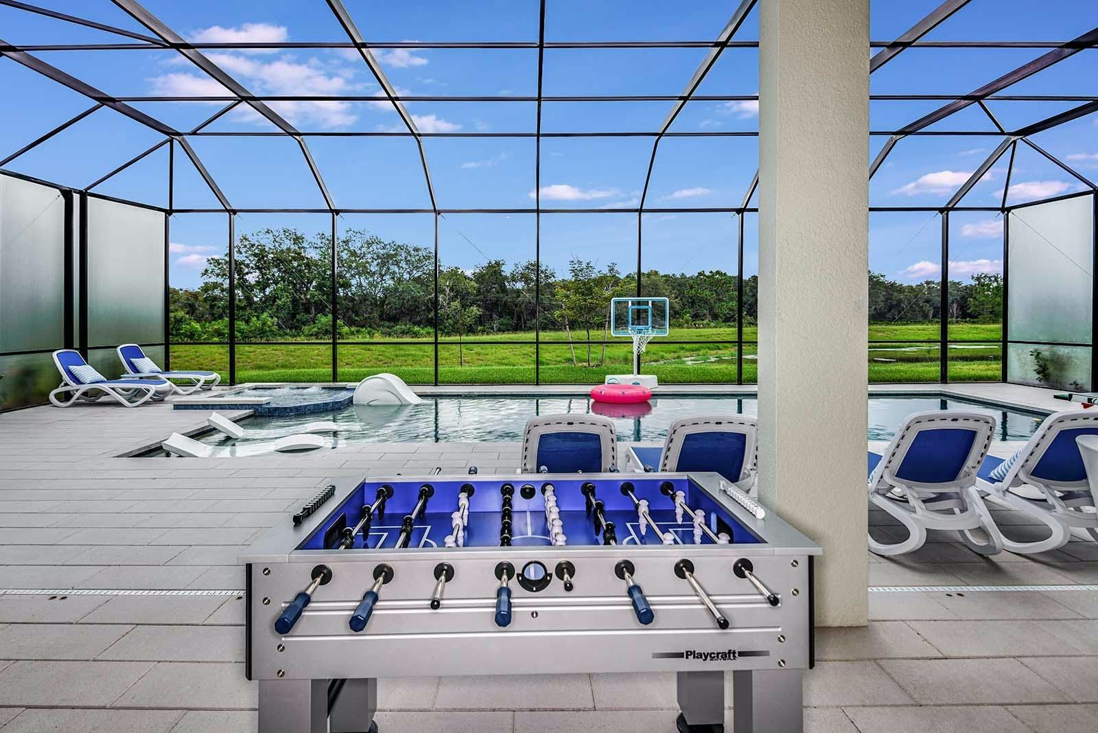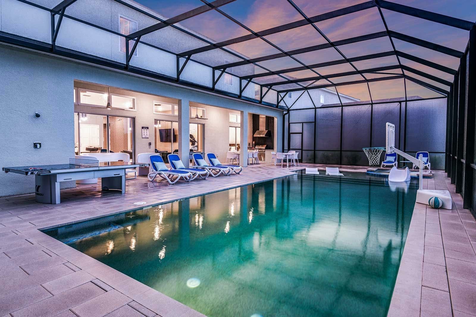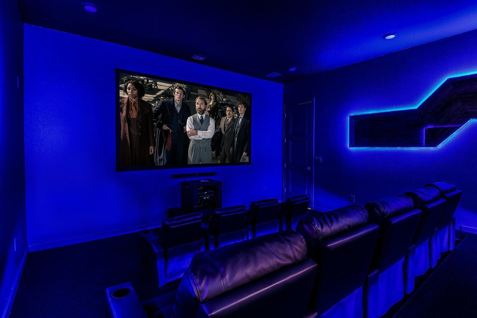 With a private pool, arcade room and movie theatre, this home sets the stage for a fun-filled stay in Florida. You can enjoy long soaks in the spa and there’s an outdoor kitchen for magical evening meals. Inside, excursive enthusiasts will appreciate the home gym and kids will love the themed bedrooms. There’s also a communal pool, a fitness centre and a restaurant in the resort and you’ll find everything you could need within easy reach. From here, it’s just a short drive to Disney World, Universal Studios and Sea World.