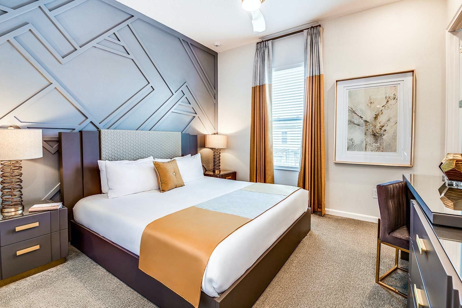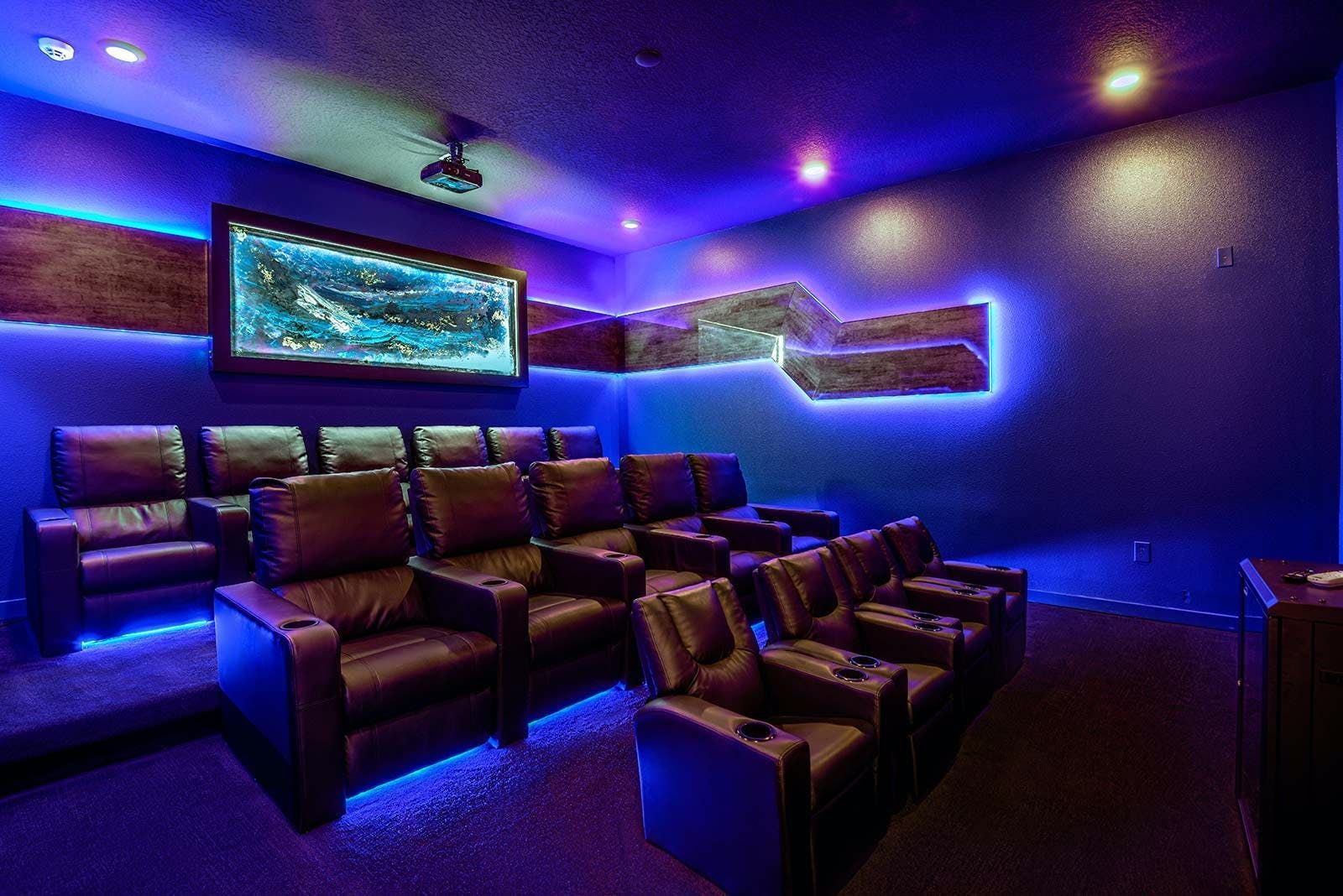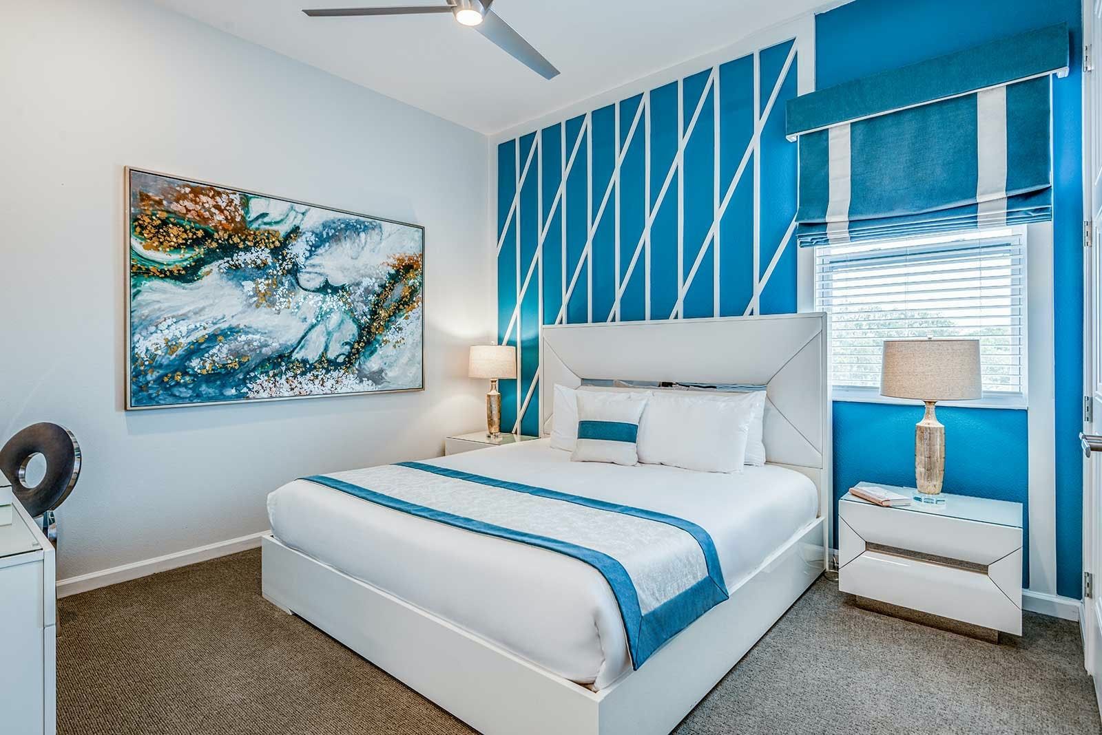 With a private pool, arcade room and movie theatre, this home sets the stage for a fun-filled stay in Florida. You can enjoy long soaks in the spa and there’s an outdoor kitchen for magical evening meals. Inside, excursive enthusiasts will appreciate the home gym and kids will love the themed bedrooms. There’s also a communal pool, a fitness centre and a restaurant in the resort and you’ll find everything you could need within easy reach. From here, it’s just a short drive to Disney World, Universal Studios and Sea World.