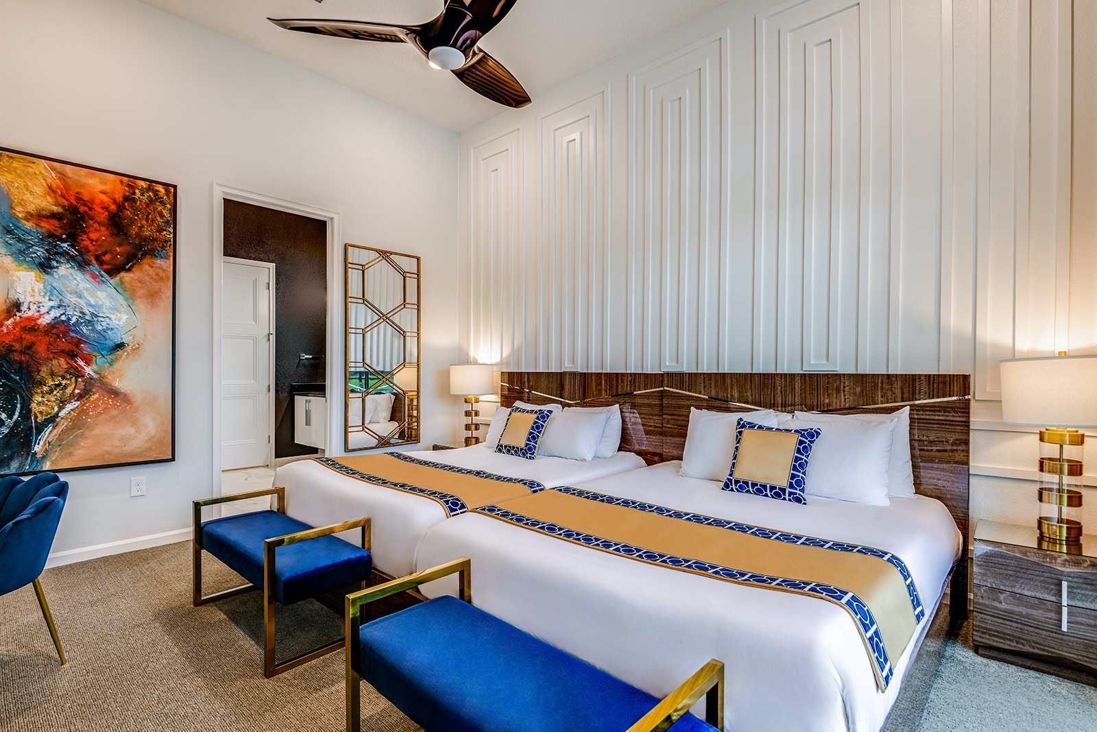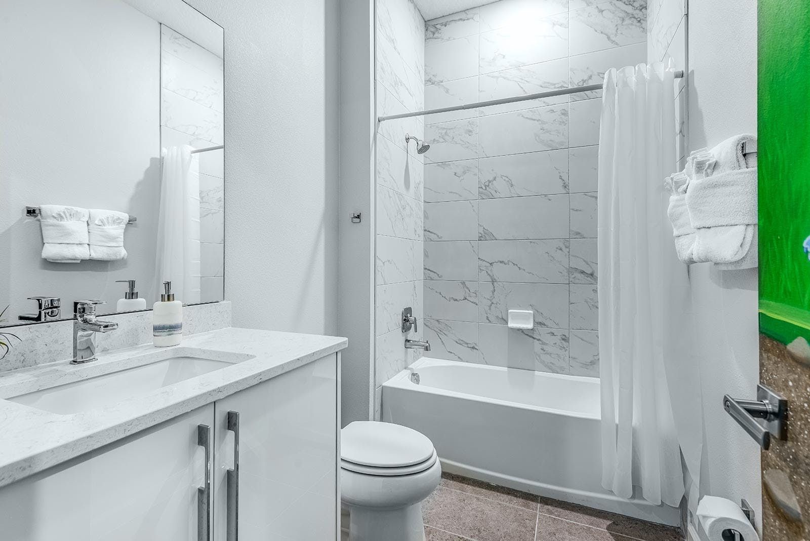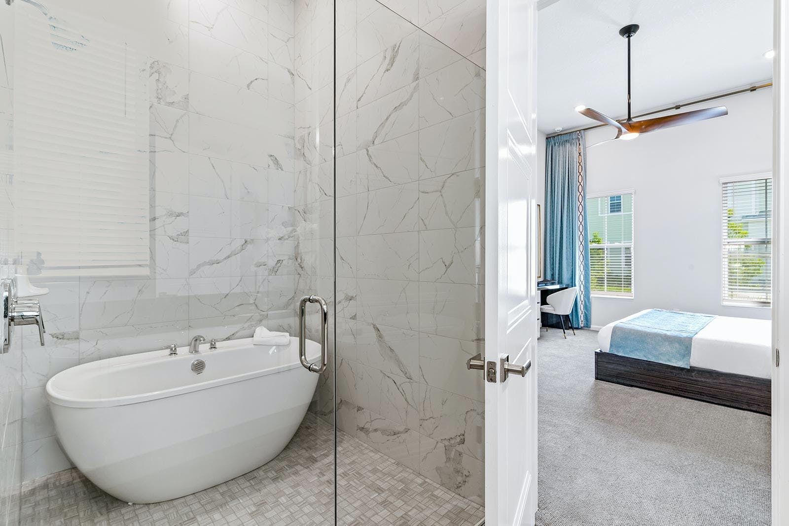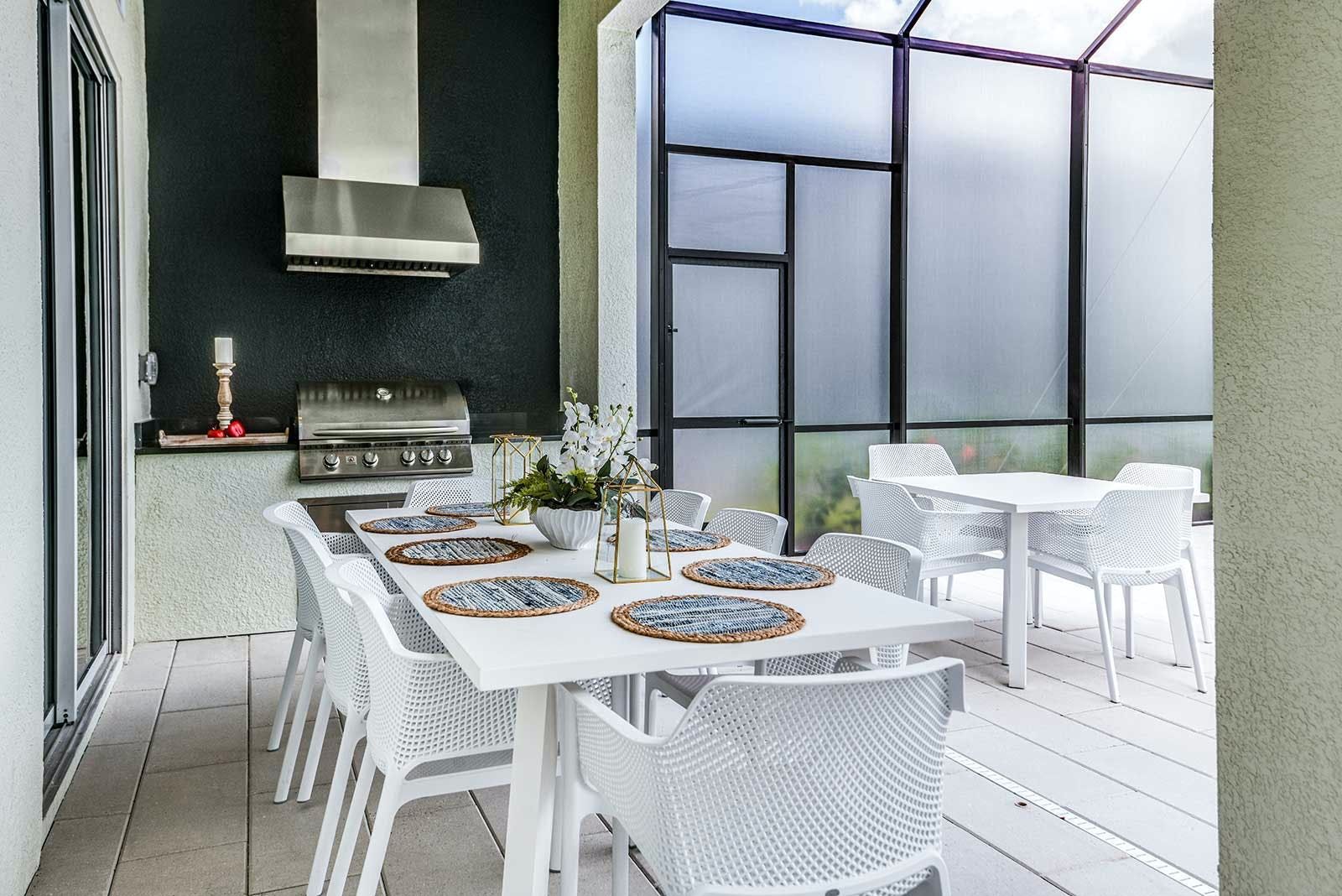 With a private pool, arcade room and movie theatre, this home sets the stage for a fun-filled stay in Florida. You can enjoy long soaks in the spa and there’s an outdoor kitchen for magical evening meals. Inside, excursive enthusiasts will appreciate the home gym and kids will love the themed bedrooms. There’s also a communal pool, a fitness centre and a restaurant in the resort and you’ll find everything you could need within easy reach. From here, it’s just a short drive to Disney World, Universal Studios and Sea World.
