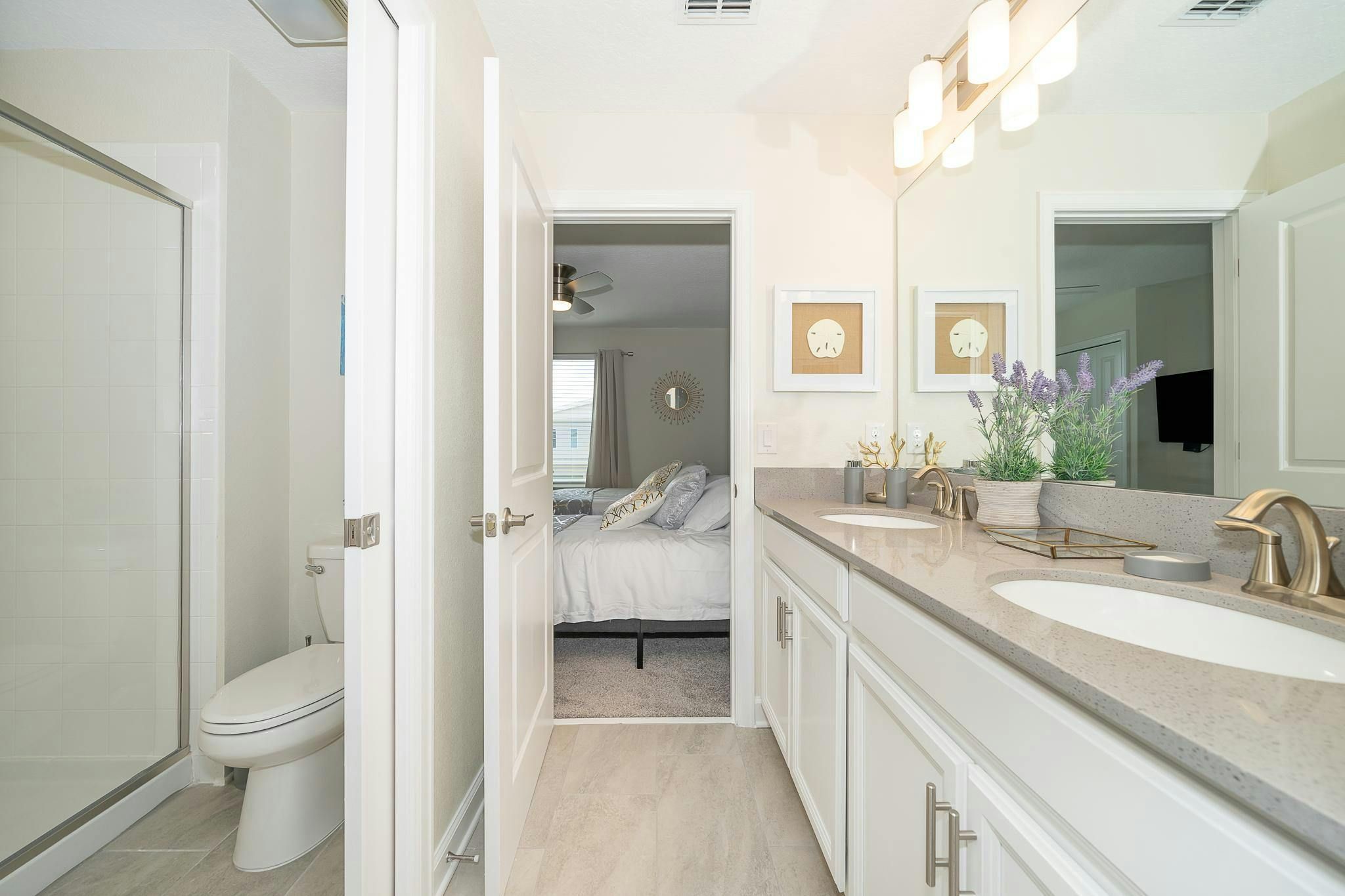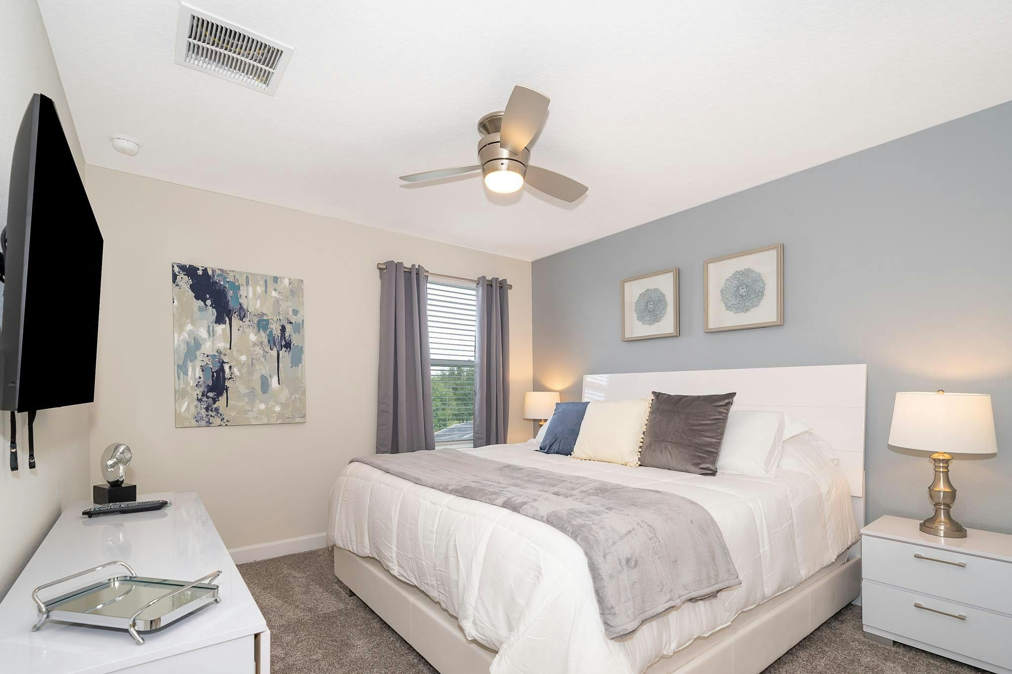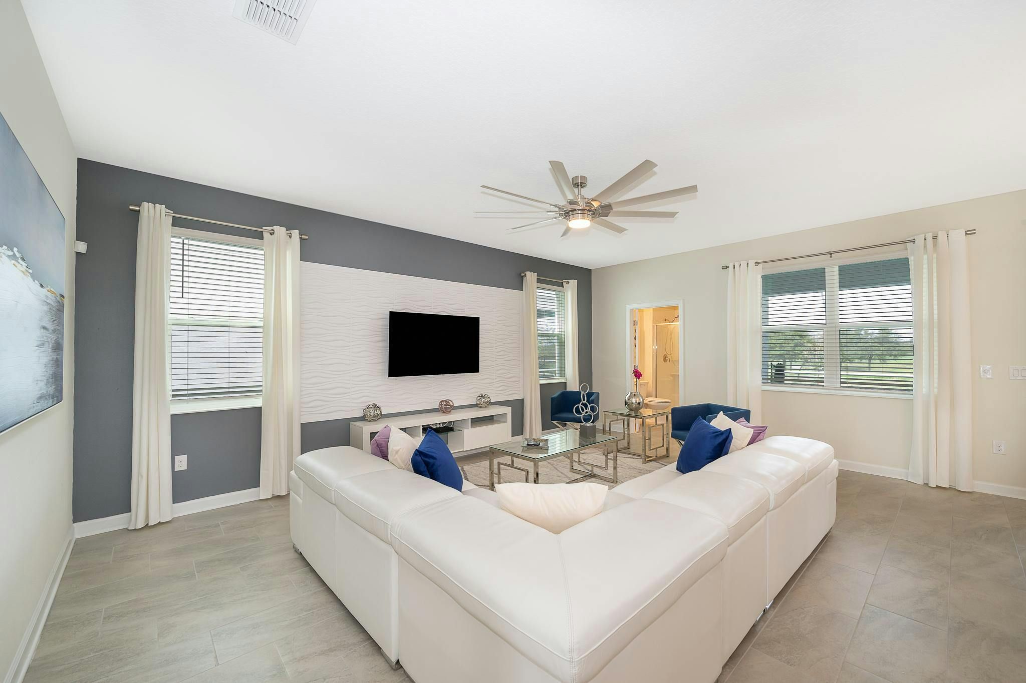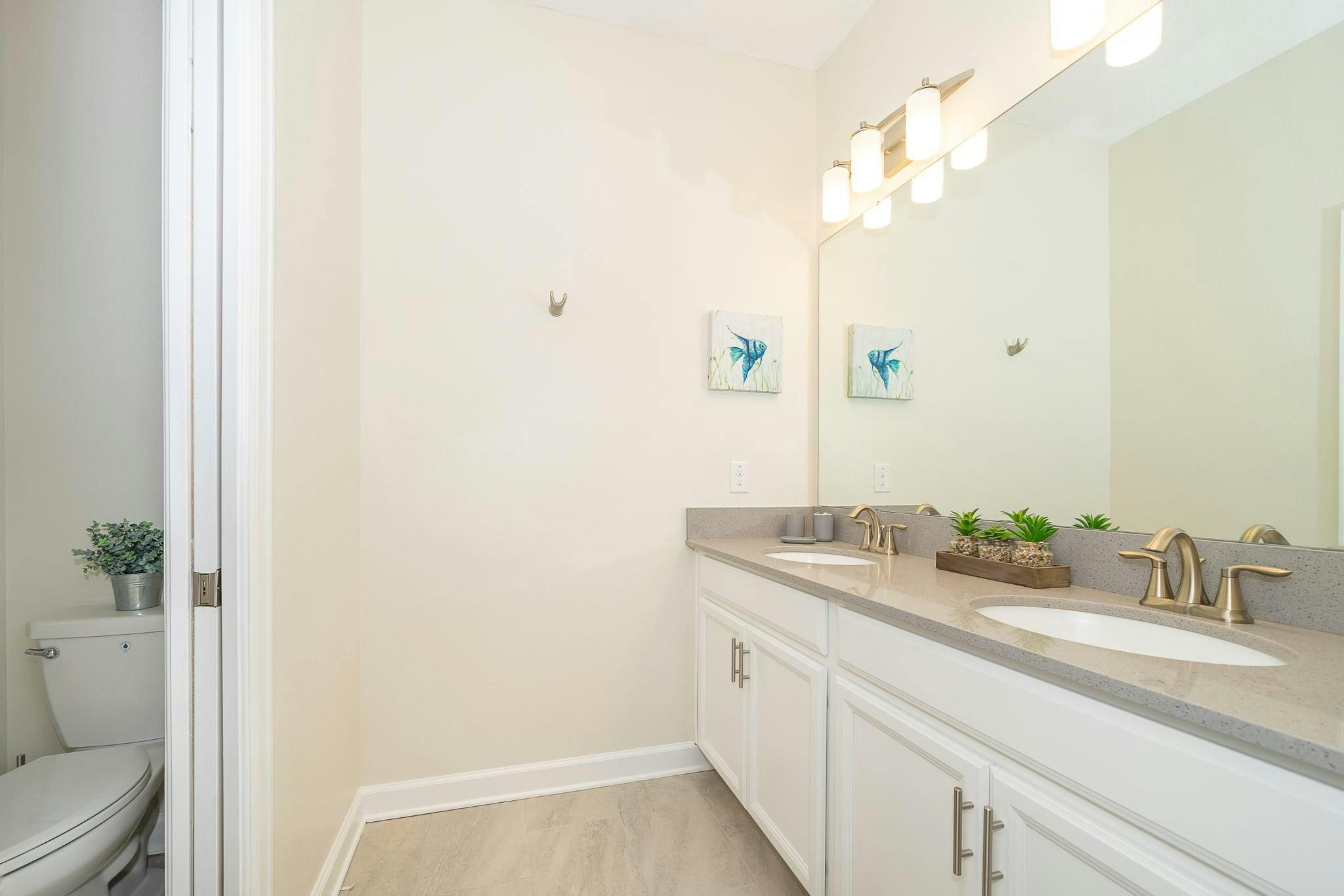 This luxurious new single-family home boasts six bedrooms, six bathrooms, and a game room complete with air hockey, pool table, and ping pong. The first floor features one suite while the second floor has two suites and a spacious loft. Guests can enjoy a fully-equipped kitchen, screened private pool and spa, and private parking. The home is newly furnished and decorated with internet and cable included. Located near Disney, restaurants, and shopping centers, guests will find plenty of activities to keep them entertained. A recently opened clubhouse resort offers additional amenities such as two pools (including a lazy river), restaurant, gym, and business center.