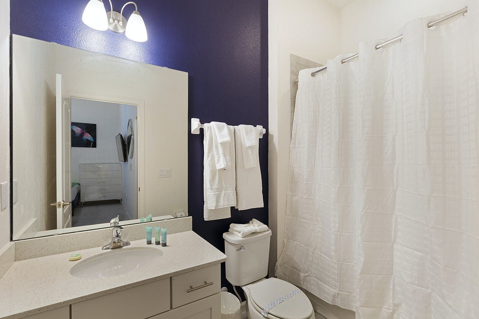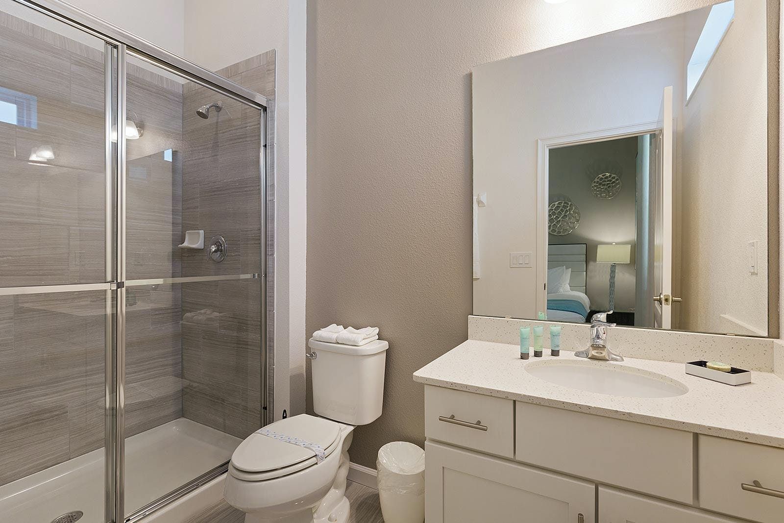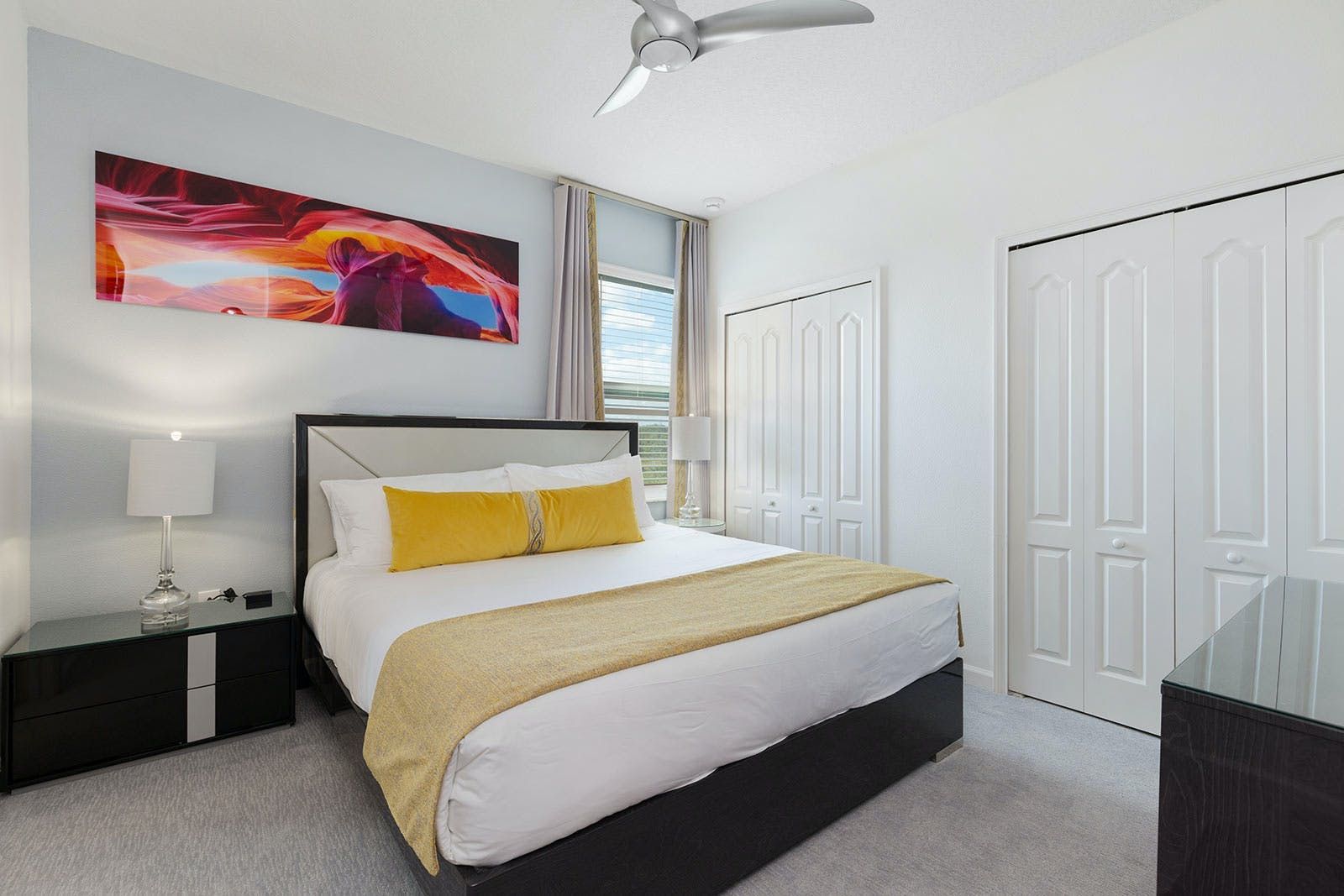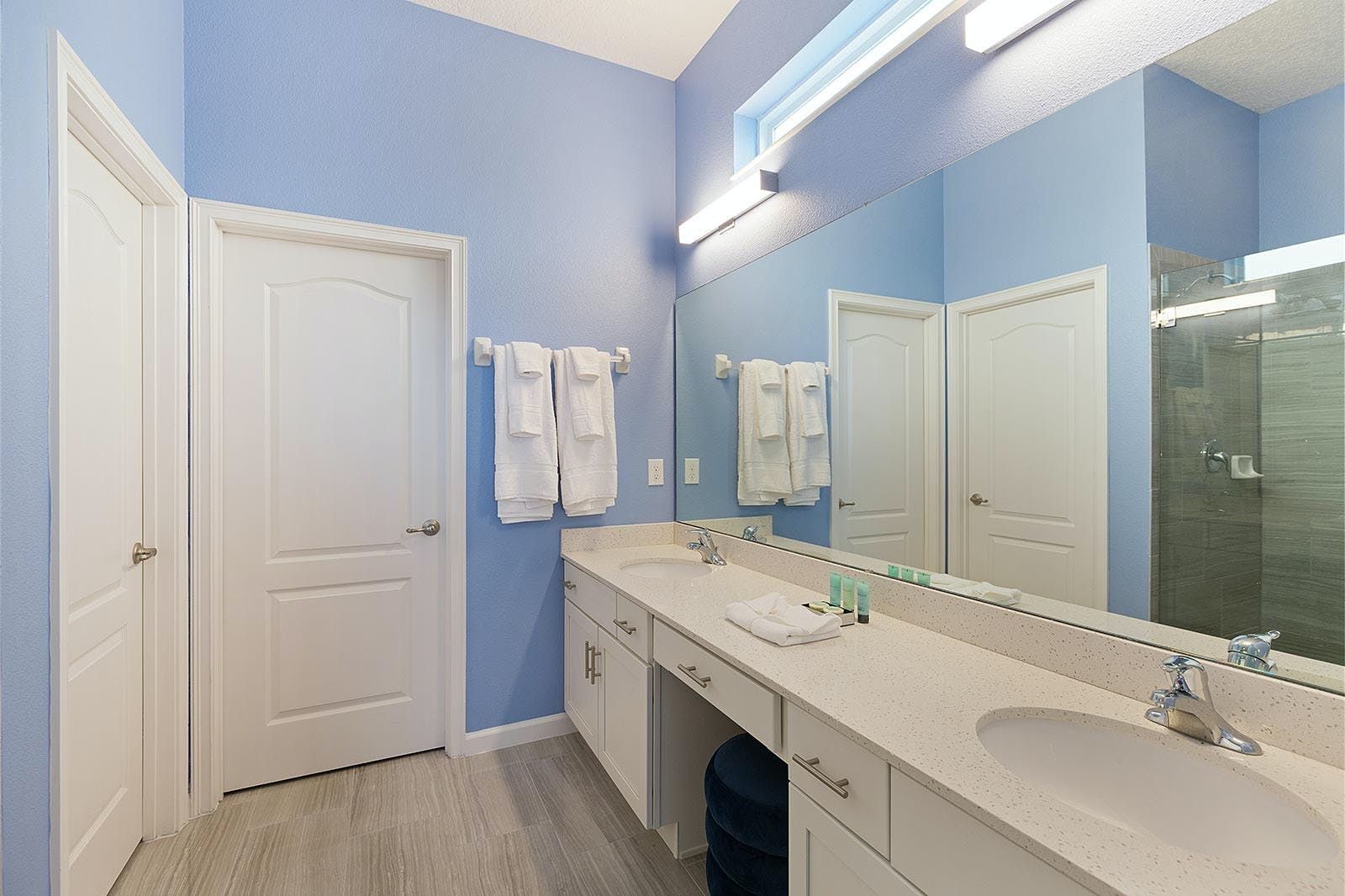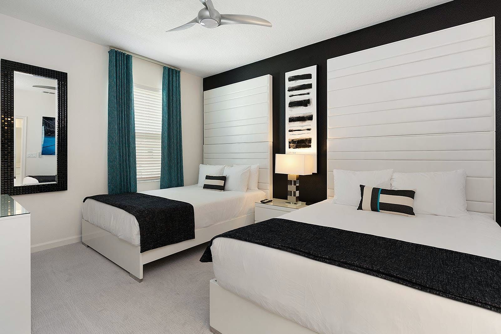 This Orlando villa is the perfect family vacation home, with plenty of entertainment options for kids and adults alike. The themed bedrooms are a hit with the little ones, including a toy room and basketball-themed bedroom complete with over-the-top bunk beds. The arcade is fully decked out with classic games like Pac-Man, and the home theater offers a cozy space for movie nights. Outside, the private screened-in pool and hot tub are surrounded by loungers and outdoor games like foosball and in-pool basketball. Inside, the kitchen is fully stocked with all necessary appliances and cookware, while the spacious dining area offers seating for 12. Bedrooms feature deluxe mattresses and hotel-quality linens, ensuring a restful night's sleep. a resort community offers additional amenities such as an oversized pool, lazy river, water slide, tennis courts, fitness center, and clubhouse. Conveniently located just miles from Disney and other popular attractions, this villa promises comfort and convenience for an unforgettable vacation experience.