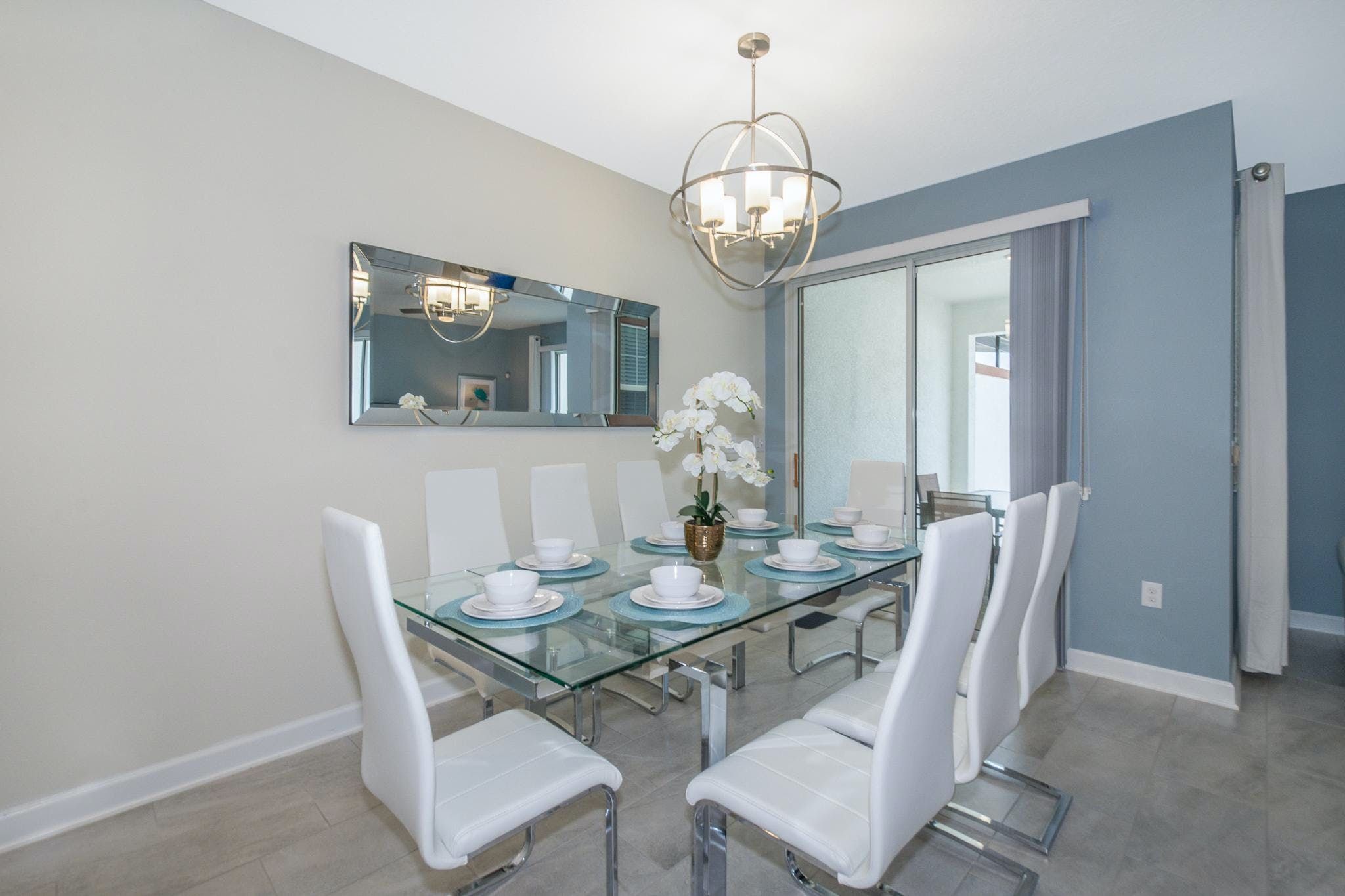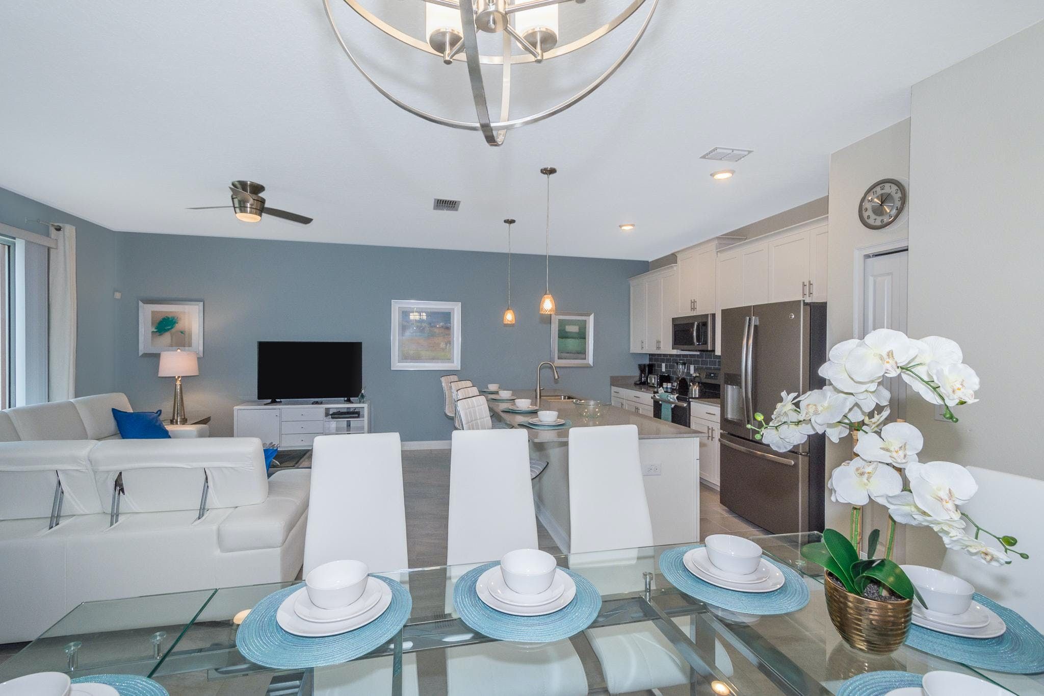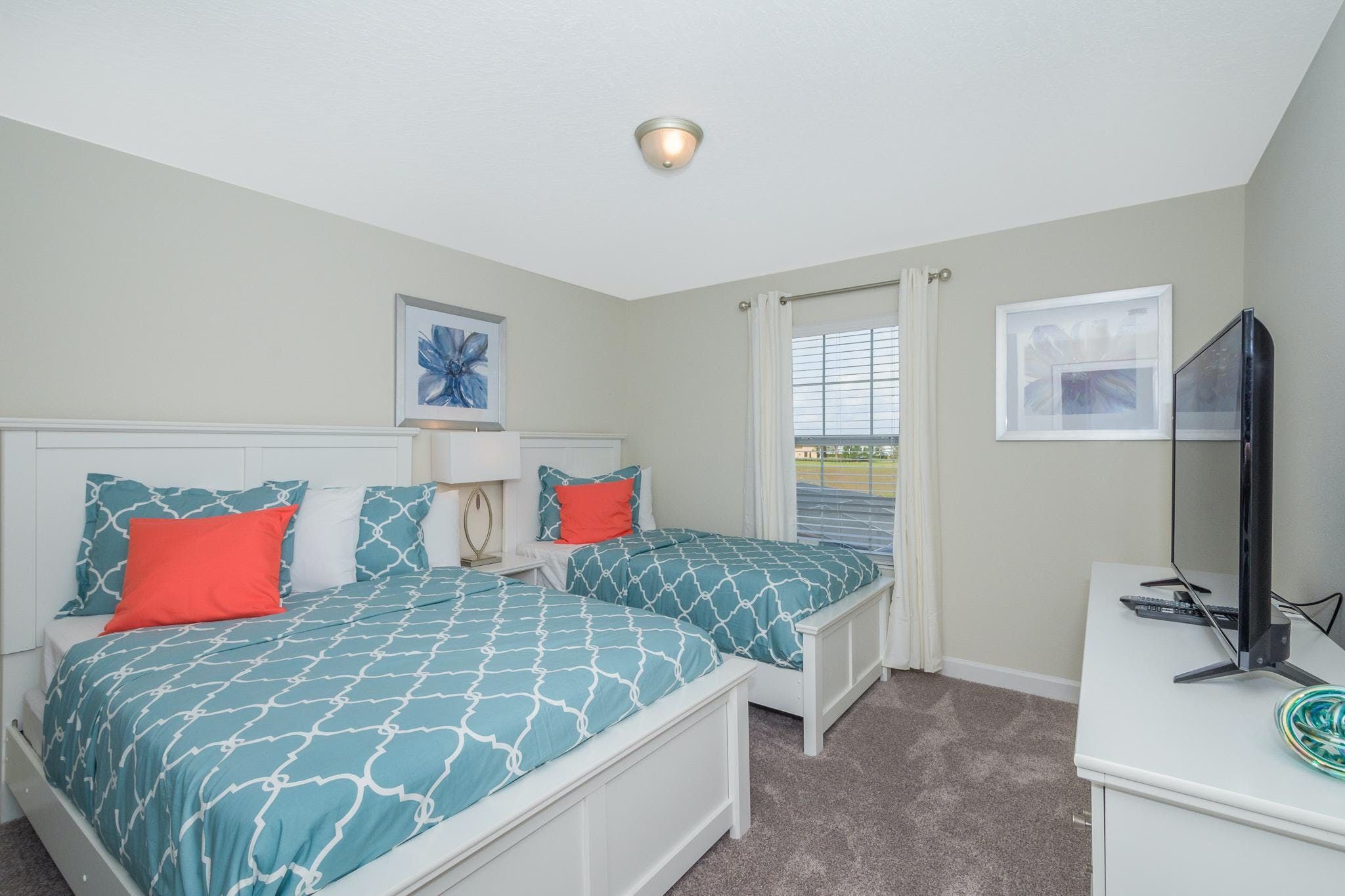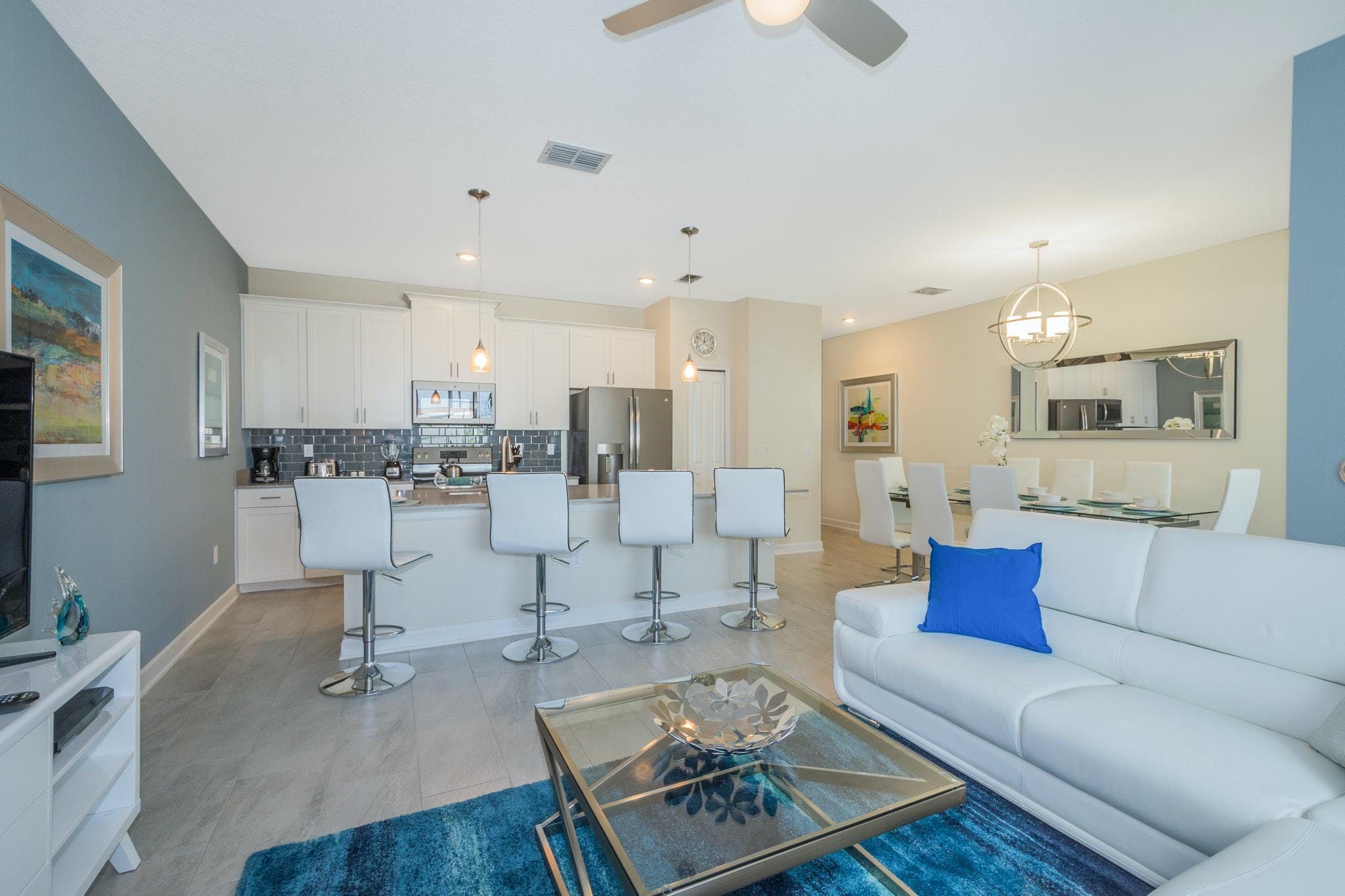 This stunning four-bedroom, three-bathroom vacation rental is ideal for anyone looking for a luxurious getaway. Located in the beautiful Champions Gate Resort, this property boasts a private pool and water views. The bedrooms consist of two king-sized rooms and two bedrooms with full- and twin-sized beds each. The community is surrounded by golf courses and tennis courts, perfect for those who enjoy outdoor activities. The resort's clubhouse offers an array of top-notch amenities including two pools, one with a lazy river, a restaurant, gym, business center, game room, cinema, and much more. With so many fantastic features on offer, this vacation rental is sure to delight guests of all ages.