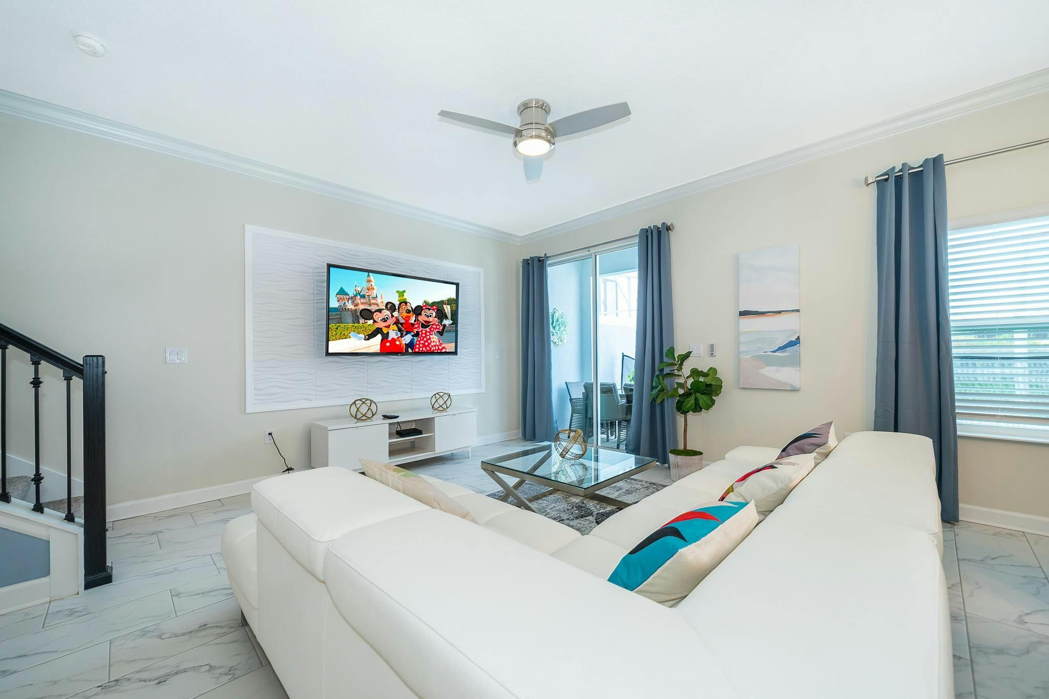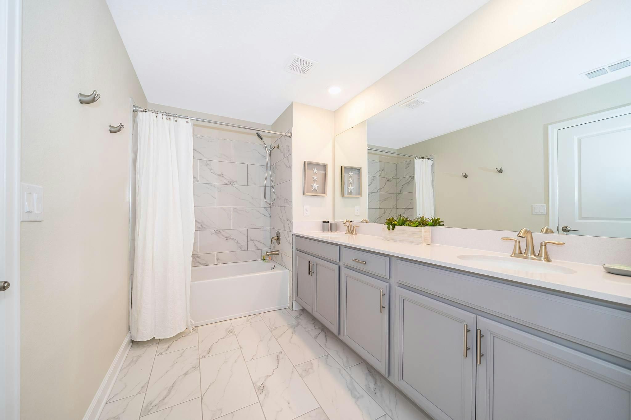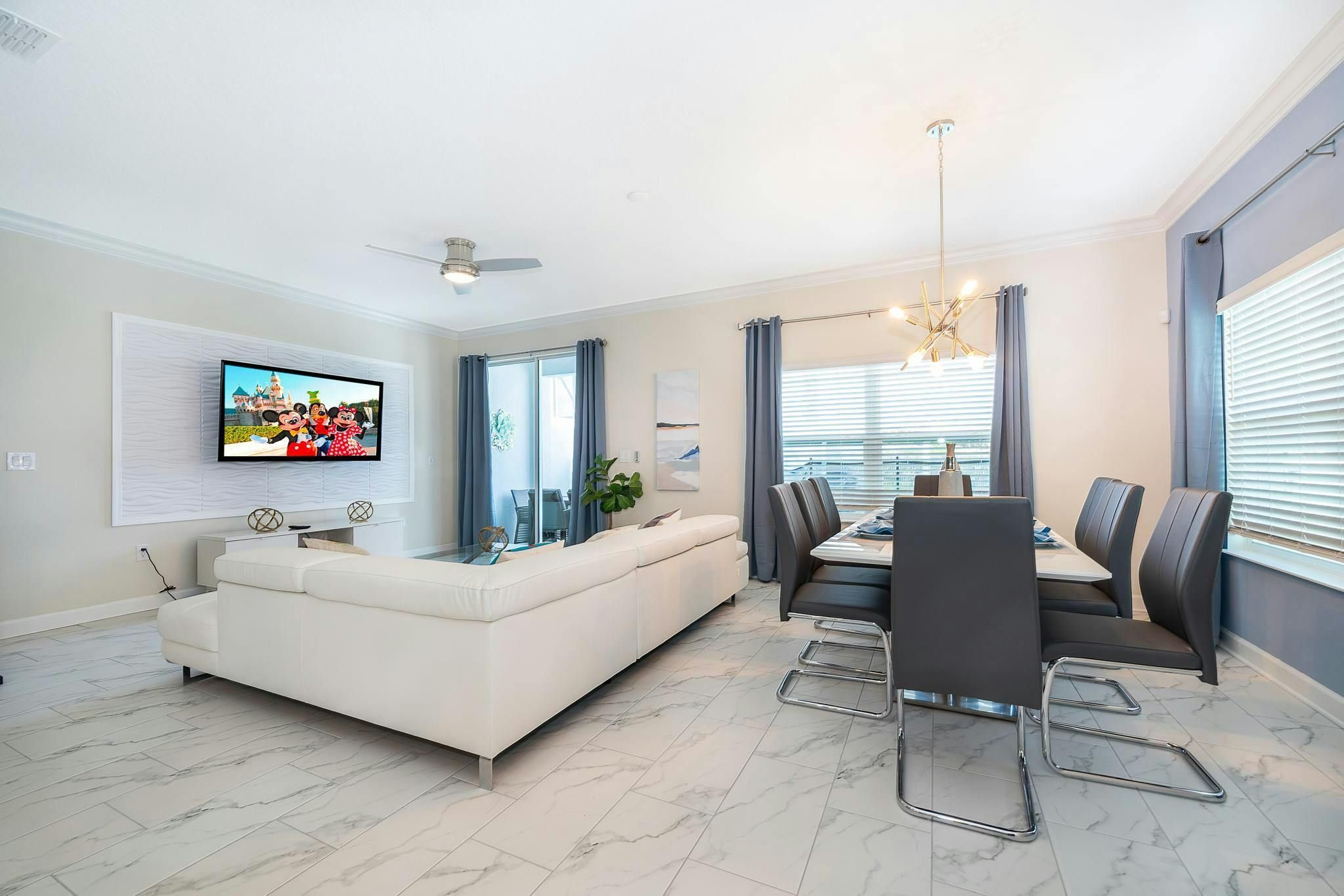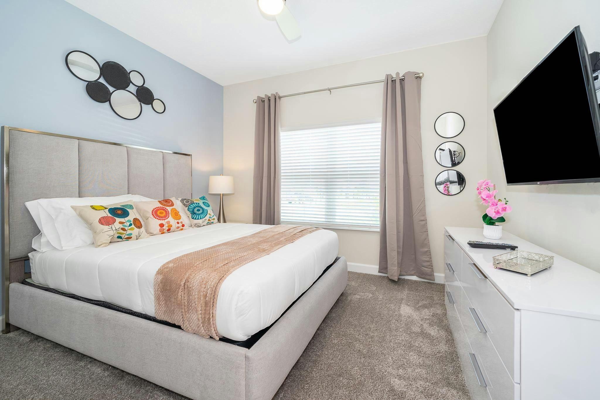 This brand new 5 bedroom, 4 bathroom vacation rental with a private pool is located in the beautiful Champions Gate Resort. The bedrooms offer comfortable sleeping arrangements with 2 located downstairs, including a queen bedroom and a bedroom with bunk beds and a twin trundle. Upstairs there are 2 king bedrooms and 1 bedroom with one full and 1 twin bed. Guests will have access to great amenities at the Clubhouse Resort including two pools, one of which features a lazy river, as well as tennis courts, a gym, business center, game room, cinema and more. The community is surrounded by golf courses making it an ideal destination for golf enthusiasts.