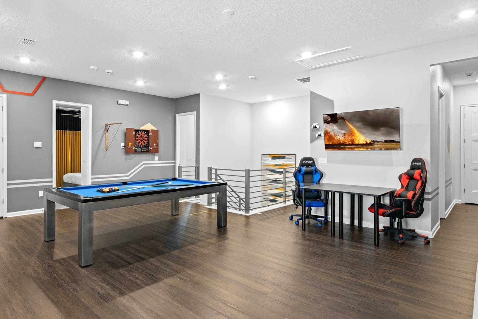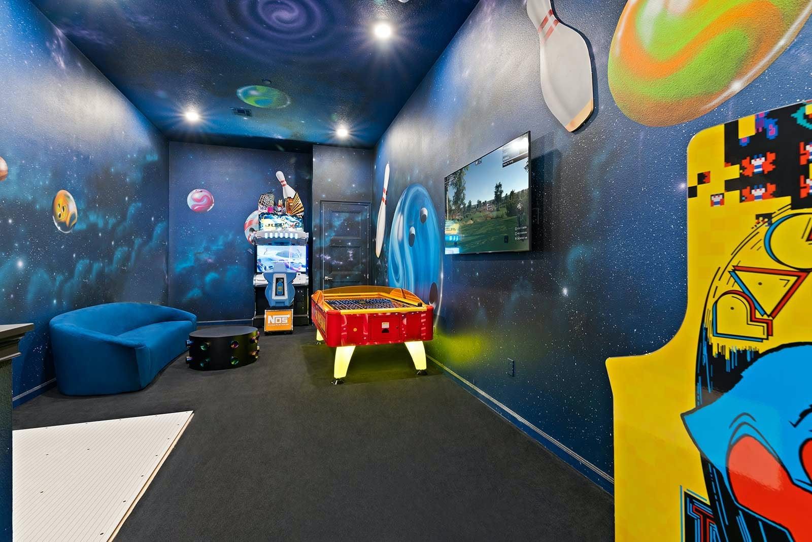 This lavish home can easily rival Orlando’s famed theme parks for excitement and awe. From the themed children’s rooms (complete with slides) to the private pool, home cinema, and bowling alley, this home has practically everything you could want in a vacation home (and some things you didn’t know you needed, like the private recording studio). While the kids are kept entertained in the games loft, adults can take a dip in the hot tub or head to the gym for a workout. If that wasn’t enough, you also have access to resort facilities, including swimming pools, fitness classes, and children’s entertainment. It’s just a thirty-minute drive to Disney World Resort – but with all of this on your doorstep, will you even have time?