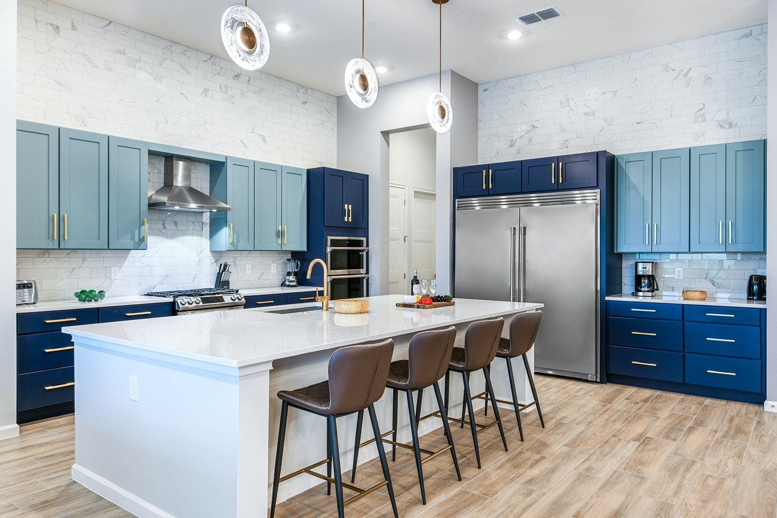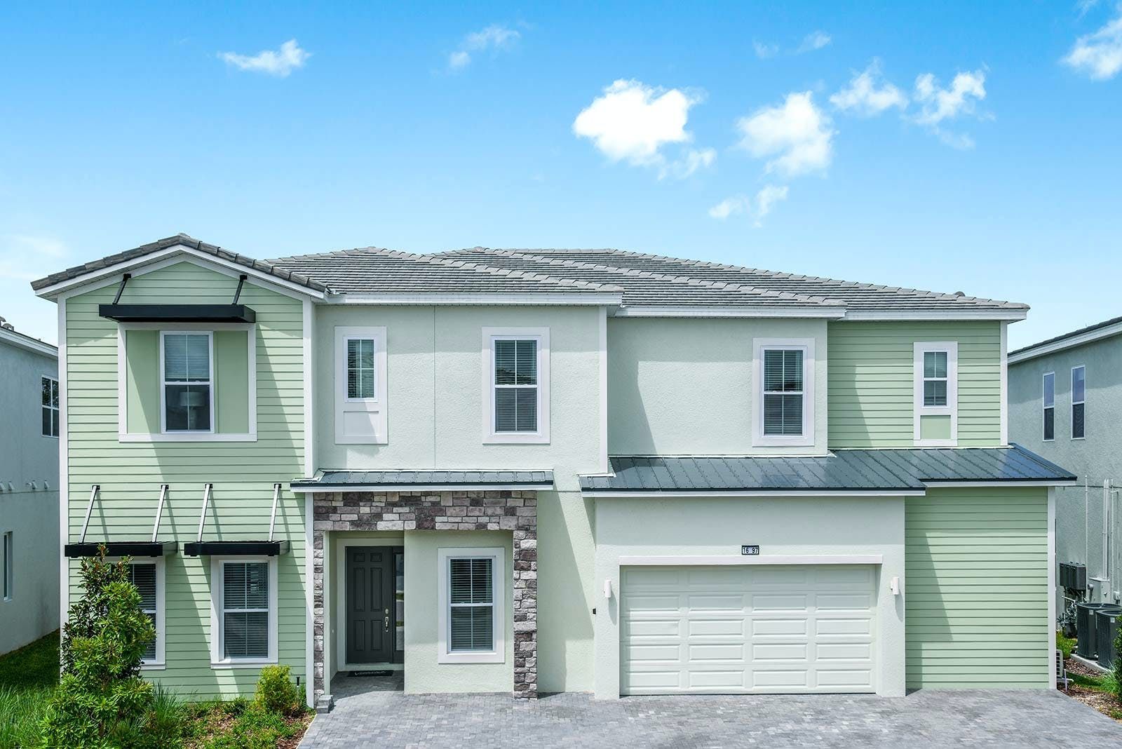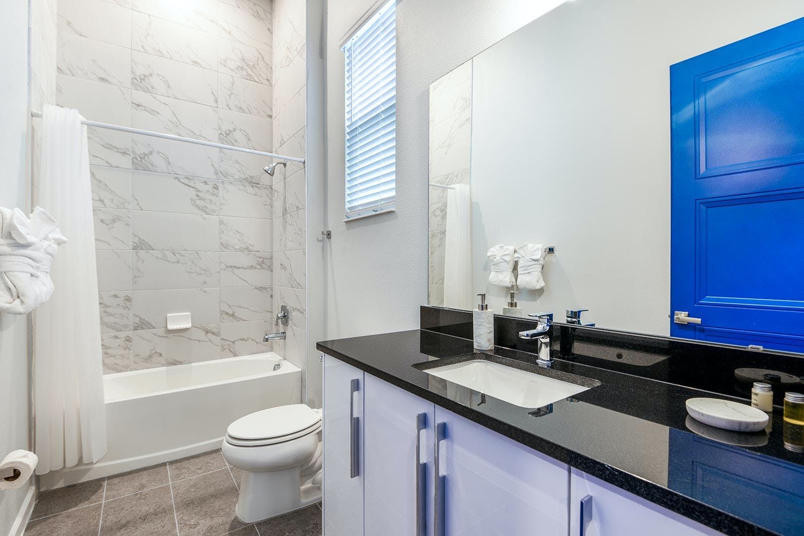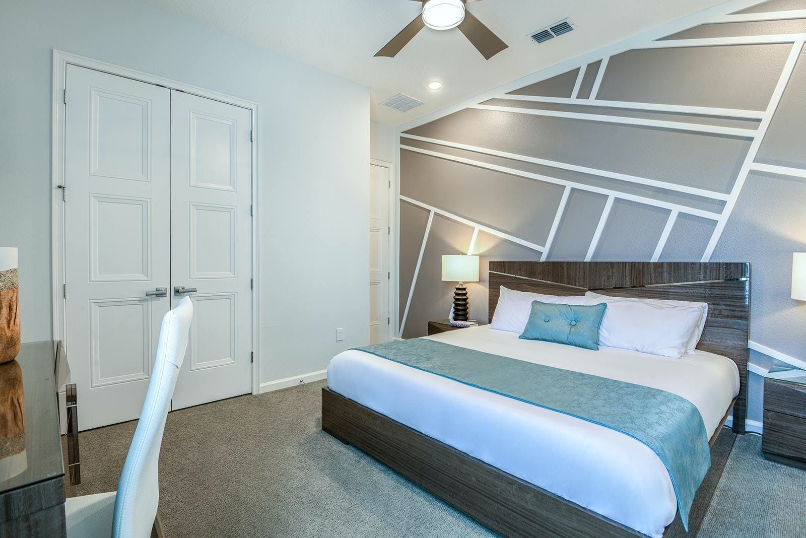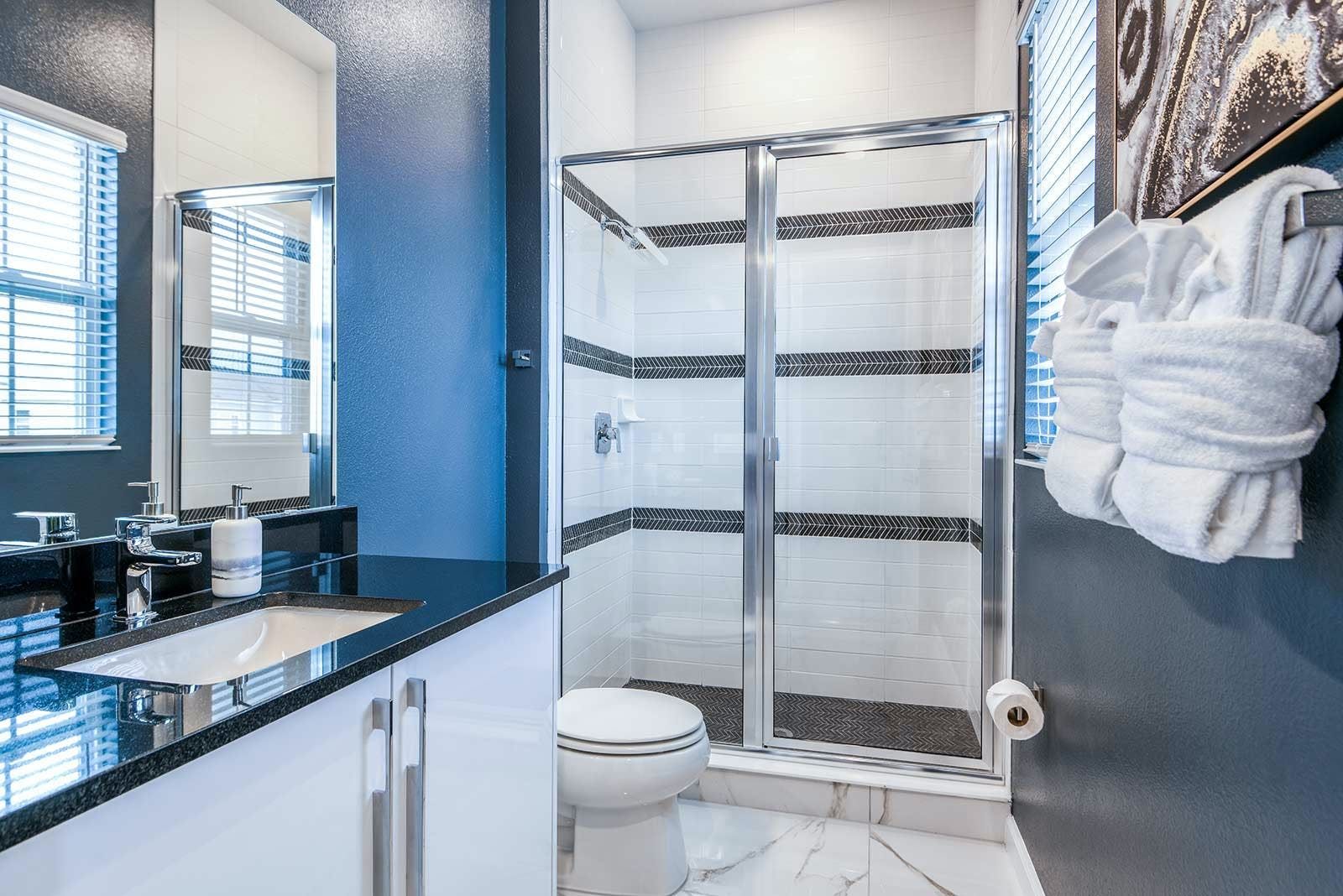 This is a luxurious 12-bedroom villa located in a resort in Orlando. The modern décor is evident throughout the house and guests can unwind in the great room, which features comfy sofas, chairs, and a big-screen TV. The fully equipped chef's kitchen has beautiful stone countertops, stainless steel appliances, custom deep-blue cabinetry, and gleaming oak floors. Sports-loving guests will be delighted to discover the garage that's been transformed into a sports simulator room and arcade room. Outside, guests can enjoy the colossal pool enclosed within fancy privacy glass, soak in the spillover spa or stretch out on a lounge chair. The house boasts a game loft with a pool table, dartboard, ring toss, and wall Scrabble. Guests can also relax in their private home theater or work out in their home gym. There are three amazing themed bedrooms for kids: Galaxy Room, Secret Planet Room and Undersea Adventure Room. Nine additional grownup bedrooms with en suite bathrooms are available on the first and second floors. The property is conveniently located near Disney Parks, Universal Parks, SeaWorld, World-Class Shopping & Dining and Groceries & Convenience Shops.