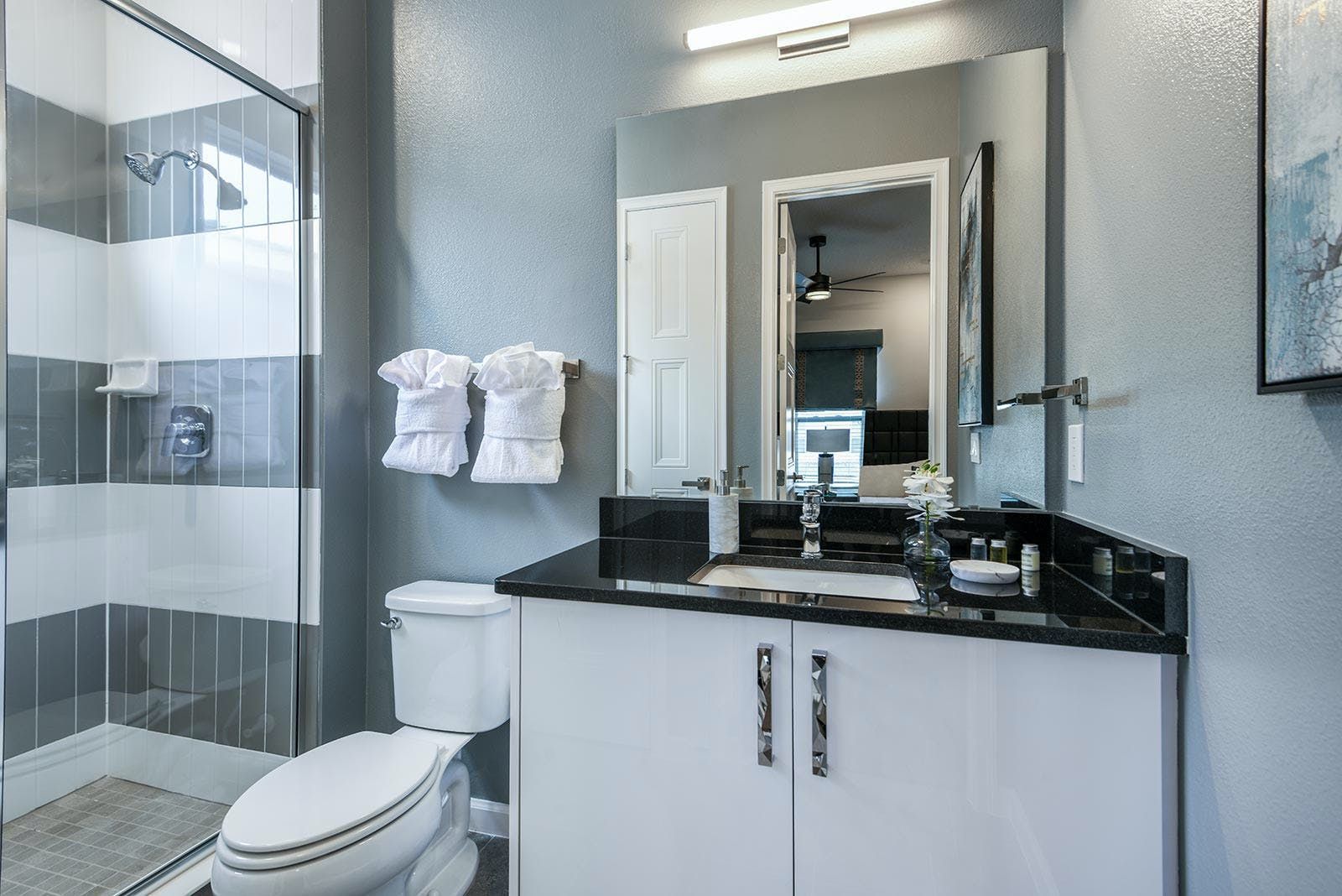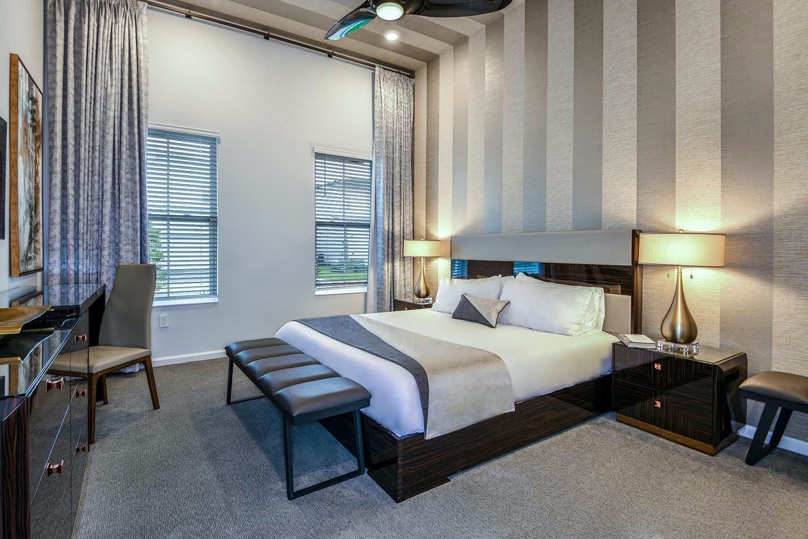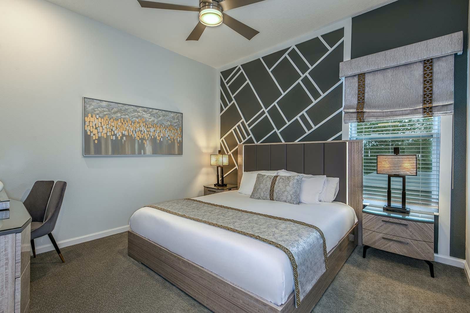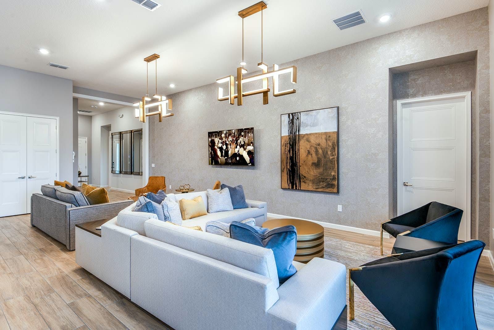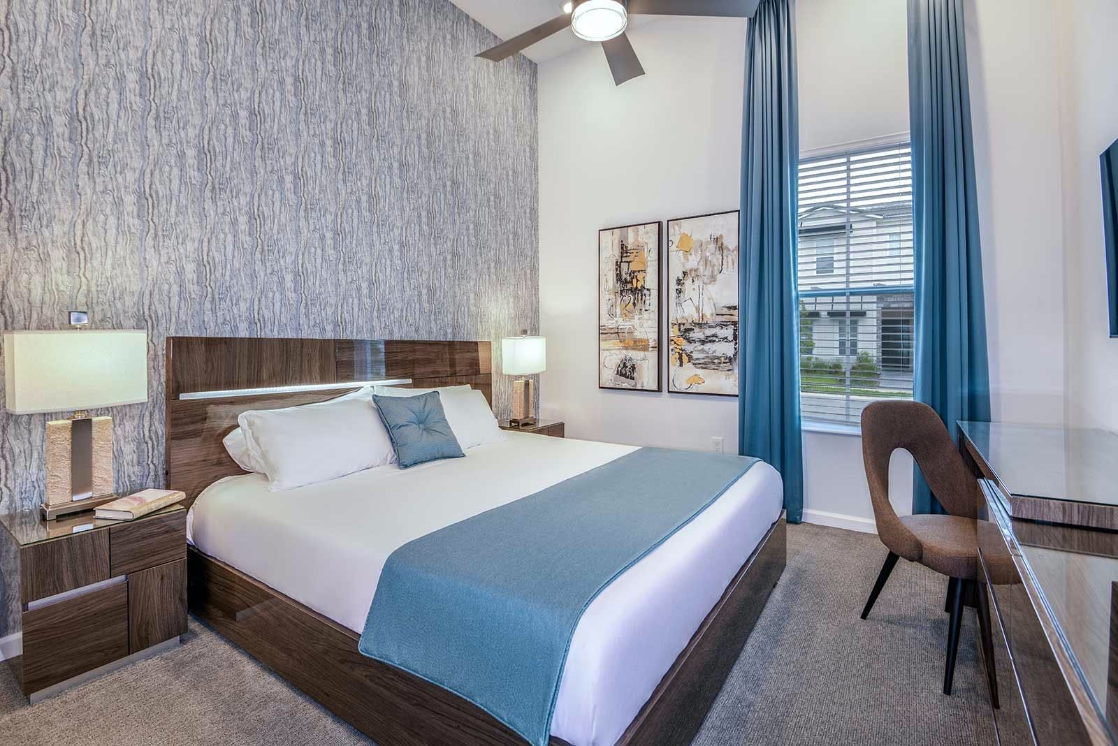 This is a luxurious 12-bedroom villa located in a resort in Orlando. The modern décor is evident throughout the house and guests can unwind in the great room, which features comfy sofas, chairs, and a big-screen TV. The fully equipped chef's kitchen has beautiful stone countertops, stainless steel appliances, custom deep-blue cabinetry, and gleaming oak floors. Sports-loving guests will be delighted to discover the garage that's been transformed into a sports simulator room and arcade room. Outside, guests can enjoy the colossal pool enclosed within fancy privacy glass, soak in the spillover spa or stretch out on a lounge chair. The house boasts a game loft with a pool table, dartboard, ring toss, and wall Scrabble. Guests can also relax in their private home theater or work out in their home gym. There are three amazing themed bedrooms for kids: Galaxy Room, Secret Planet Room and Undersea Adventure Room. Nine additional grownup bedrooms with en suite bathrooms are available on the first and second floors. The property is conveniently located near Disney Parks, Universal Parks, SeaWorld, World-Class Shopping & Dining and Groceries & Convenience Shops.