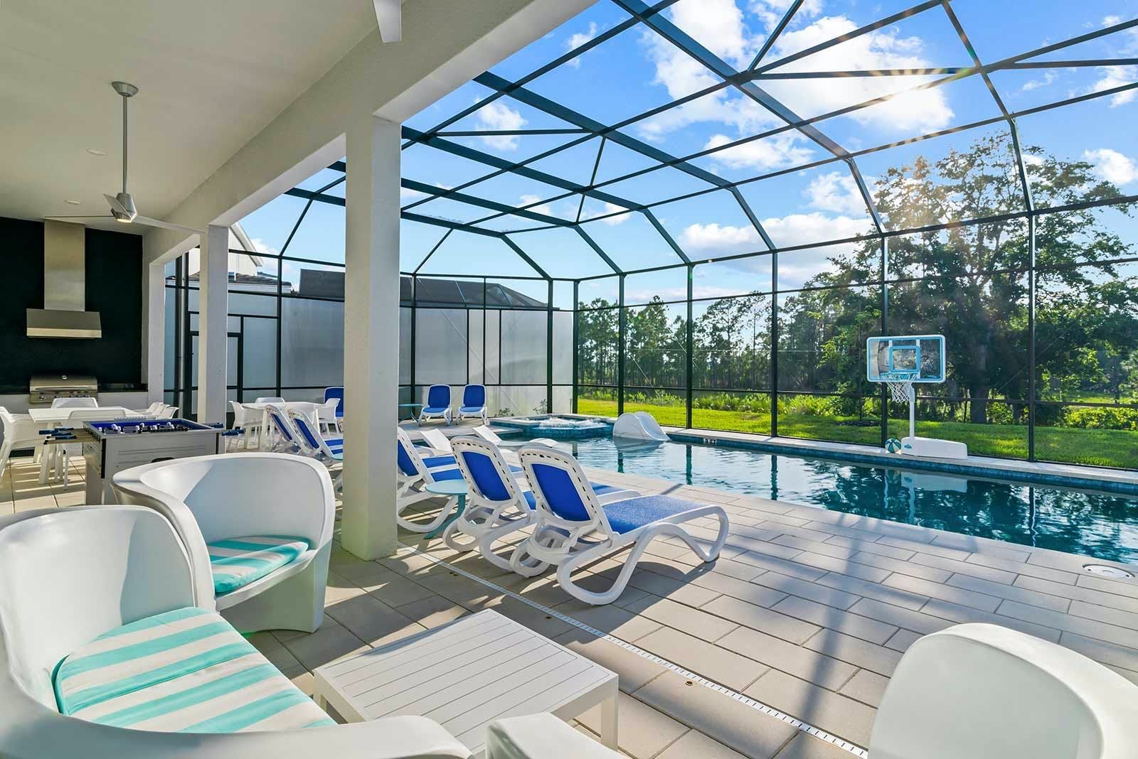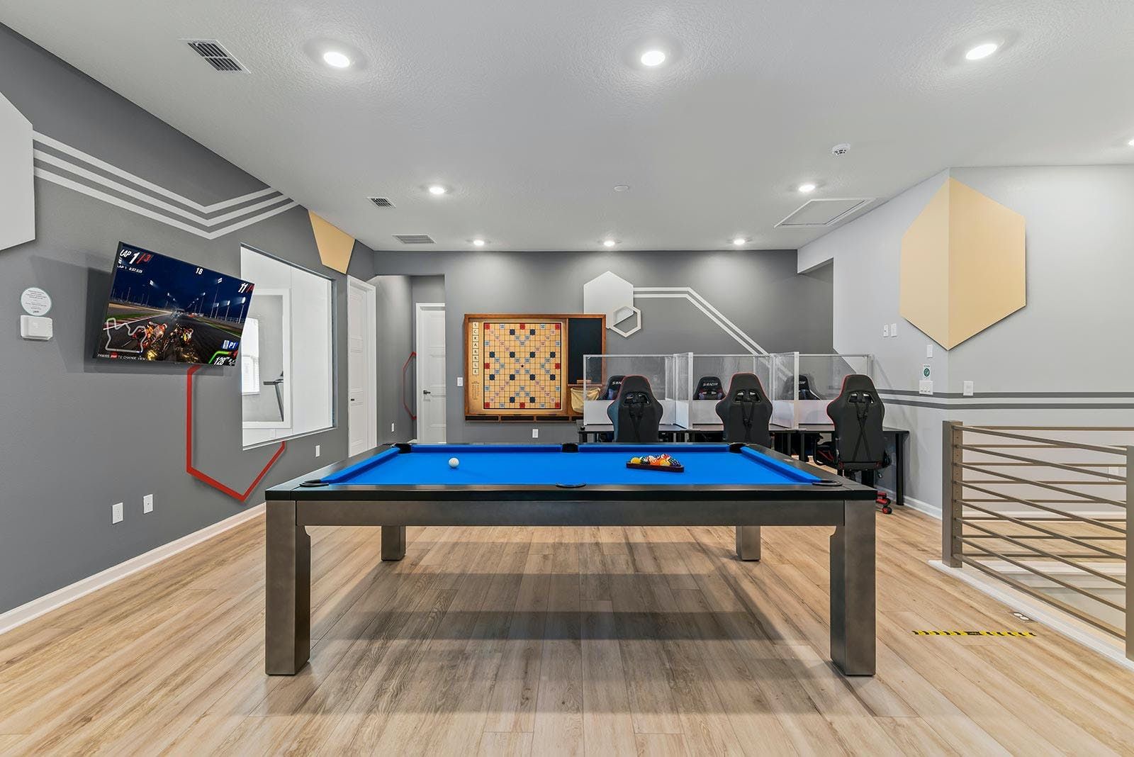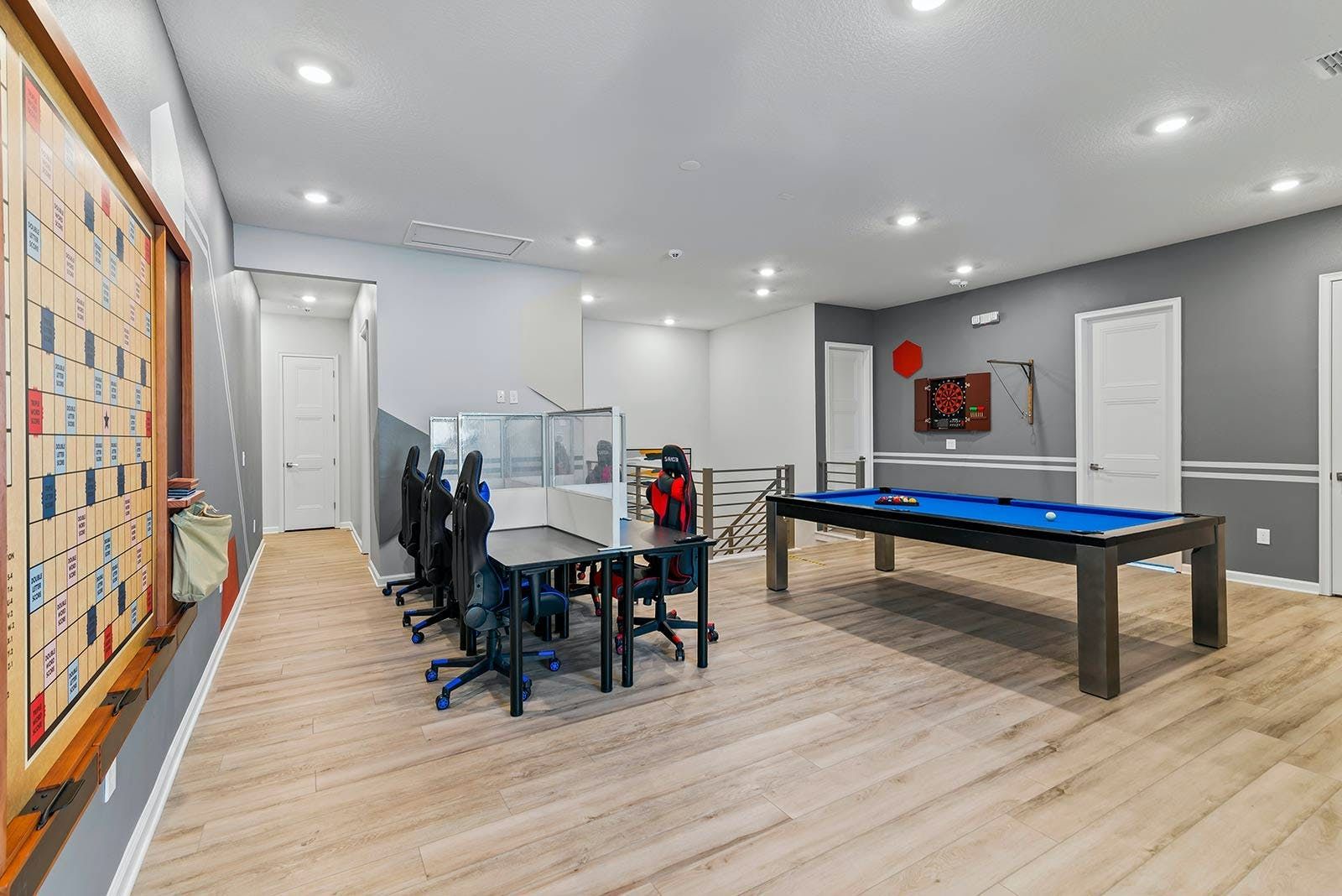 From the private pool and spa to the arcade room and movie theatre, every detail of this home has been designed to bring joy and fun to your Orlando getaway. There’s also a golf simulator room, a conference room for remote workers and a fitness area for exercise lovers. And while there’s plenty to keep you entertained at home, you’ll also have access to the resort amenities – including the pools, tennis courts and restaurants. It’s also a fantastic base for day trips to Disney World, Universal Studios and Kissimmee.