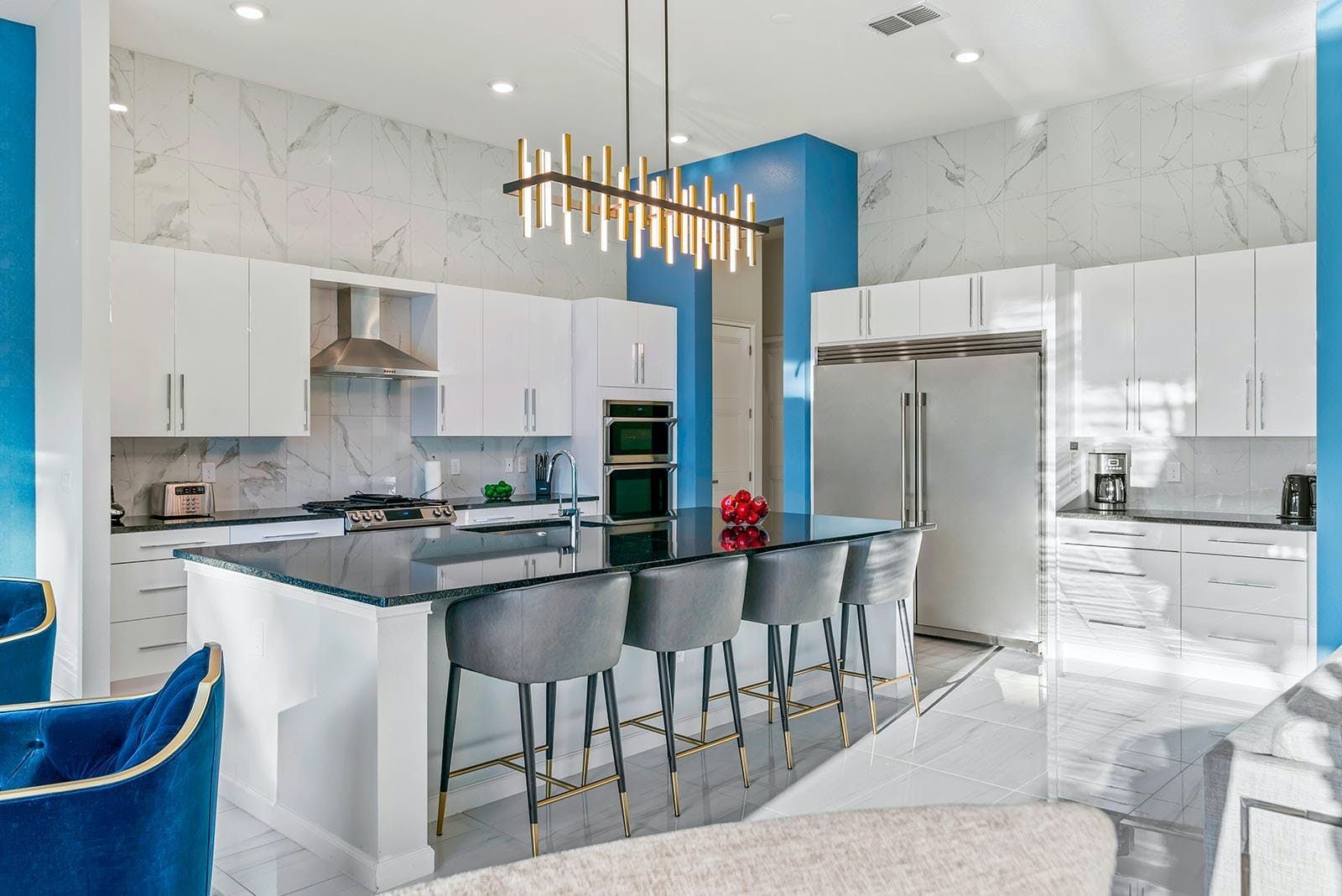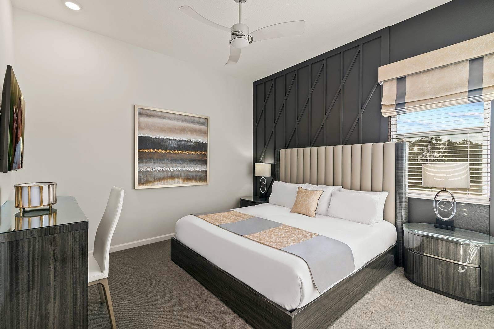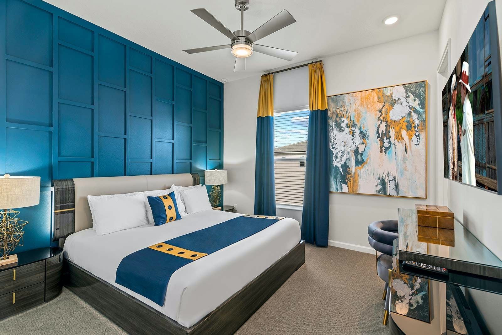 From the private pool and spa to the arcade room and movie theatre, every detail of this home has been designed to bring joy and fun to your Orlando getaway. There’s also a golf simulator room, a conference room for remote workers and a fitness area for exercise lovers. And while there’s plenty to keep you entertained at home, you’ll also have access to the resort amenities – including the pools, tennis courts and restaurants. It’s also a fantastic base for day trips to Disney World, Universal Studios and Kissimmee.