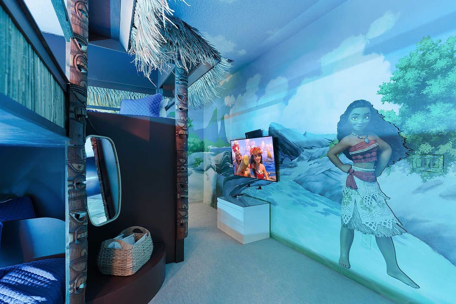 This Orlando villa is well placed for family fun. And by that, we mean it's under a twenty-minute drive from Disney, plus the likes of Universal Studios and SeaWorld are nearby. What could be better? There's plenty here to keep everyone entertained, with a private cinema, karaoke, arcade, and loft games. The kids even get their very own princess and space-themed bunk rooms. Outside, you’ll find a screened-in pool, spa and space for outdoor dining. You’ll want a car, and while a few games can be temperamental and the kitchen could use extra utensils, we think this home makes for a great stay overall.