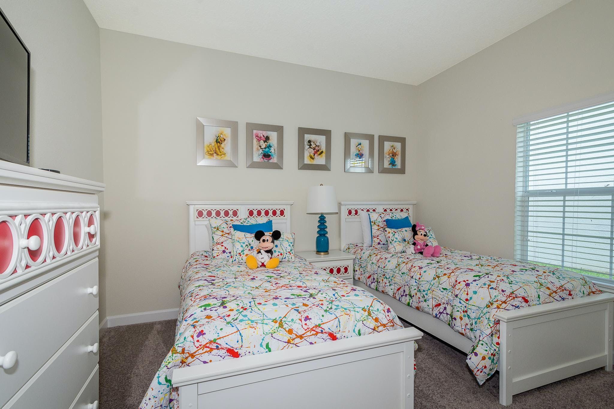 This brand new vacation rental is a stunning 5-bedroom, 4-bathroom property with a private pool and water view. The property is located in the prestigious Champions Gate Resort, which is surrounded by golf courses and tennis courts. The bedrooms are split between the first and second floors, with two bedrooms on the first floor (one queen bedroom and one bedroom with two twin beds) and three more on the second floor (two king suites and one bedroom with a bunk bed). The resort offers a range of amenities, including two pools (one with a lazy river), a restaurant, gym, business center, game room, cinema, and more. This is the perfect location for families or groups of friends looking to enjoy all that Florida has to offer in style and luxury.