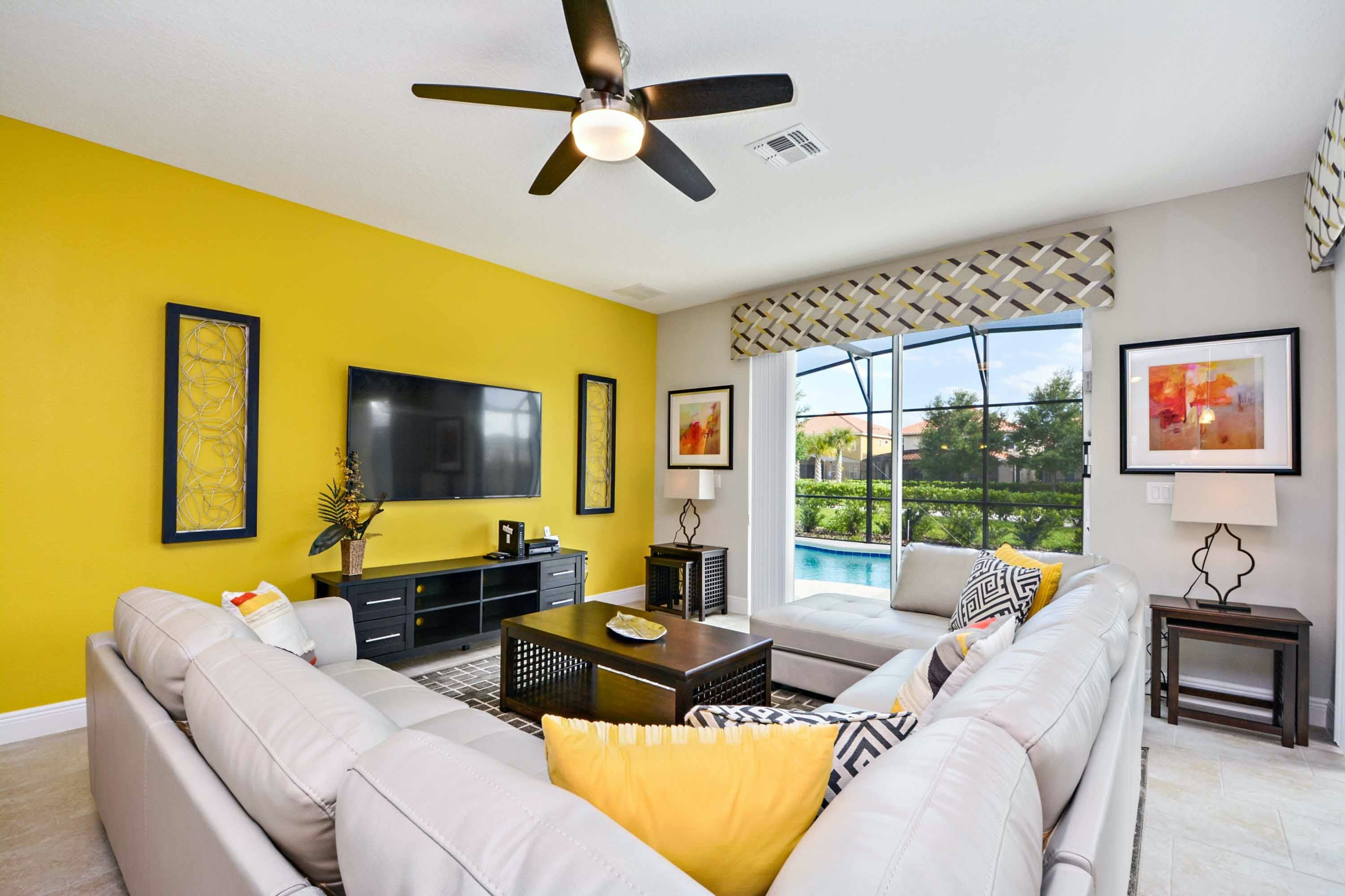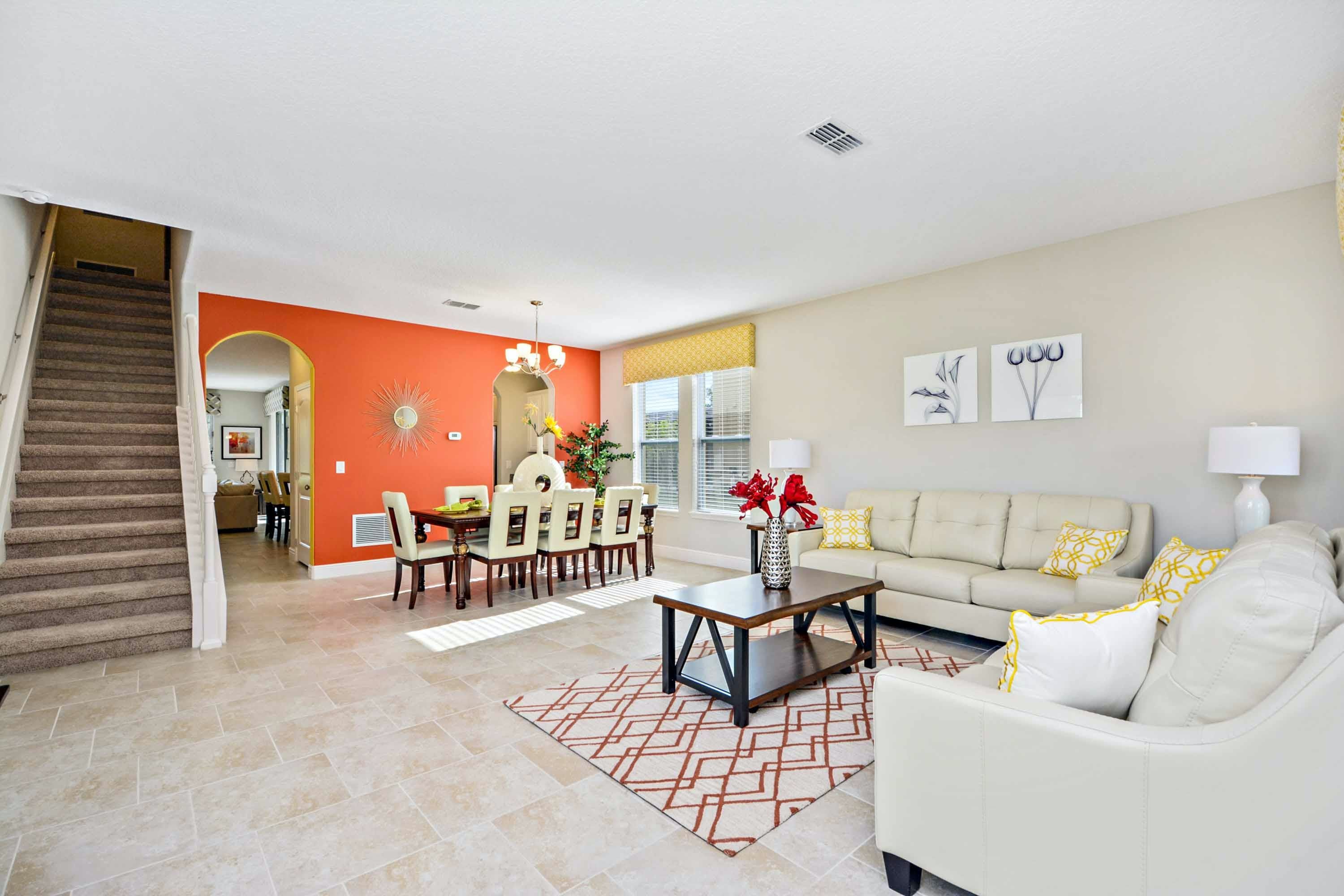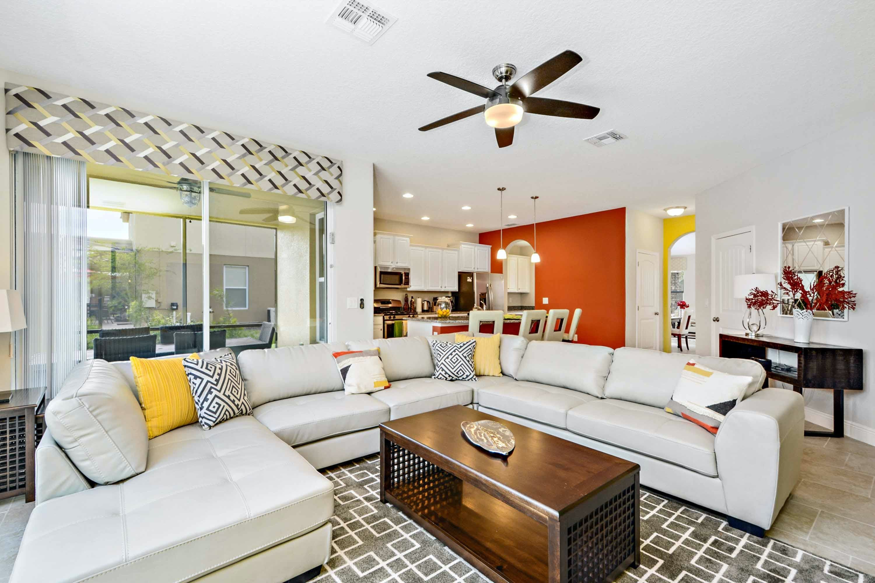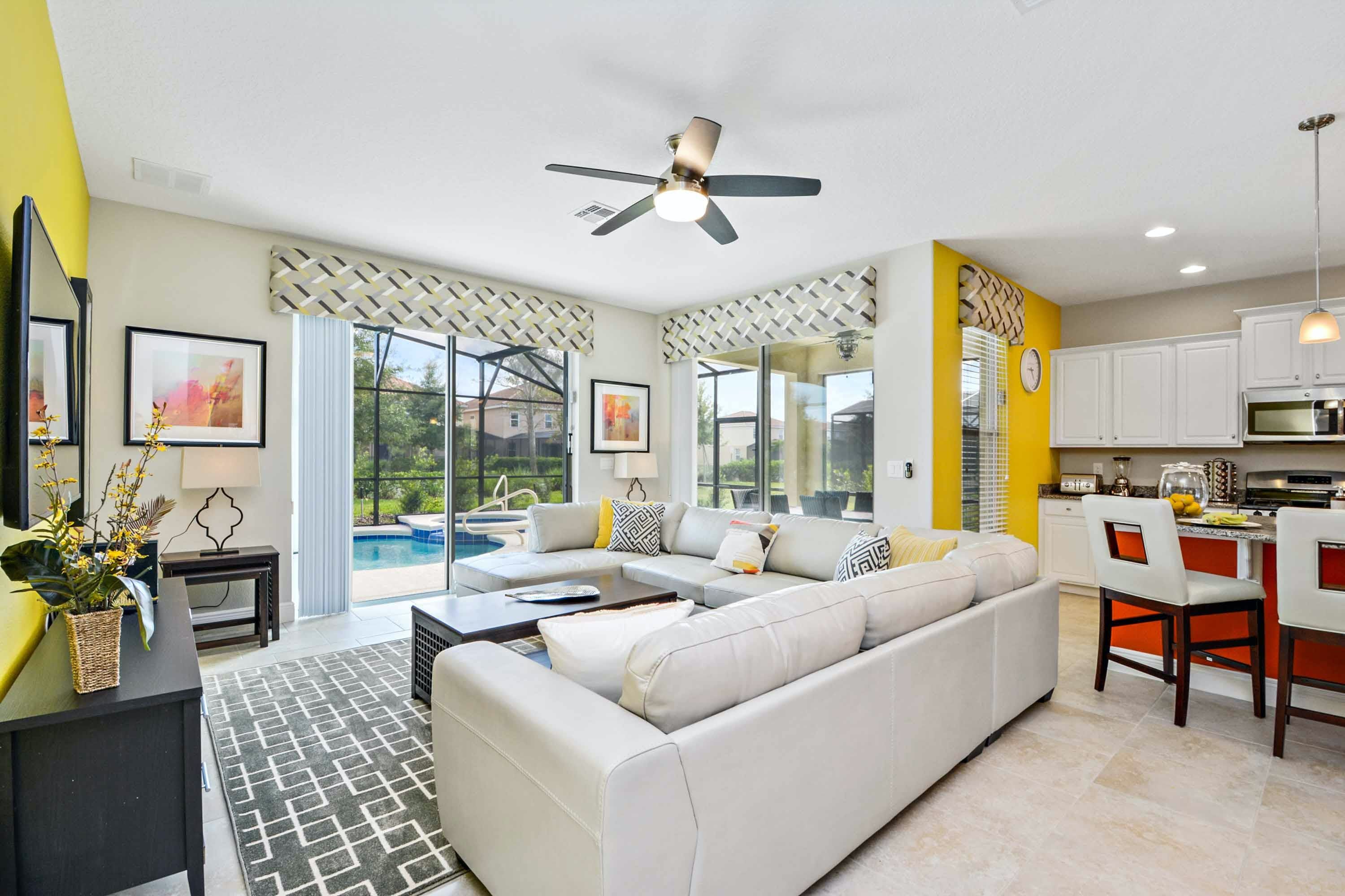 Welcome to Serene Bliss, a spacious and inviting six-bedroom sanctuary where comfort and modern elegance intertwine. This luxurious villa is the perfect place to relax and enjoy your holiday in Orlando. The villa is located in the popular Solterra resort, just a short 15-minute drive from Walt Disney World. The villa is designed with contemporary furnishings and tasteful décor, boasting a modern and homely feel throughout. The kitchen is well-equipped and stylish, featuring a large breakfast bar and modern appliances, perfect for any culinary creativity. With multiple living areas, including a cosy lounge to the front, a main family lounge with a large corner sofa, and an upstairs loft area ideal for teenagers, there's space for the whole family to stretch out and relax. Make a dart for the thrilling games room, decked out with a pool table, air hockey, and foosball, offering endless hours of family fun.