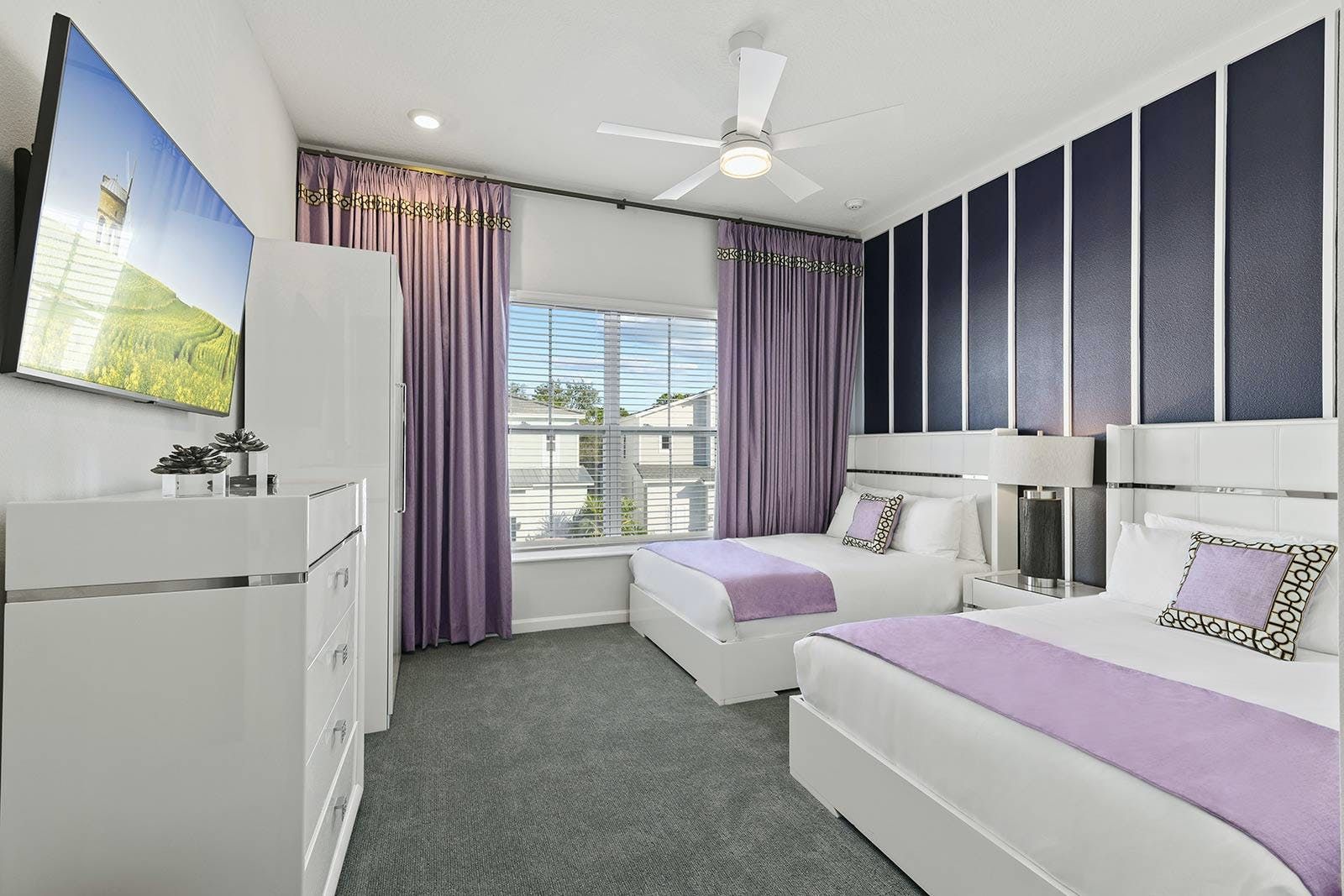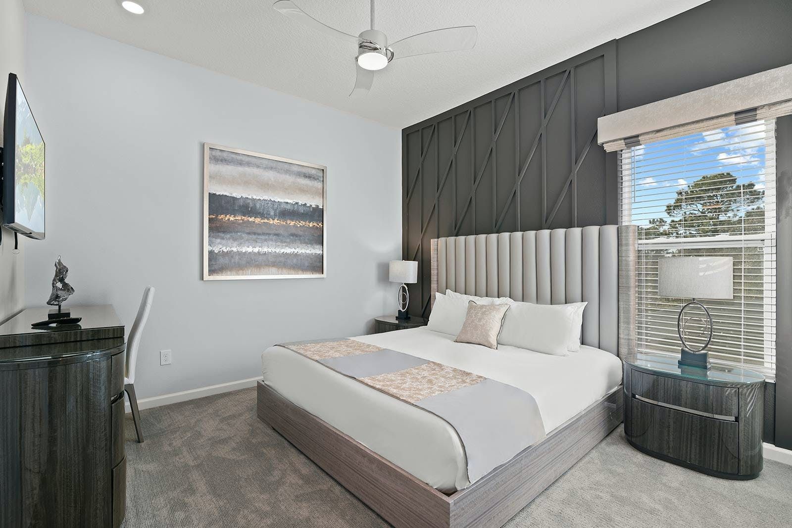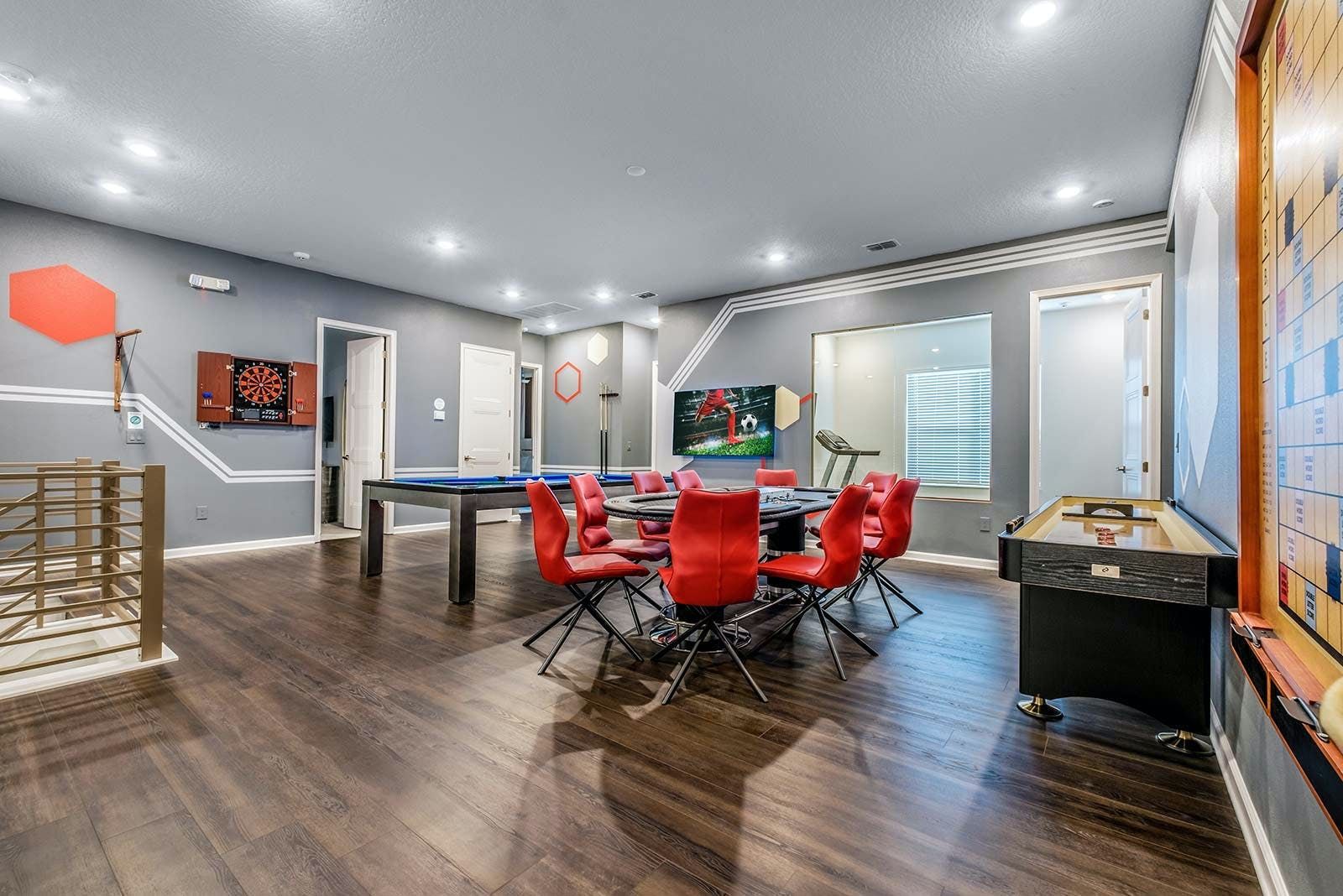 Just a short drive from Disney, this home places you in a magical part of Florida. Days can be spent exploring the local attraction parks and it’s also within easy reach of Downtown Orlando and Kissimmee. There’s plenty to keep the whole group entertained back at home too with a private pool, Jacuzzi, sports simulator rooms, a cinema and a games room. Exercise enthusiasts will appreciate the fitness room, while everyone can enjoy access to the resort facilities – including the communal pool, tennis court and restaurant.