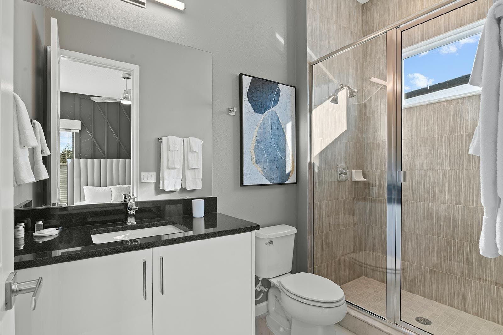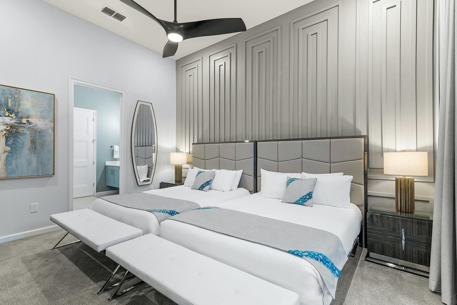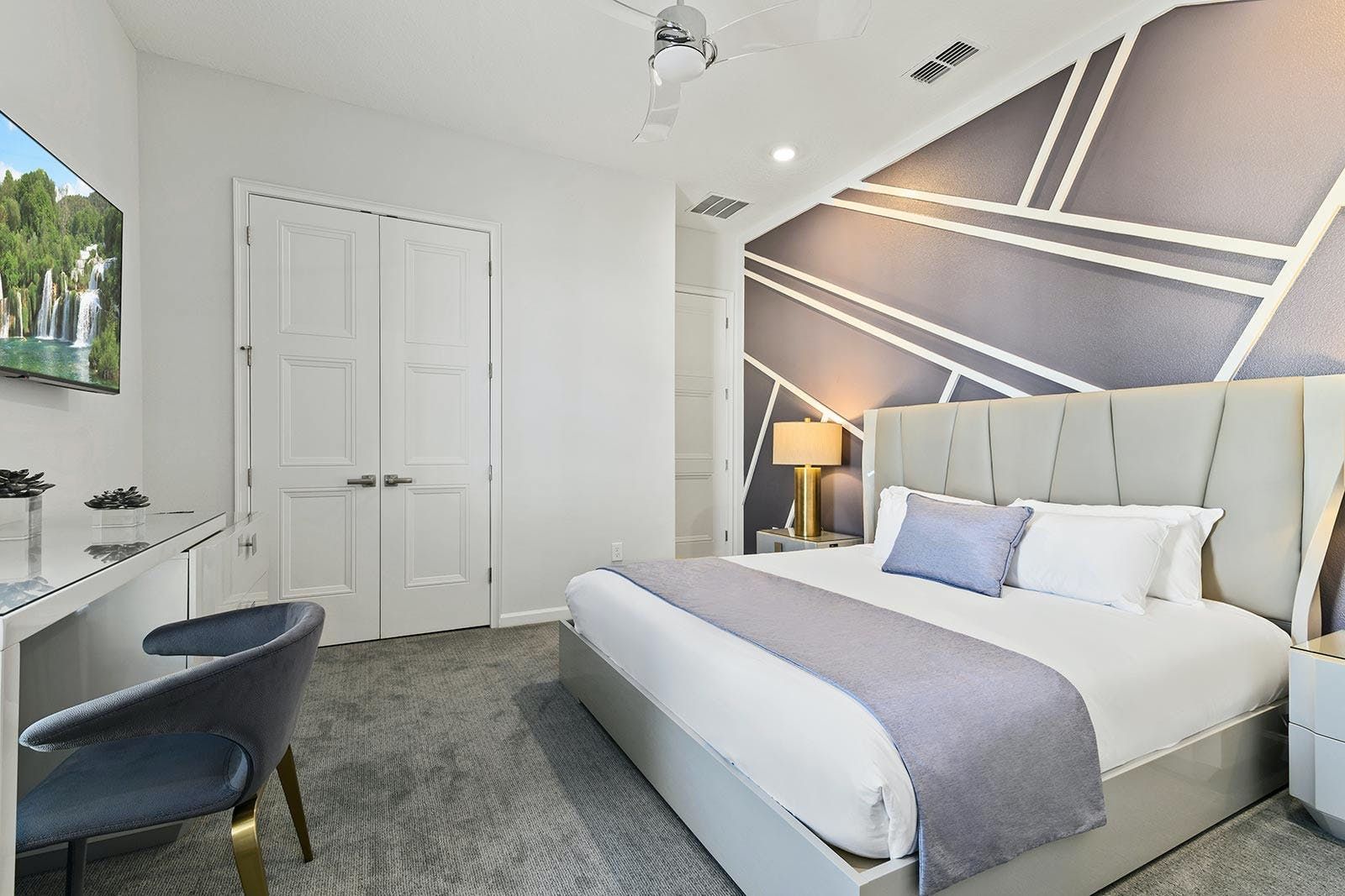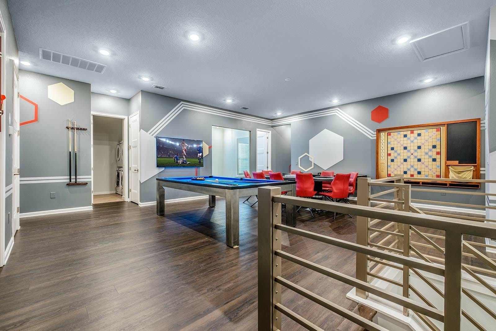 Just a short drive from Disney, this home places you in a magical part of Florida. Days can be spent exploring the local attraction parks and it’s also within easy reach of Downtown Orlando and Kissimmee. There’s plenty to keep the whole group entertained back at home too with a private pool, Jacuzzi, sports simulator rooms, a cinema and a games room. Exercise enthusiasts will appreciate the fitness room, while everyone can enjoy access to the resort facilities – including the communal pool, tennis court and restaurant.