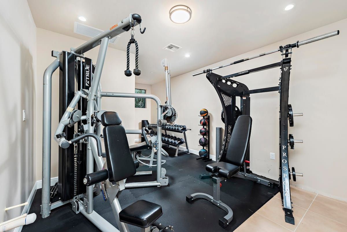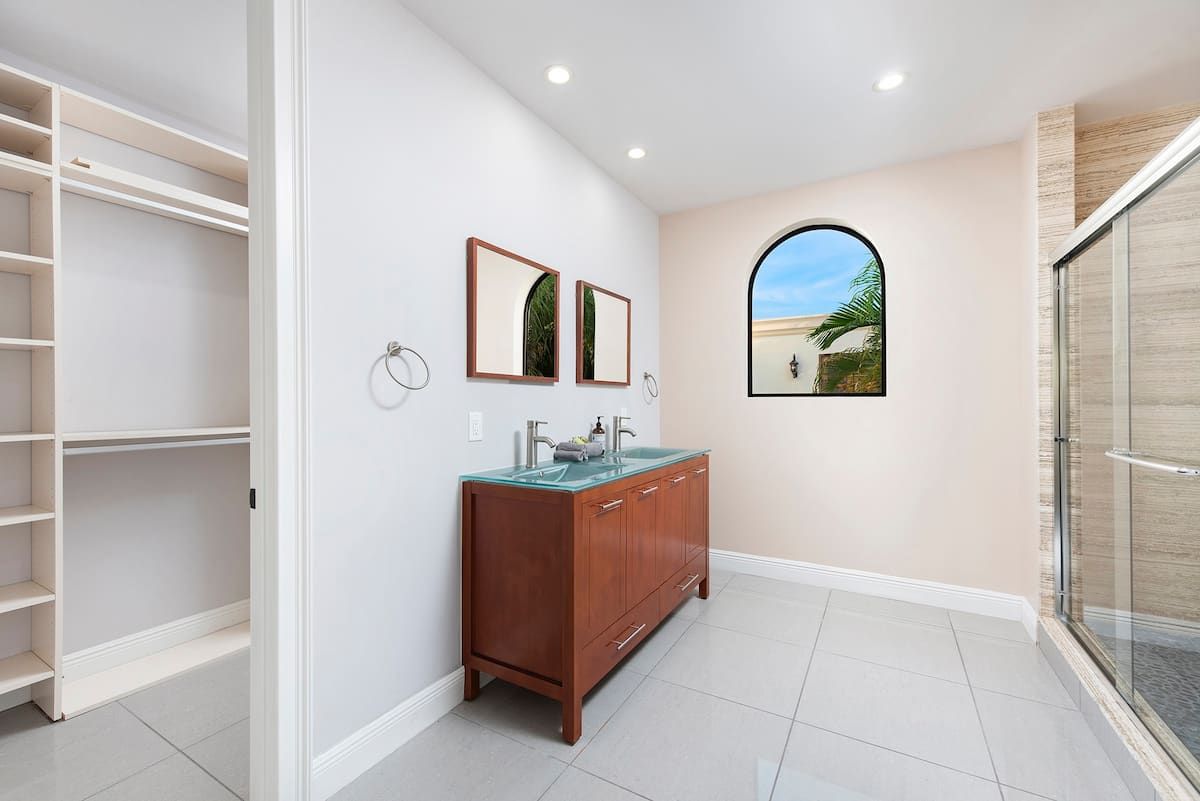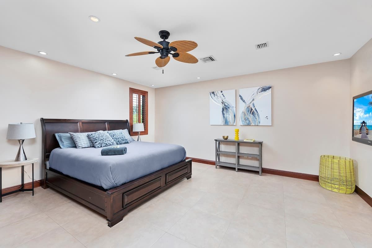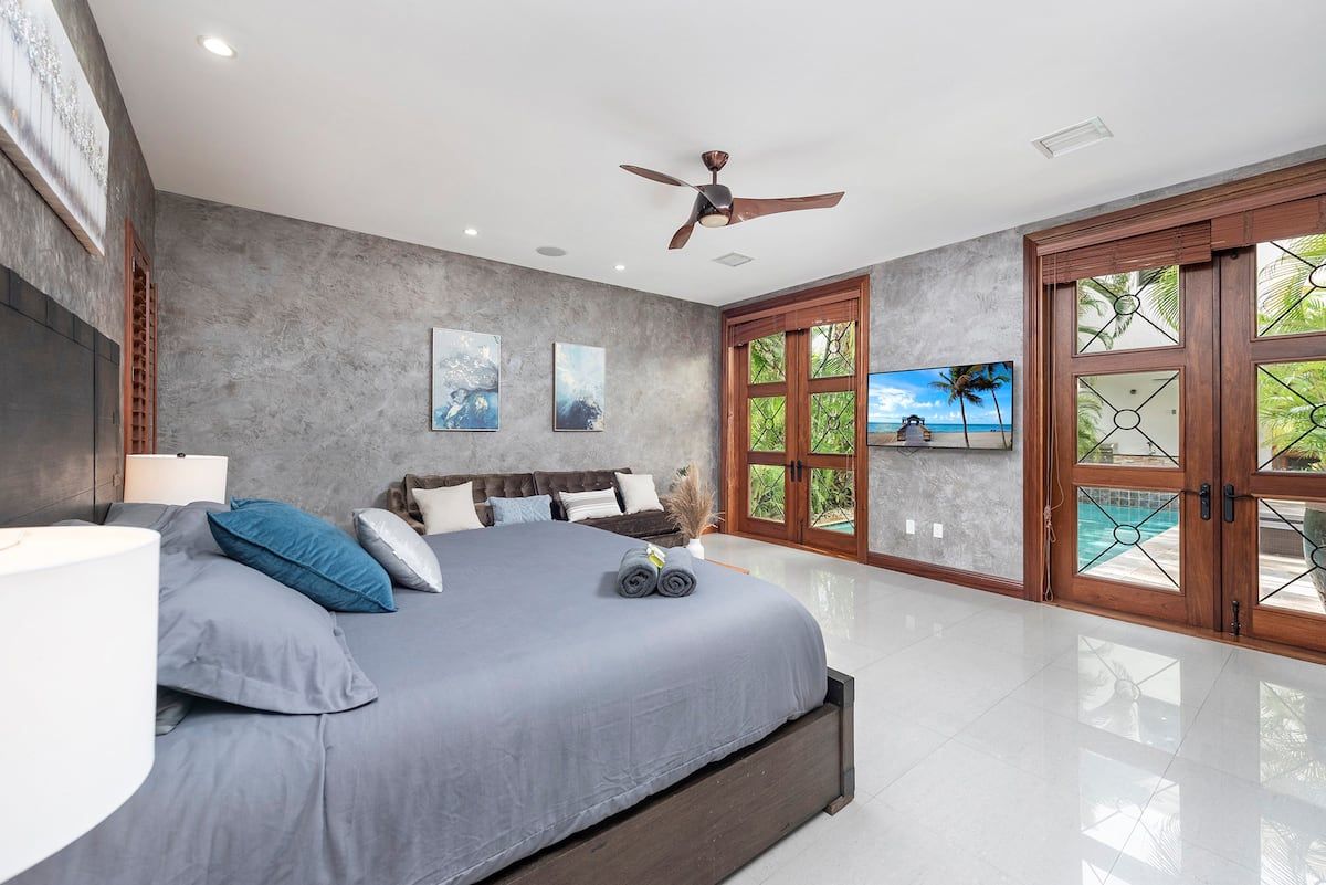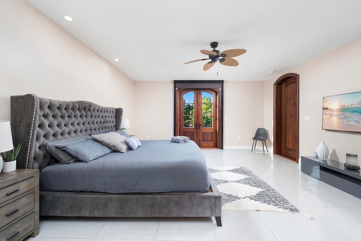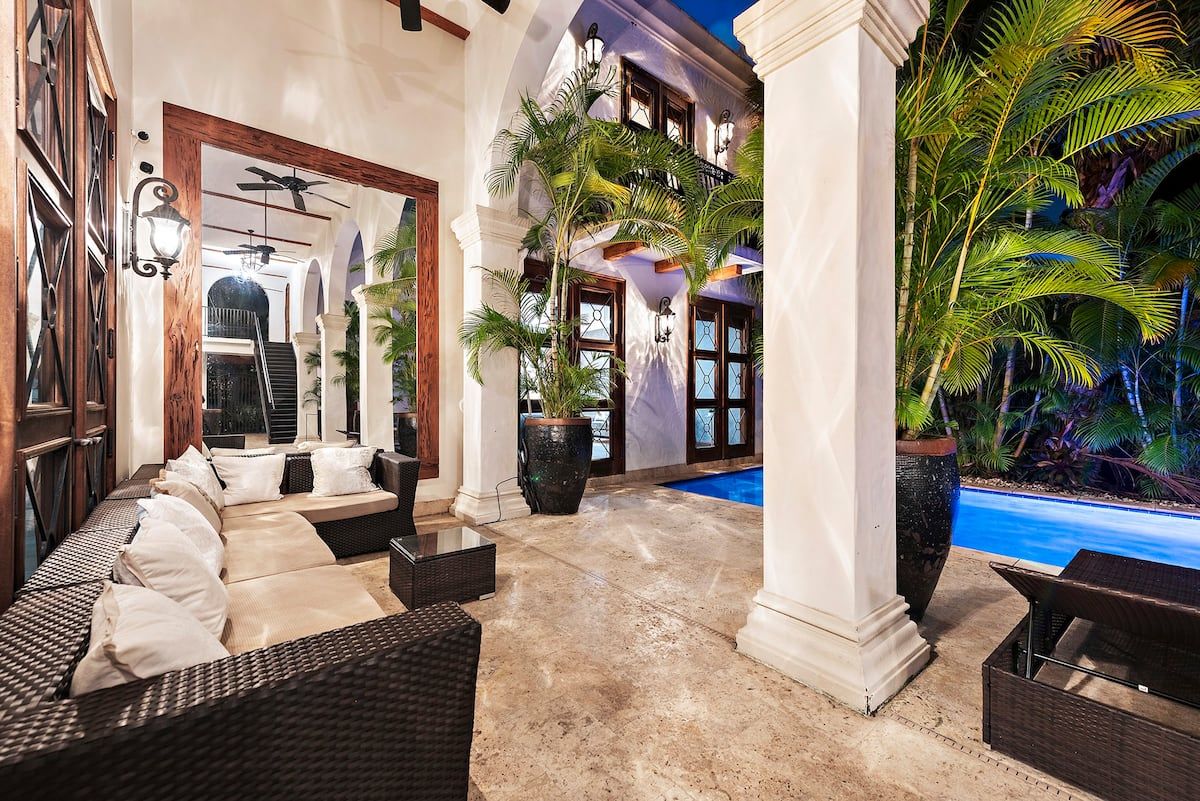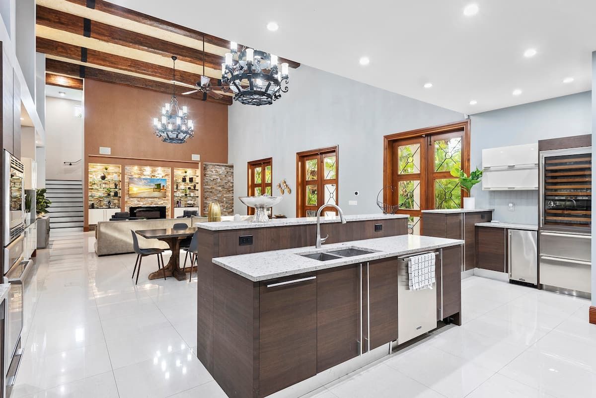 Some homes are so extraordinary that they draw 'oohs' and 'aahs' from guests in every new room they enter — this stunning European-style villa in Fort Lauderdale is very much one of those. Inside, the twenty-four-foot high ceilings in the living space invite palatial comparisons and this continues when you step outside to the palm-covered heated pool area, which is reminiscent of a Roman emperor's abode. It's very easy to imagine careless afternoons drifting between the inbuilt hot tub and the loungers on the covered terrace close to the barbecue. If you ever want to up the ante at any point, there's a well-equipped gym with a cable machine, free weights, and core strength equipment, as well as a whole host of sports to play in nearby Holiday Park too, which can be reached in twelve minutes' walk. However, if you feel more at home just lazing about, the golden sands of Fort Lauderdale Beach are a ten-minute car journey away.