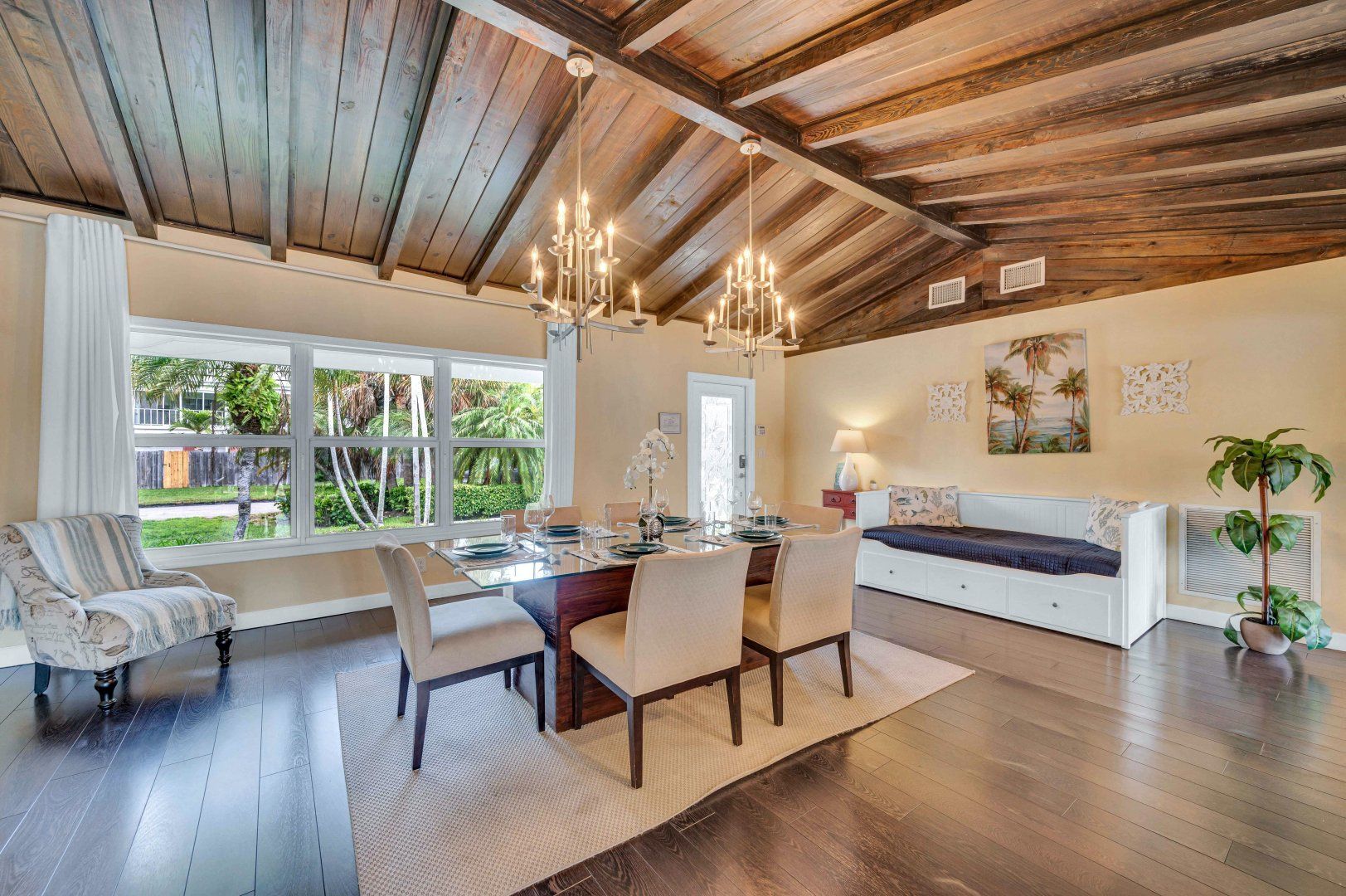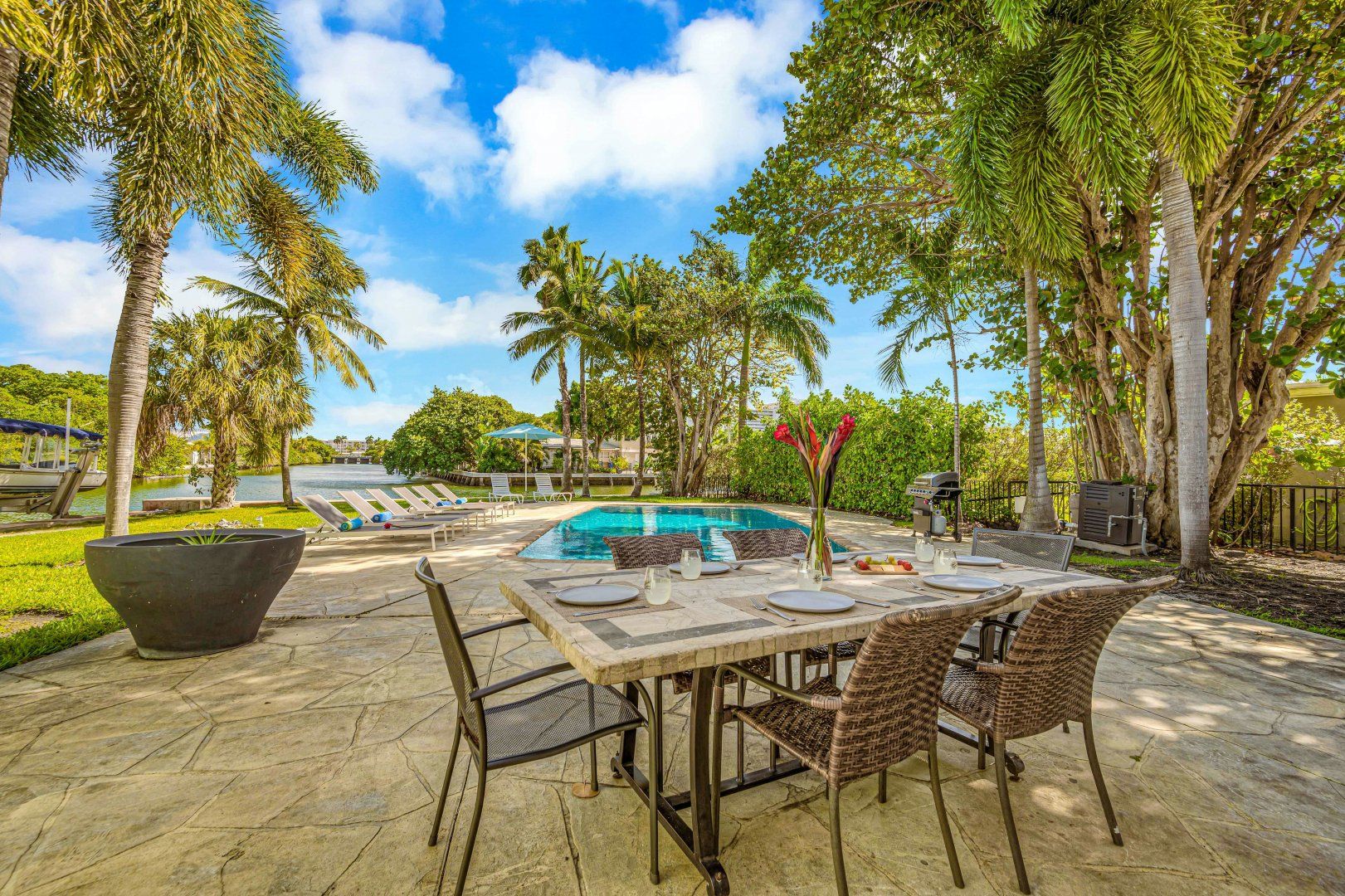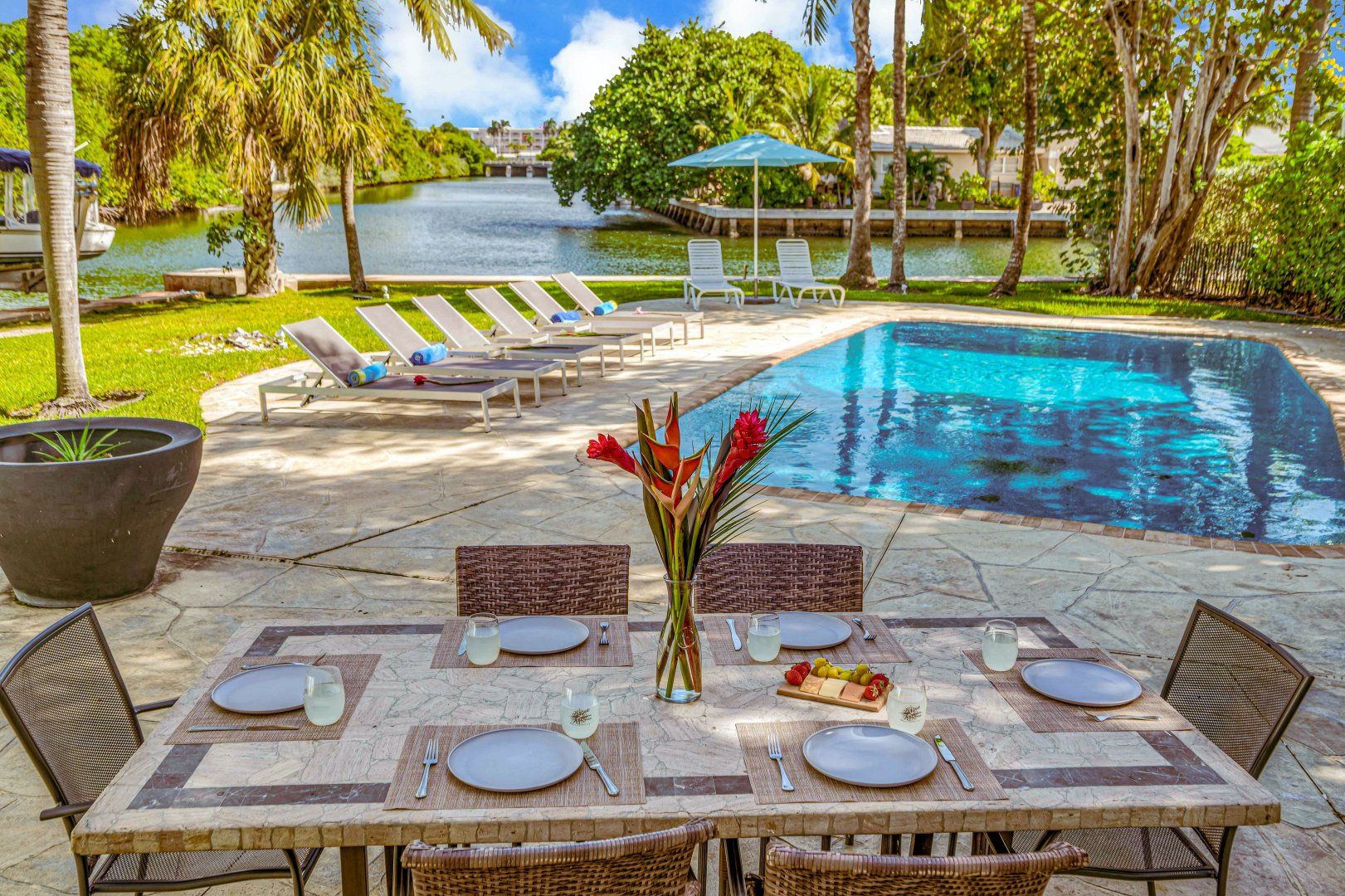 A private dock on the canals of Fort Lauderdale and your own swimming pool by the waterside – this cosy cottage is ideal for boaties and waterbabies. If you’re not exploring the area by kayak, boat or paddleboard, you can rent bikes and go by land. The home is Floridian ranch-style – pretty as a picture and all on one level. The open-plan living, kitchen and dining room is a social spot for the group to gather inside and there’s an additional breakfast nook for morning coffees. You might prefer to dine on the patio outside, though, in the near-constant Florida sunshine.