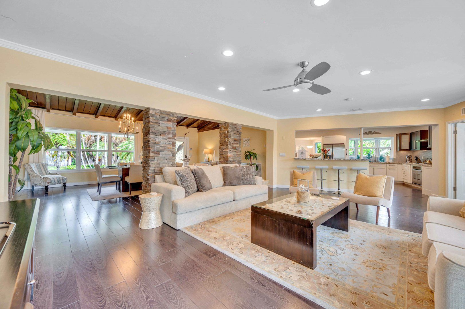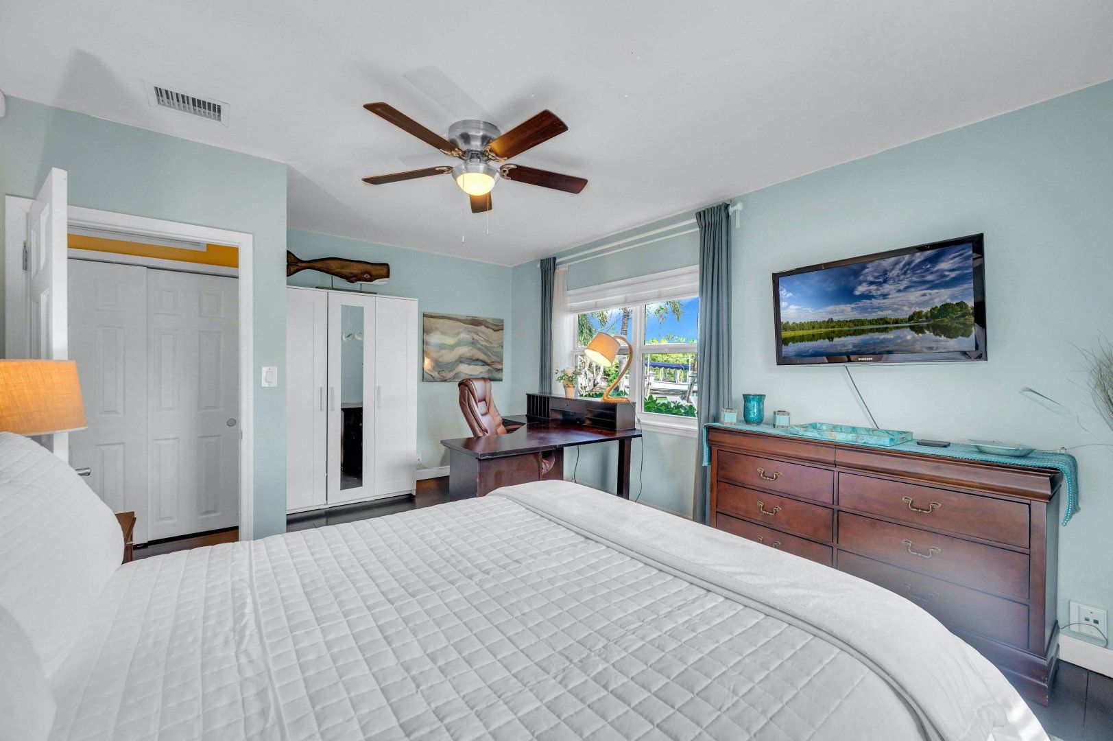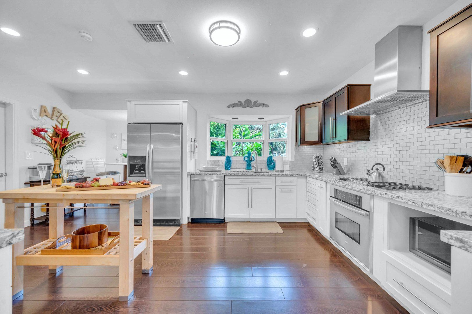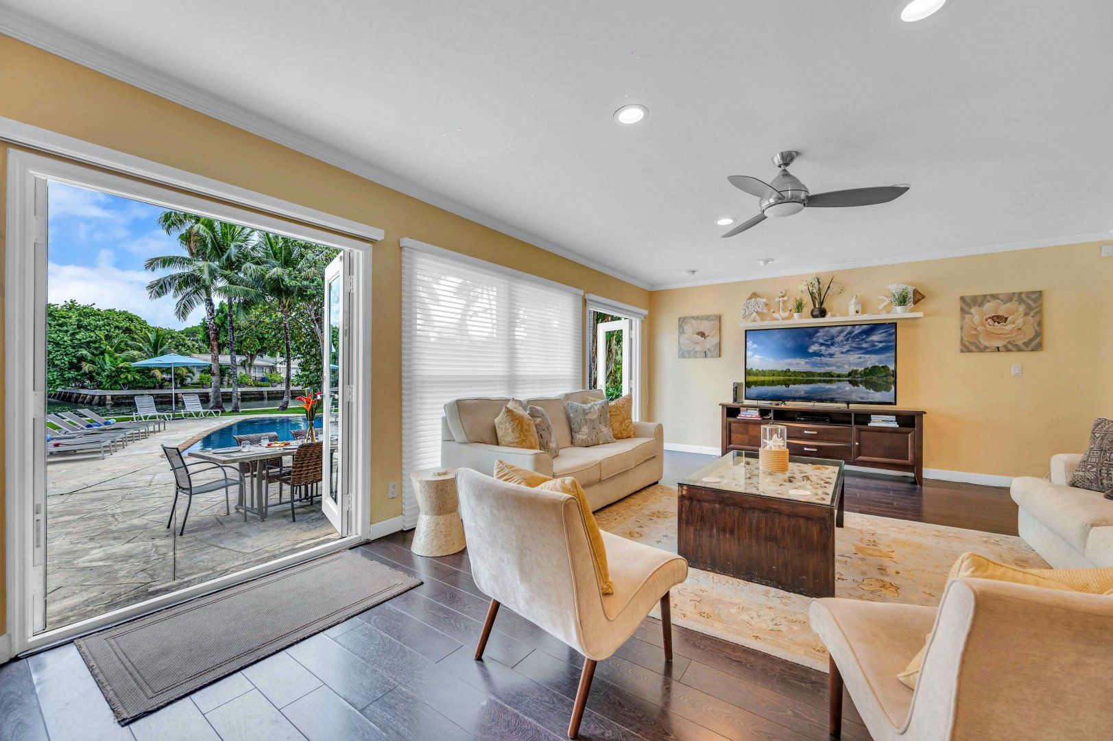 A private dock on the canals of Fort Lauderdale and your own swimming pool by the waterside – this cosy cottage is ideal for boaties and waterbabies. If you’re not exploring the area by kayak, boat or paddleboard, you can rent bikes and go by land. The home is Floridian ranch-style – pretty as a picture and all on one level. The open-plan living, kitchen and dining room is a social spot for the group to gather inside and there’s an additional breakfast nook for morning coffees. You might prefer to dine on the patio outside, though, in the near-constant Florida sunshine.