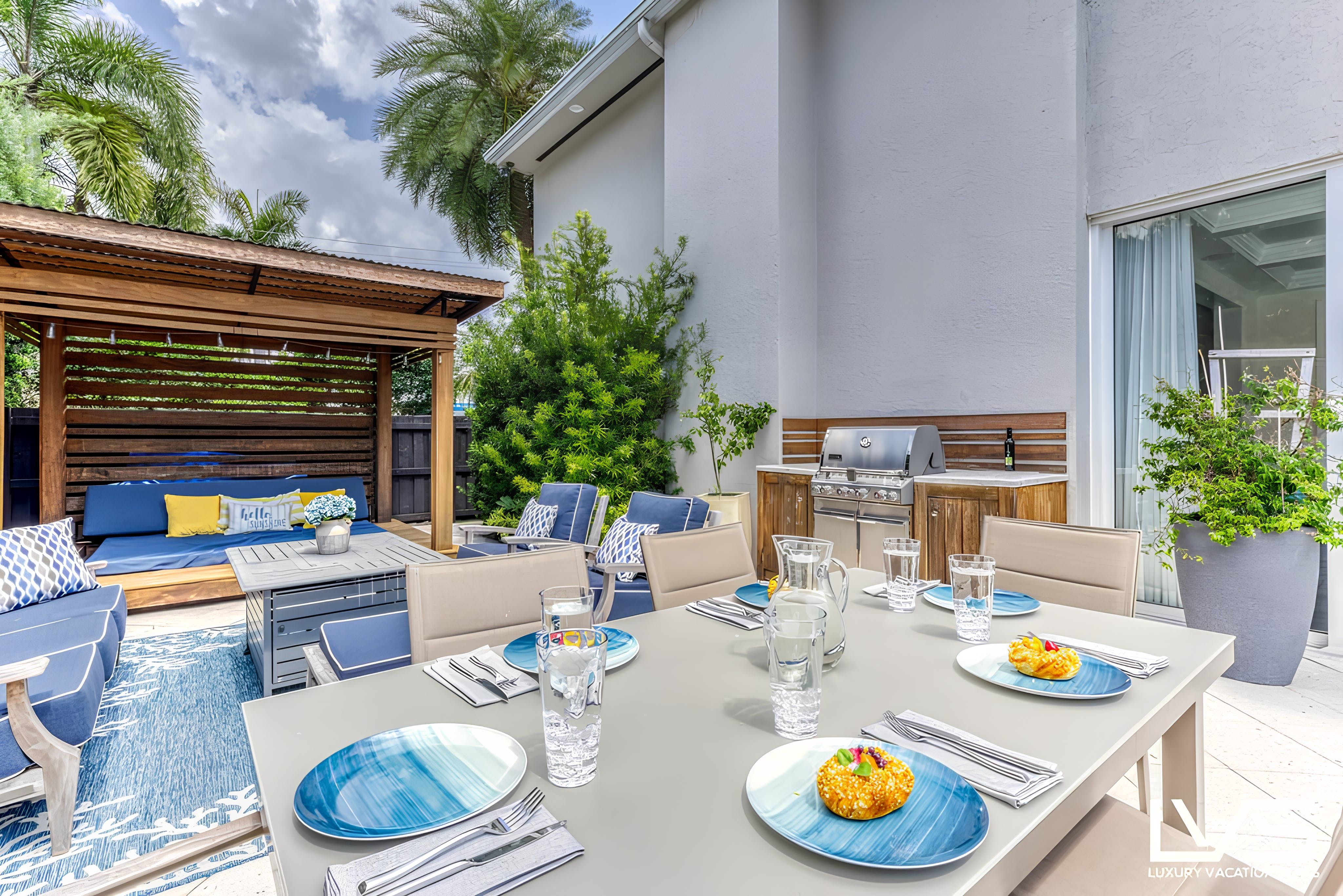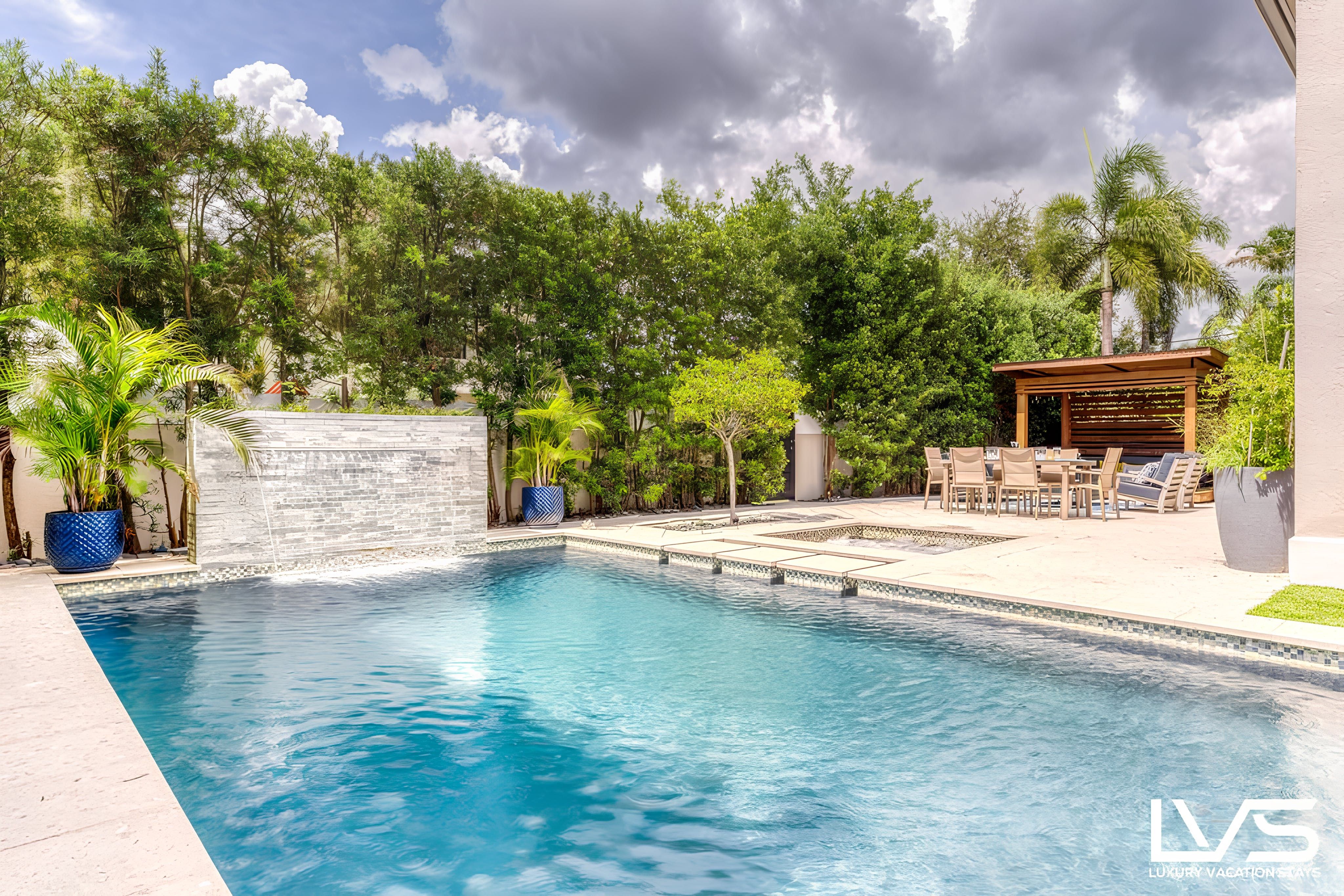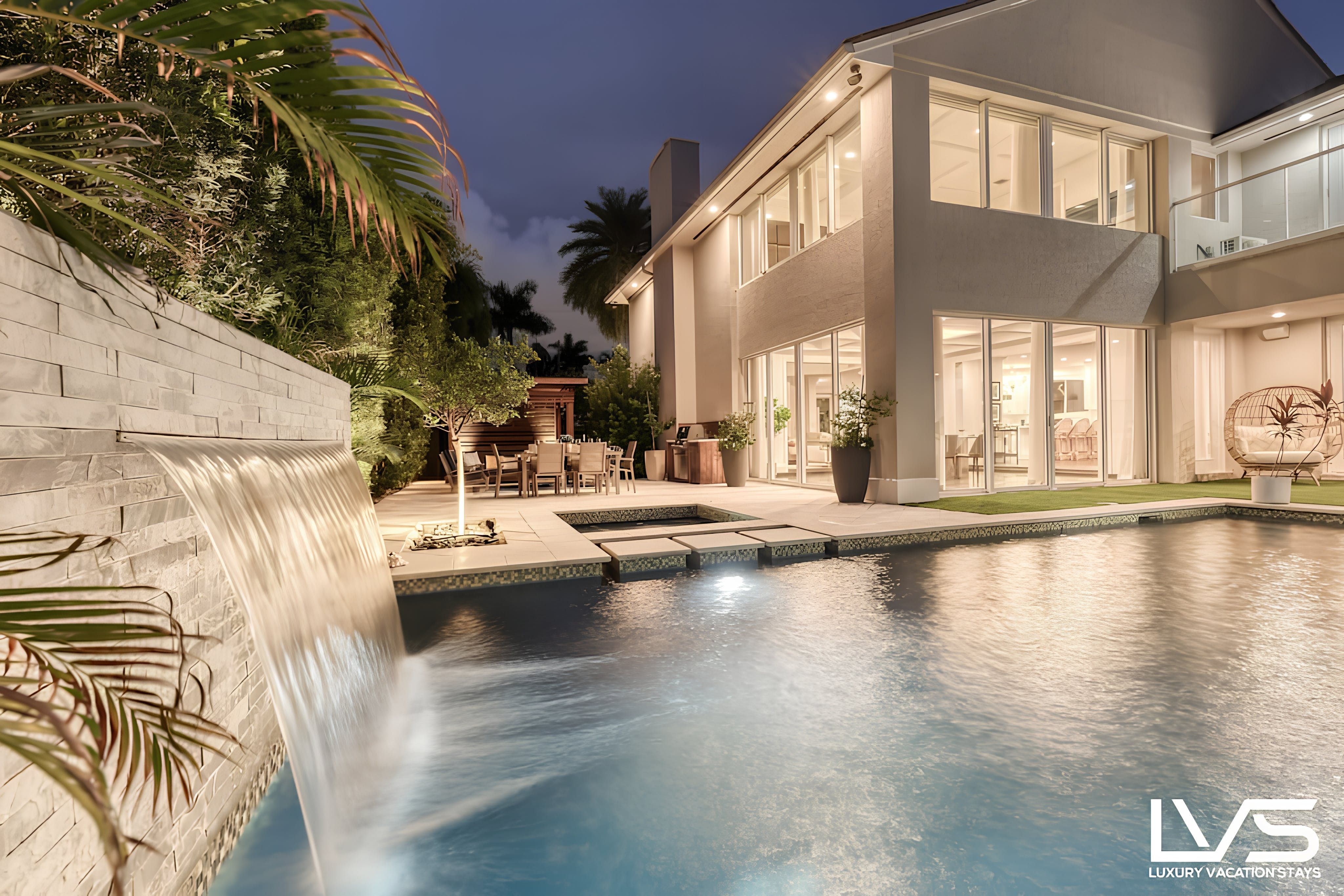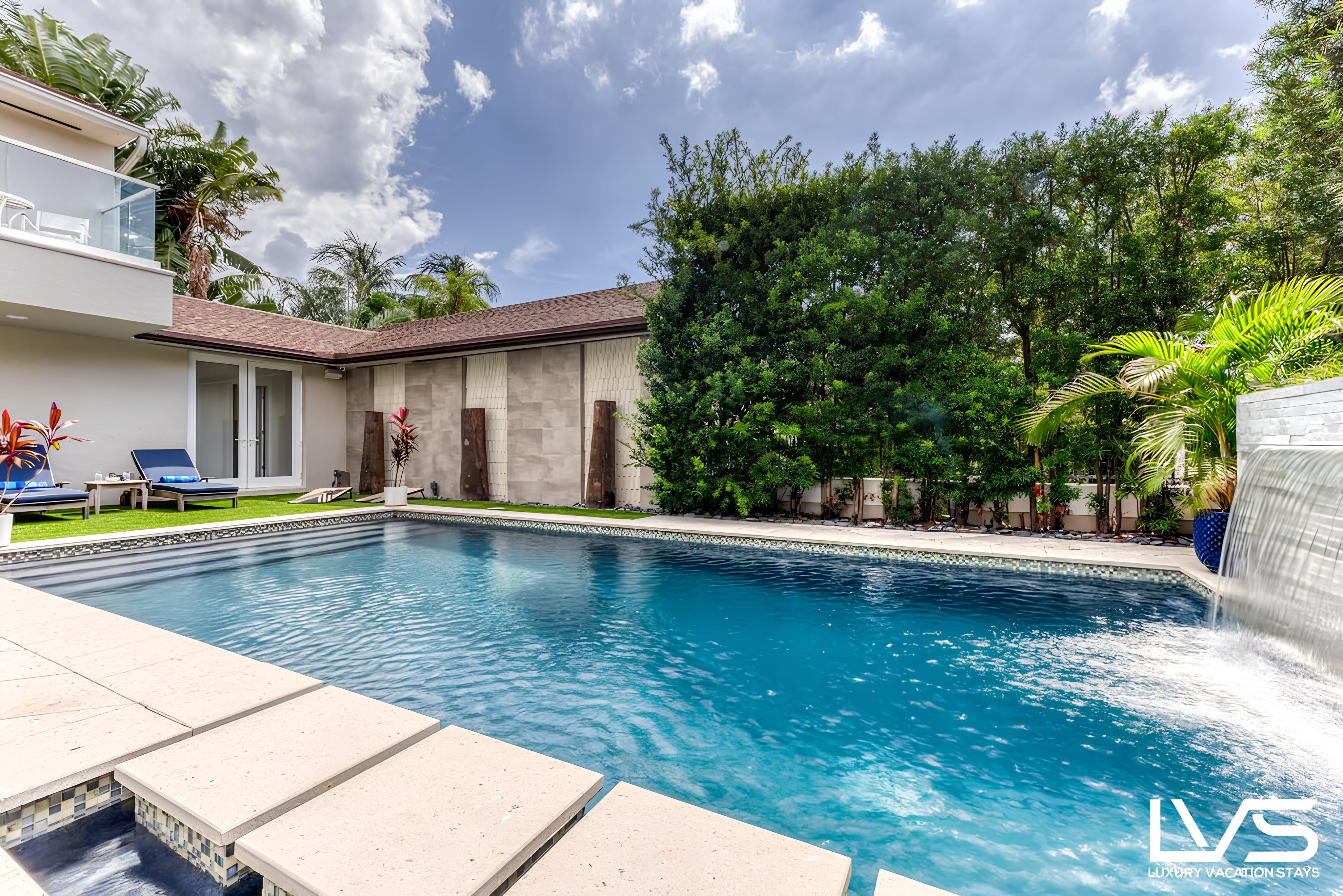Welcome to a piece of tropical paradise tucked away in the tranquil Idlewyld locale. Within strolling distance, guests discover Fort Lauderdale Beach's inviting sands — a mere 10-minute jaunt! This resplendent retreat, built in 2018, is ideally situated a stone's throw from the bustling Las Olas area with charming shops, eclectic eateries, and vibrant nightlife. Accommodating 12 comfortably, the home features four well-furnished bedrooms — including two luxury suites, a culinary aficionado's dream kitchen complete with an island bar, and additional dining nooks. Whether choosing to unwind in the heated saltwater pool, hot tub, or enjoying fireside chats under the starry Floridian sky, this oasis caters to all desires. The guest experience is magnified with a team boasting 500+ shining reviews on different platforms.