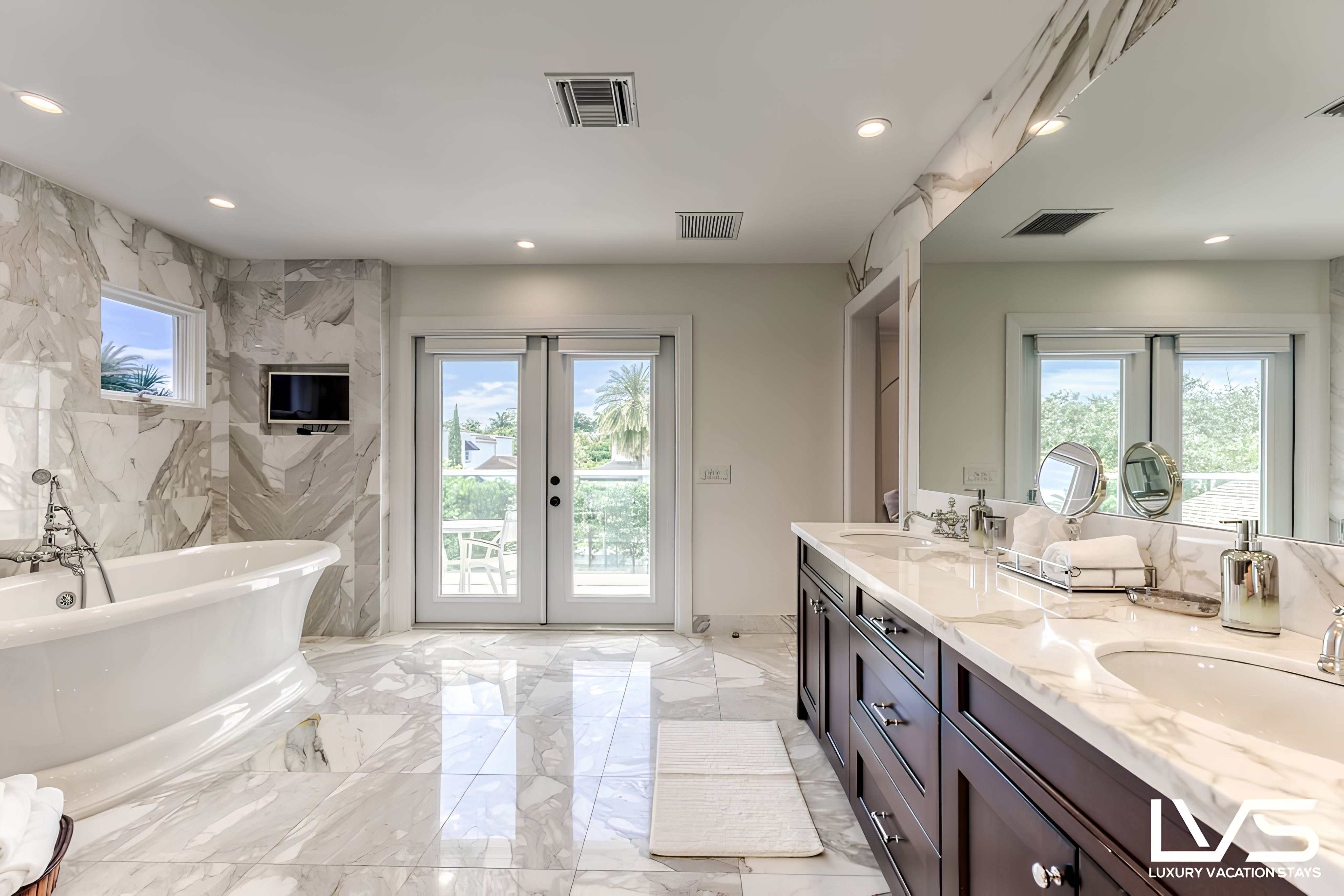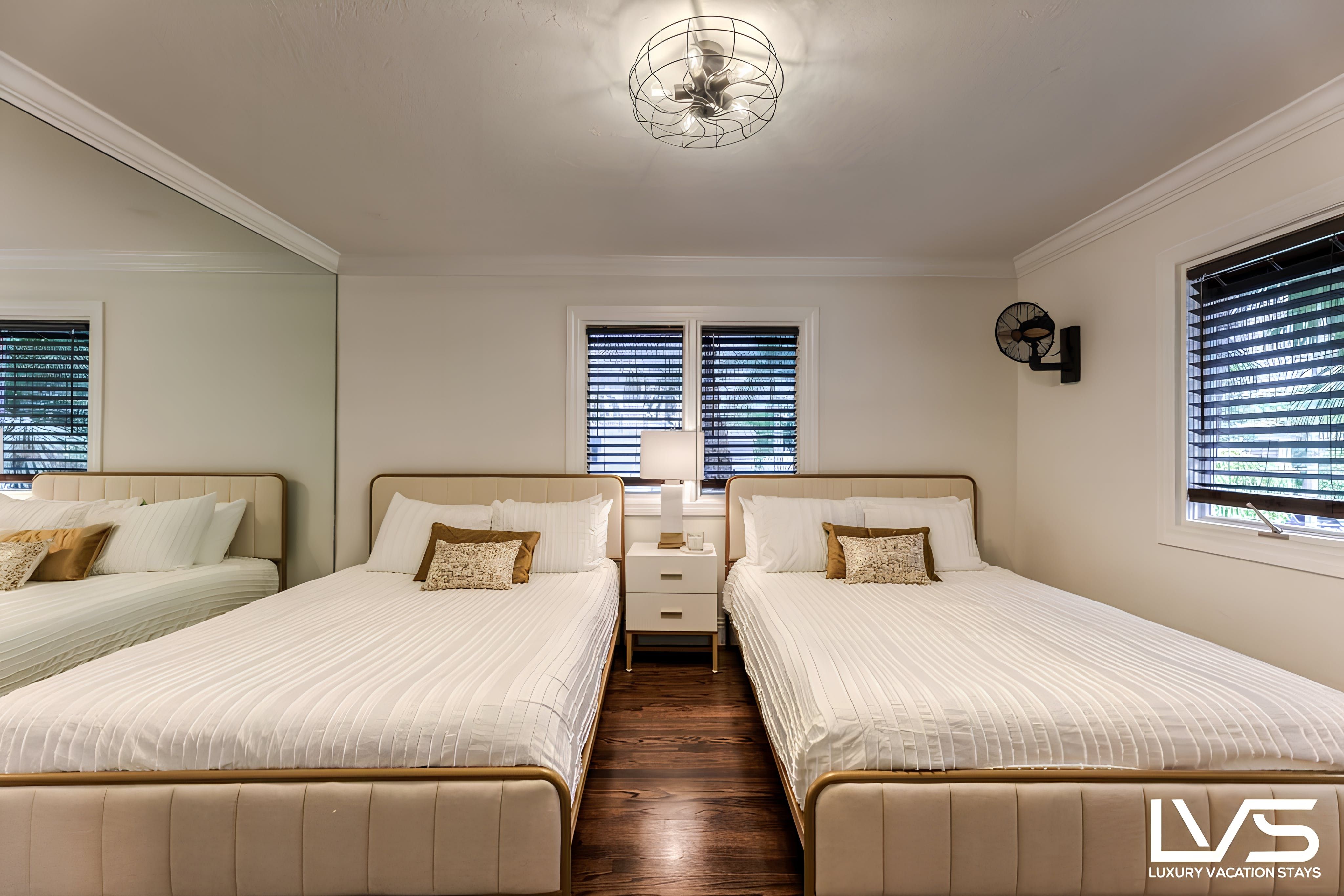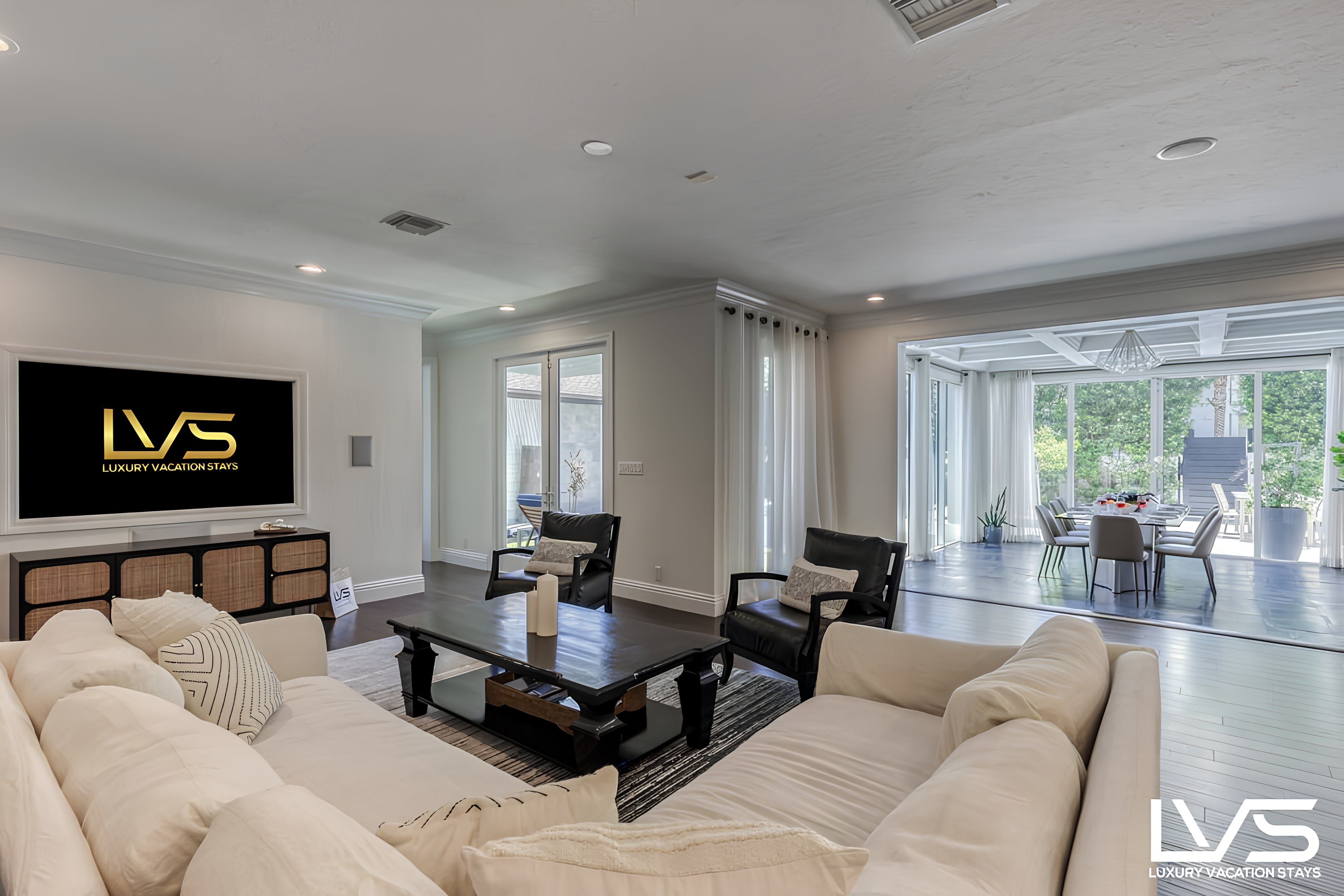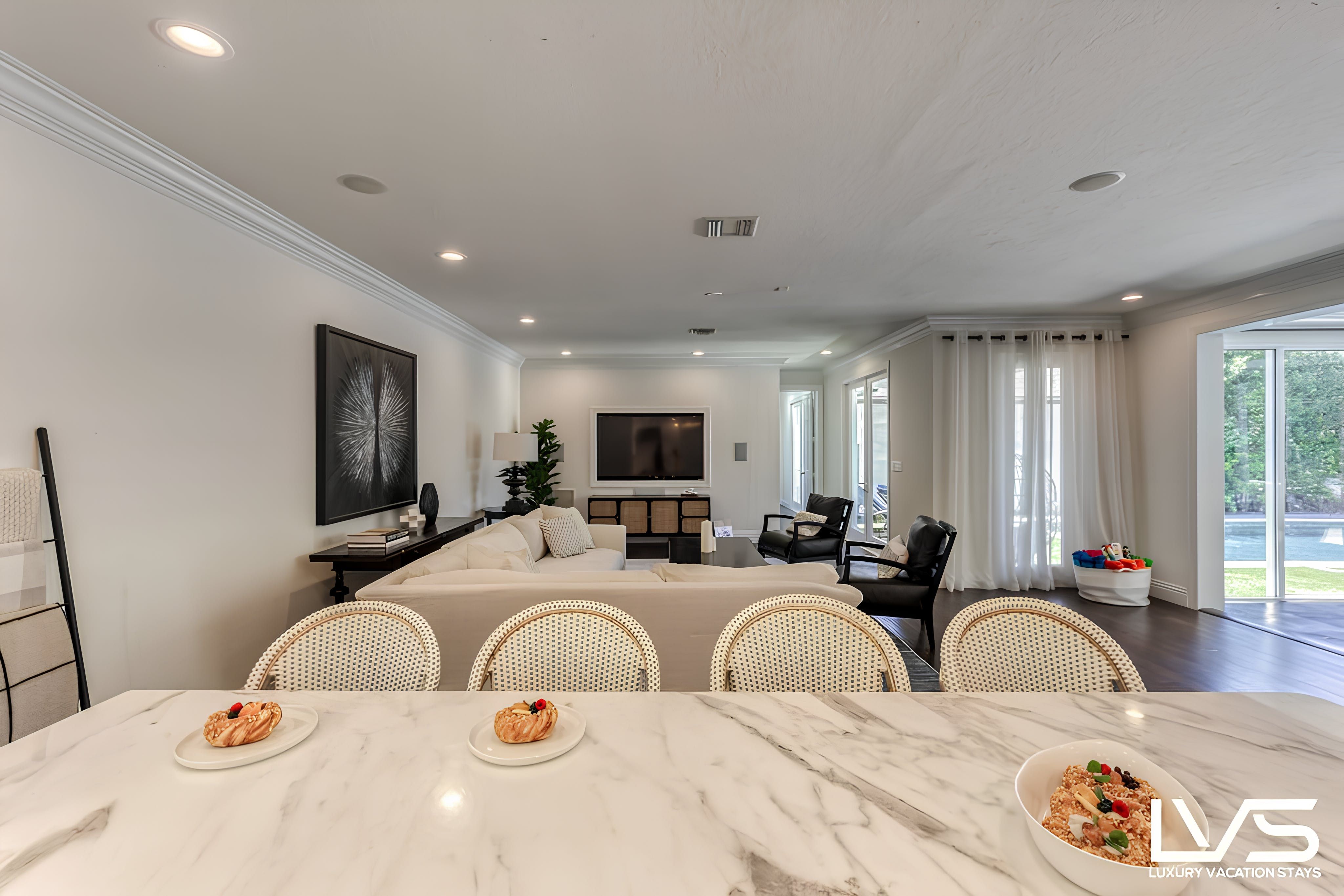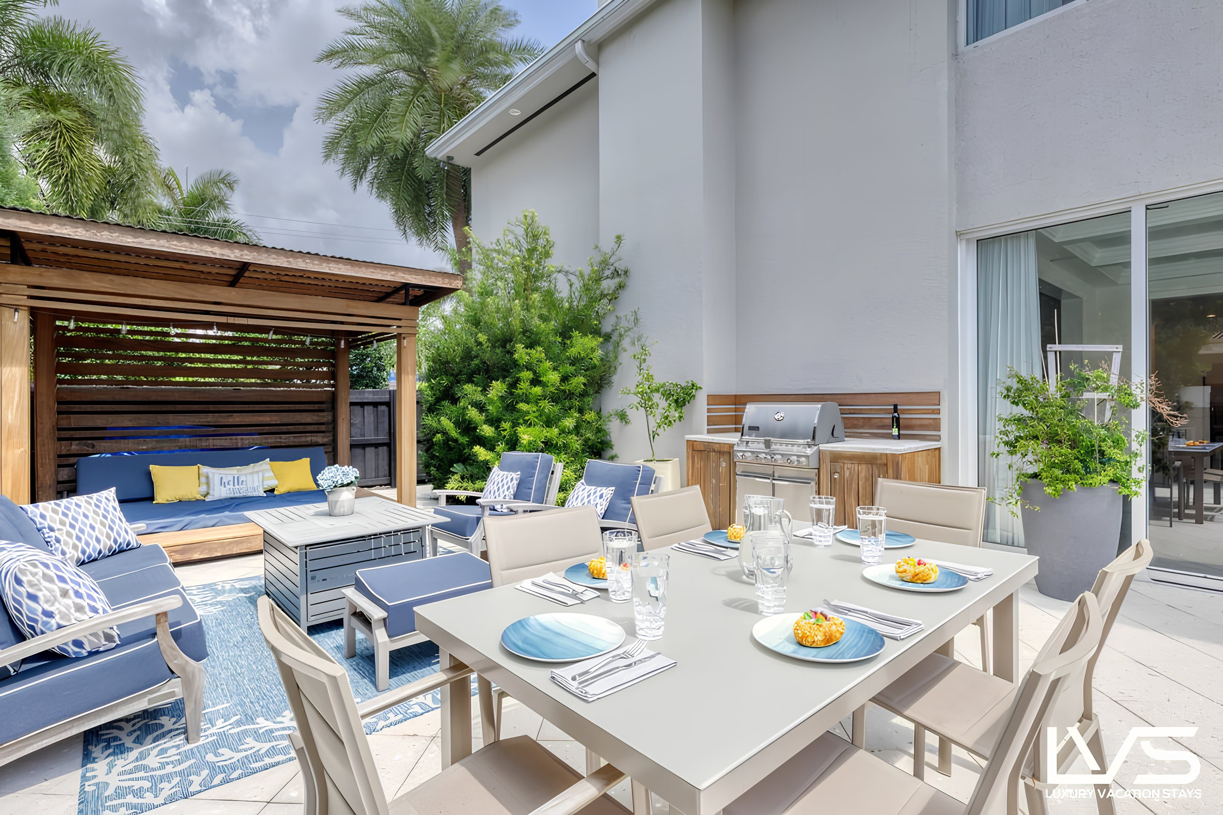 Welcome to a piece of tropical paradise tucked away in the tranquil Idlewyld locale. Within strolling distance, guests discover Fort Lauderdale Beach's inviting sands — a mere 10-minute jaunt! This resplendent retreat, built in 2018, is ideally situated a stone's throw from the bustling Las Olas area with charming shops, eclectic eateries, and vibrant nightlife. Accommodating 12 comfortably, the home features four well-furnished bedrooms — including two luxury suites, a culinary aficionado's dream kitchen complete with an island bar, and additional dining nooks. Whether choosing to unwind in the heated saltwater pool, hot tub, or enjoying fireside chats under the starry Floridian sky, this oasis caters to all desires. The guest experience is magnified with a team boasting 500+ shining reviews on different platforms.