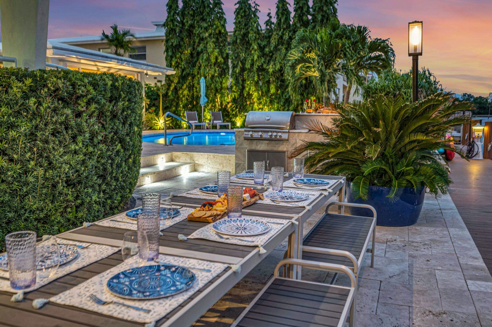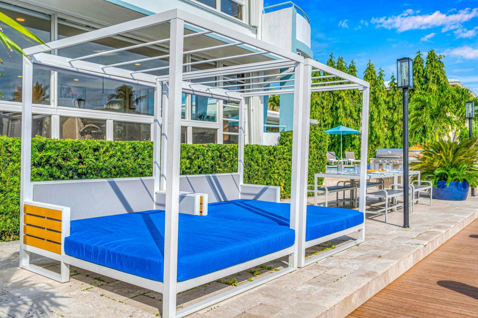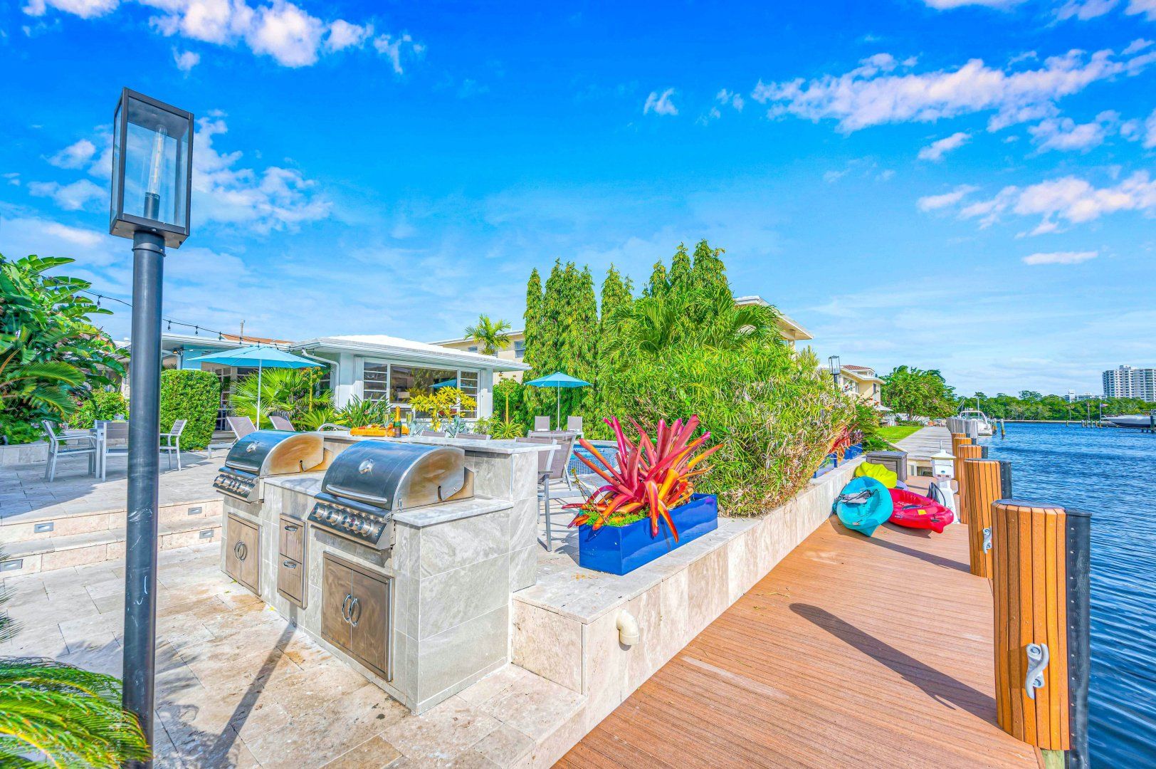 On one of Fort Lauderdale’s serene waterways, guests here have access to a shared dock to explore by paddleboard, boat or kayak. There’s also a shared swimming pool and barbecue area within the complex. The home is made up of four self-contained suites, each with its own kitchen and living room. The main unit has a glorious mid-century-style living room and gourmet kitchen, plus a dedicated office for those working remotely. A private terrace provides a spot for al fresco feasts, particularly atmospheric at sunset when the sky streaks mauve. It's a short drive to Fort Lauderdale's beaches and beach chairs, a cooler and a beach cart are provided.