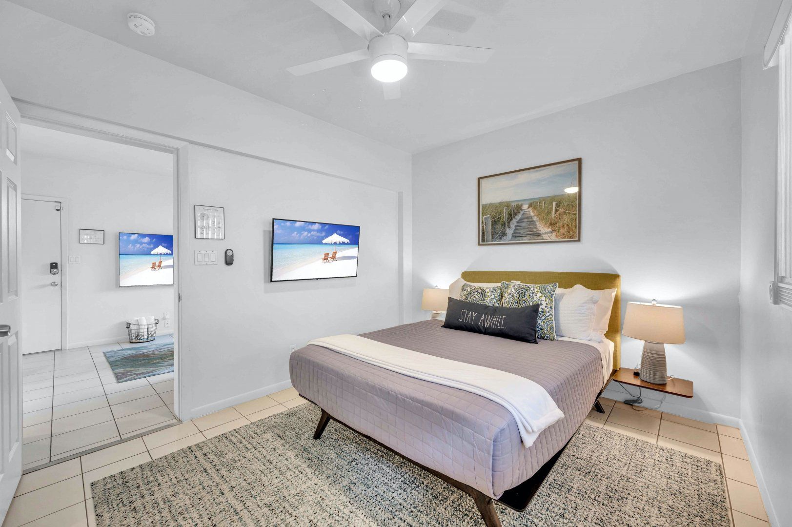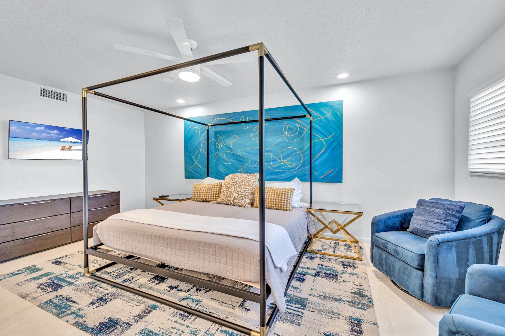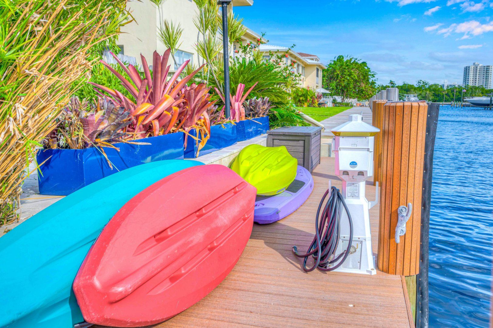 On one of Fort Lauderdale’s serene waterways, guests here have access to a shared dock to explore by paddleboard, boat or kayak. There’s also a shared swimming pool and barbecue area within the complex. The home is made up of four self-contained suites, each with its own kitchen and living room. The main unit has a glorious mid-century-style living room and gourmet kitchen, plus a dedicated office for those working remotely. A private terrace provides a spot for al fresco feasts, particularly atmospheric at sunset when the sky streaks mauve. It's a short drive to Fort Lauderdale's beaches and beach chairs, a cooler and a beach cart are provided.