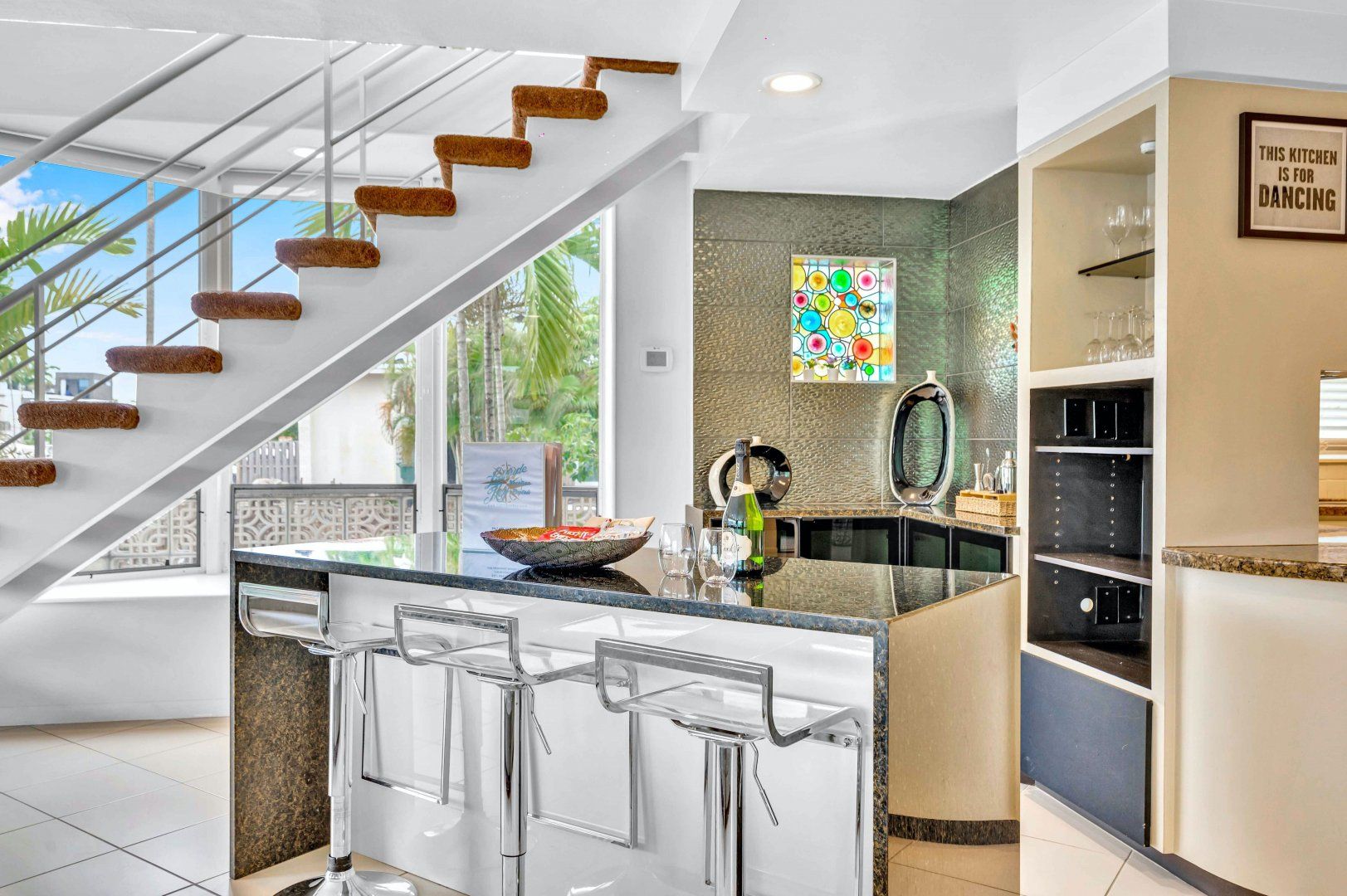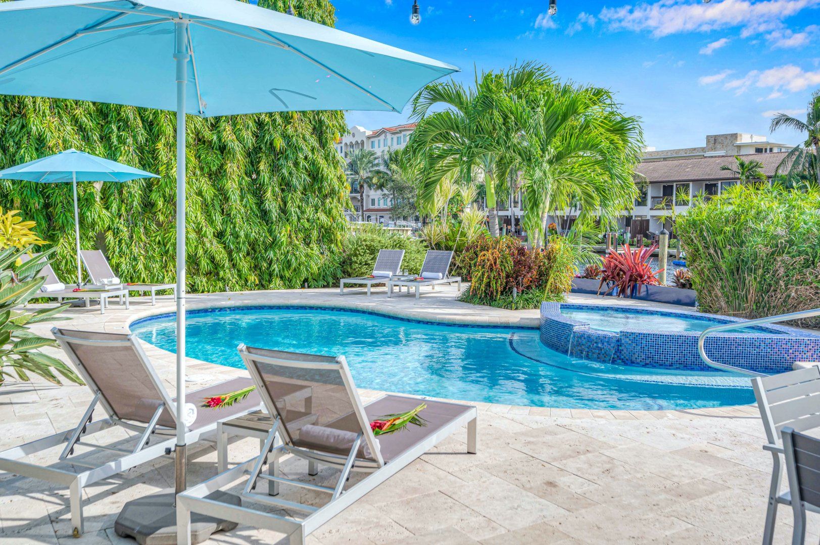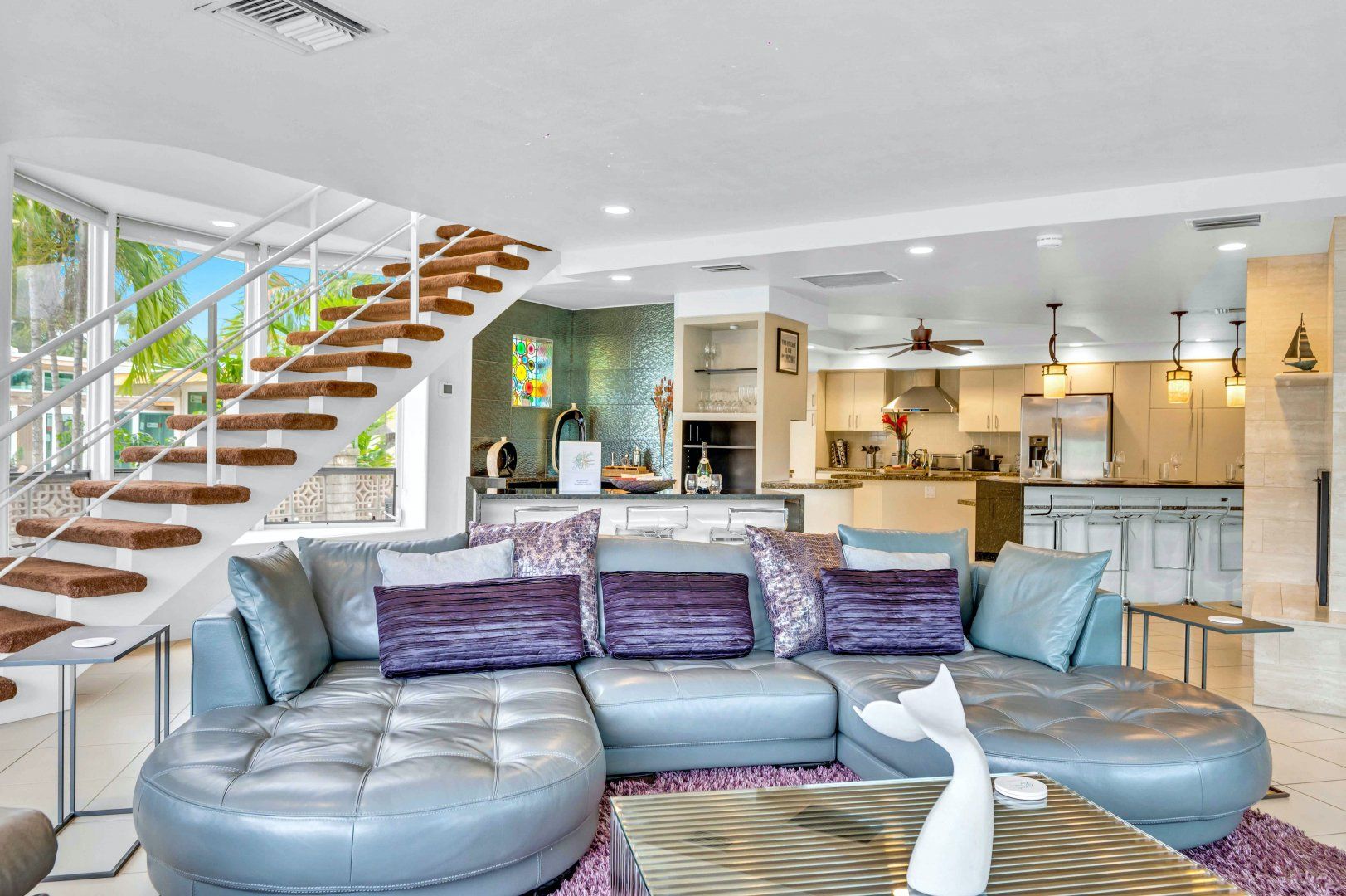 This duplex apartment is spread over two floors and sits within a holiday complex on the waterways of Fort Lauderdale. Guests here have access to a shared swimming pool and barbecue area. Explore the serene canals and riverways by kayak (free to use) from the complex’s dock or perhaps rent a bike to take in the town on two wheels. The beach is close by too and you’re host provides equipment for days on the sand. At the apartment, you’ve got a private terrace for sunset meals outside and a light-filled living room like a 1960s entertainer’s pad inside. The gourmet kitchen should keep culinary enthusiasts happy and there’s a dedicated office off the main bedroom for those working remotely.
