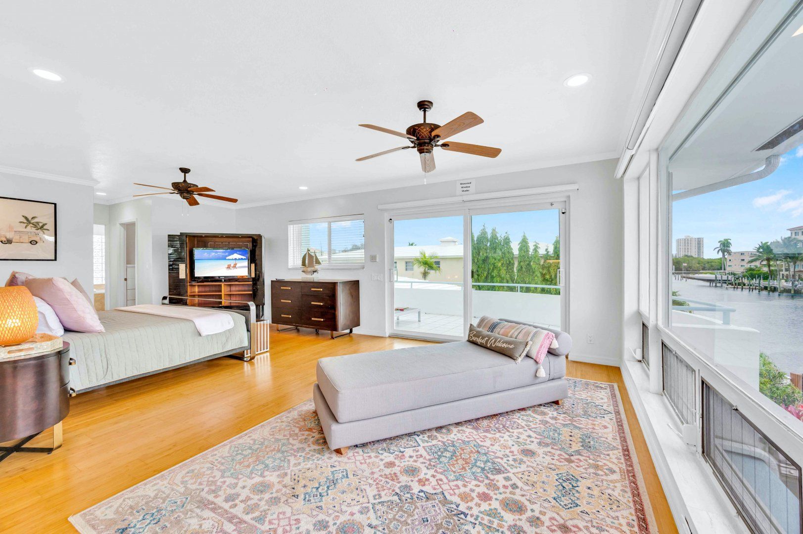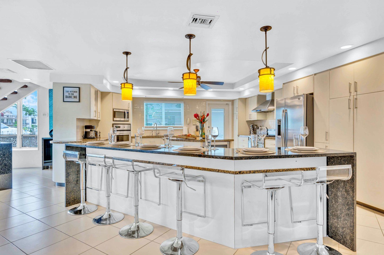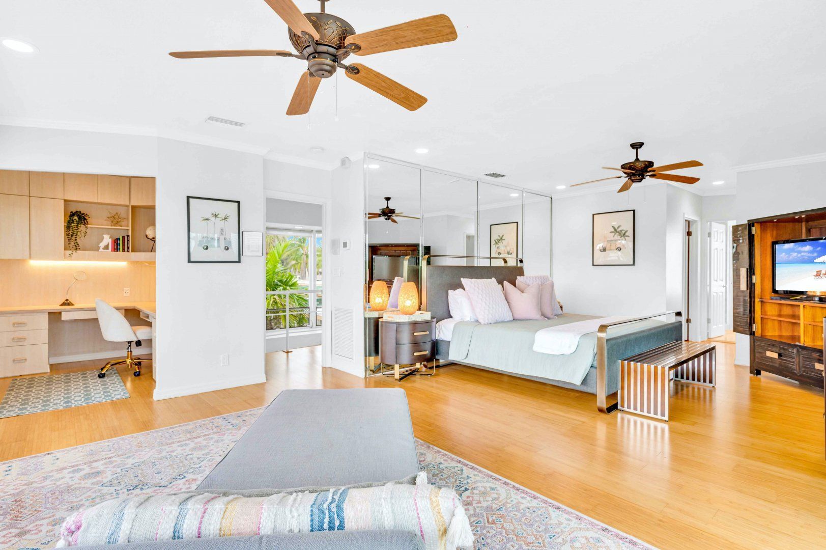 This duplex apartment is spread over two floors and sits within a holiday complex on the waterways of Fort Lauderdale. Guests here have access to a shared swimming pool and barbecue area. Explore the serene canals and riverways by kayak (free to use) from the complex’s dock or perhaps rent a bike to take in the town on two wheels. The beach is close by too and you’re host provides equipment for days on the sand. At the apartment, you’ve got a private terrace for sunset meals outside and a light-filled living room like a 1960s entertainer’s pad inside. The gourmet kitchen should keep culinary enthusiasts happy and there’s a dedicated office off the main bedroom for those working remotely.